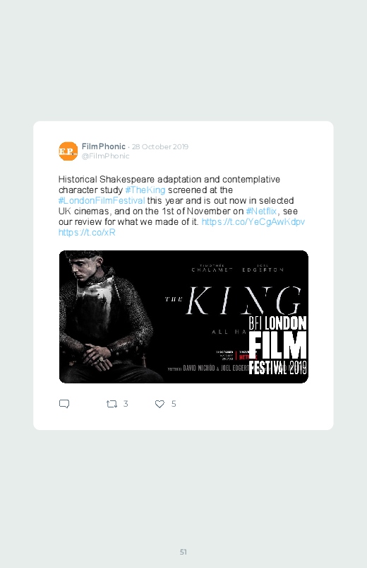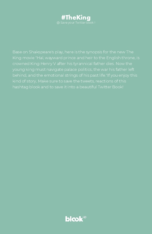 Base on Shakspeare's play, here is the synopsis for the new The King movie "Hal, wayward prince and heir to the English throne, is crowned King Henry V after his tyrannical father dies. Now the young king must navigate palace politics, the war his father left behind, and the emotional strings of his past life."If you enjoy this kind of story, Make sure to save the tweets, reactions of this hashtag blook and to save it into a beautiful Twitter Book!