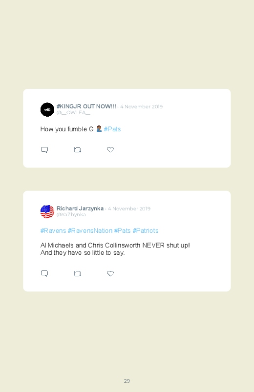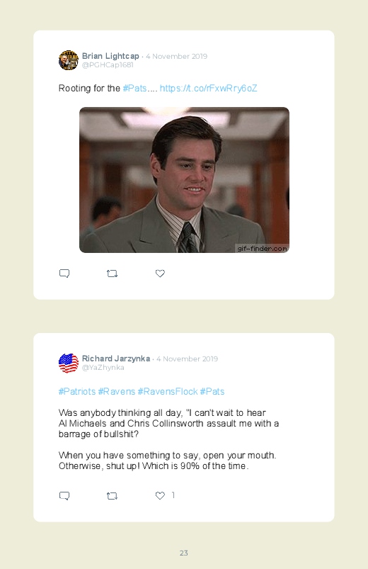 It's football season! The Patriots have played against the ravens who managed to win! Save the reactions of this game into a beautiful printed Twitter Book !