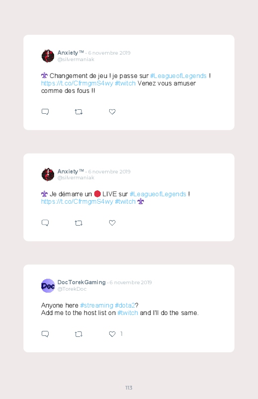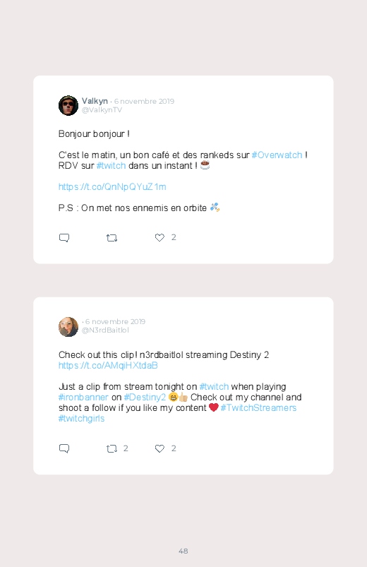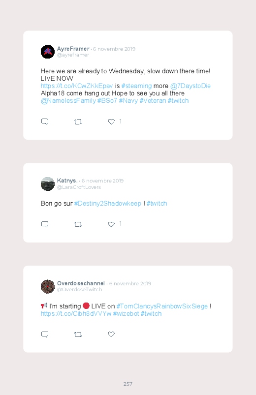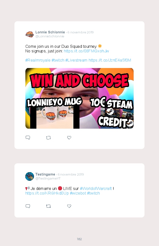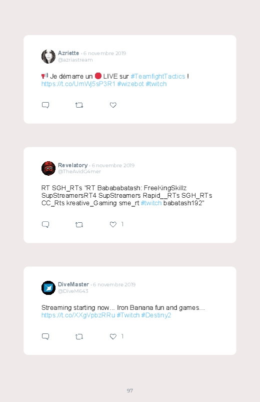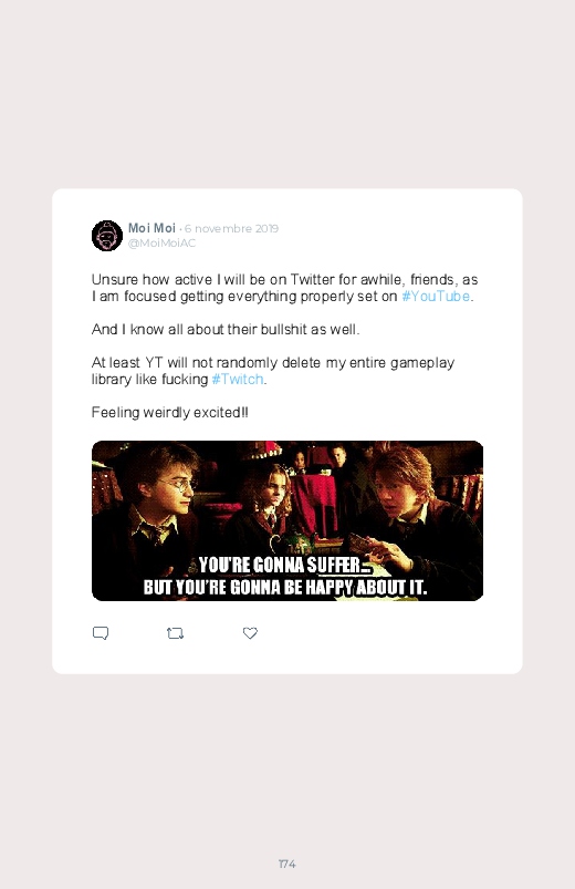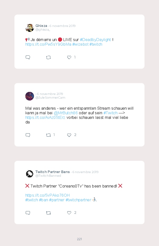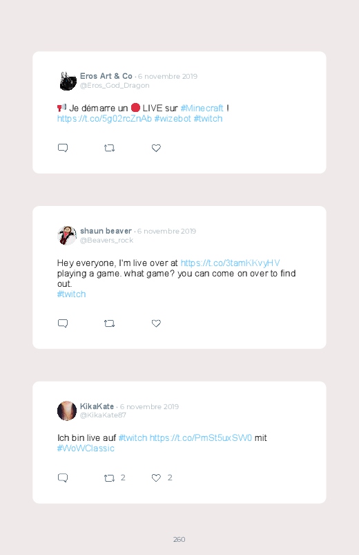 Twitch a gaming plateform hosts an important group of gaming in the e-sports business! Some leave and some stay! Discover all that is happening around it by printing this book of reaction tweets about the website!