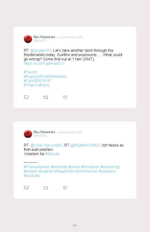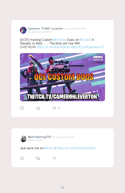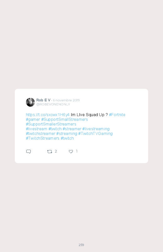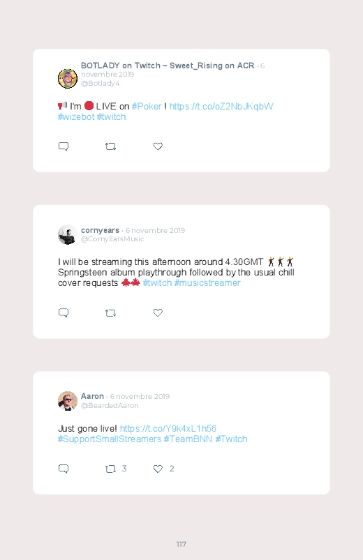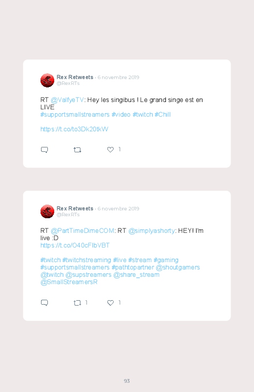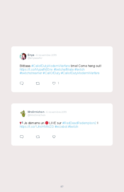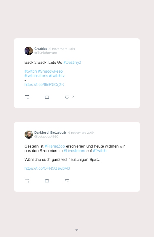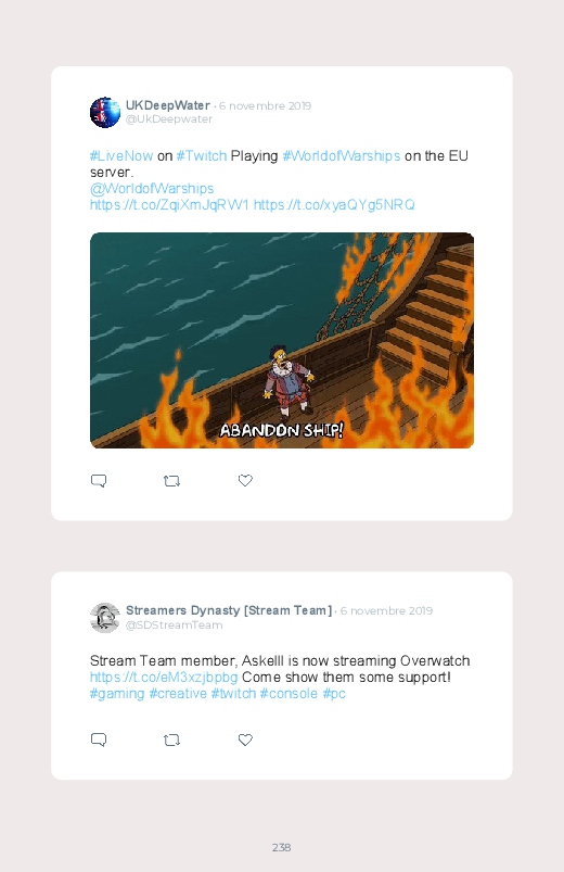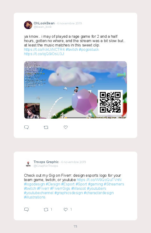 Twitch a gaming plateform hosts an important group of gaming in the e-sports business! Some leave and some stay! Discover all that is happening around it by printing this book of reaction tweets about the website!