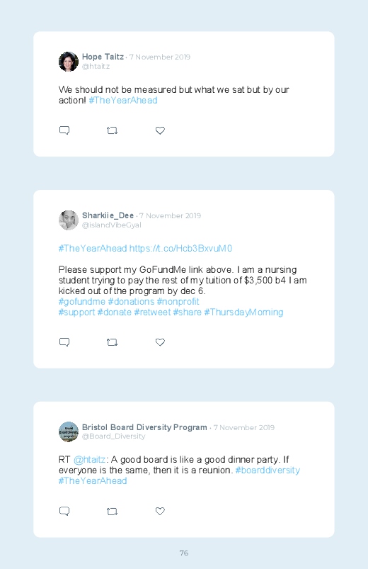 The Year Ahead Summit, an invitation-only event creating a 360-degree view of the most urgent topics facing every executive in the coming year. Save and print the tweets around the event in a book!