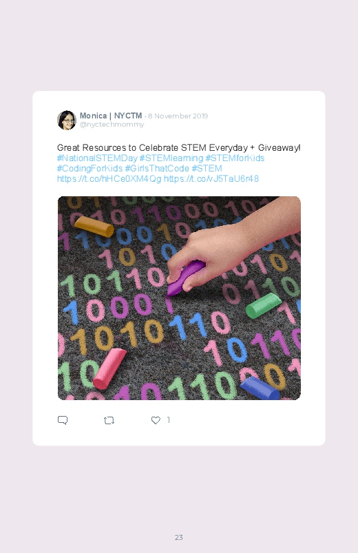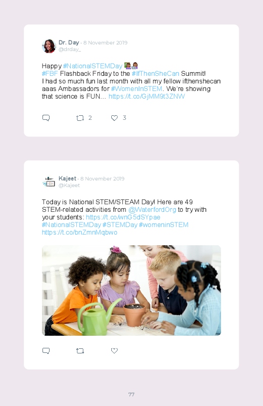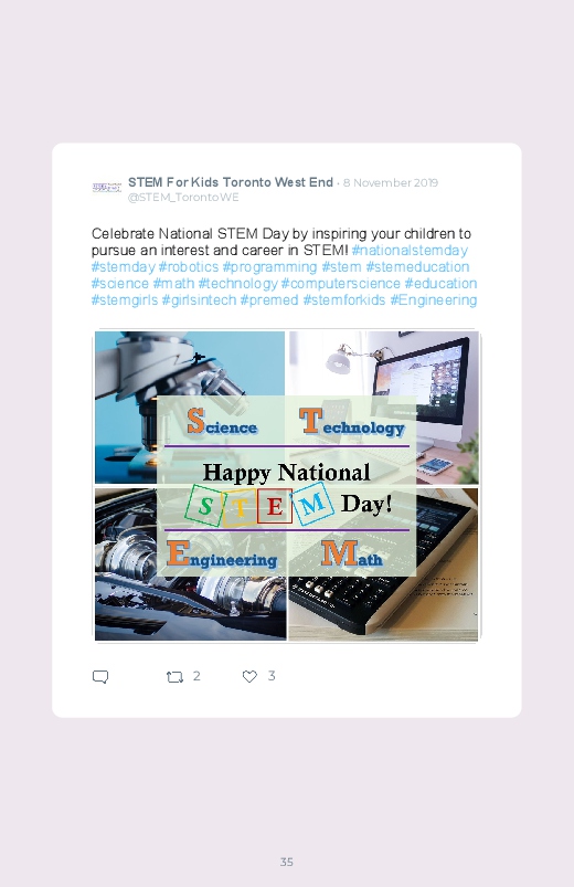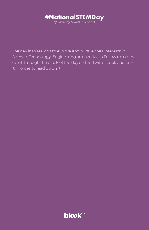 The day inspires kids to explore and pursue their interests in Science, Technology, Engineering, Art and Math Follow up on the event through the blook of the day on the Twitter book and print it in order to read up on it!