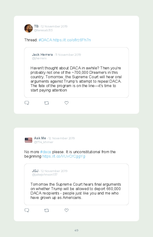 Save the tweets of the hashtag #DACA to allow you to read up on the different reactions about the fate of hundreds of thousands of young undocumented immigrants who arrived in the US as children will be on the line Today at the supreme court.