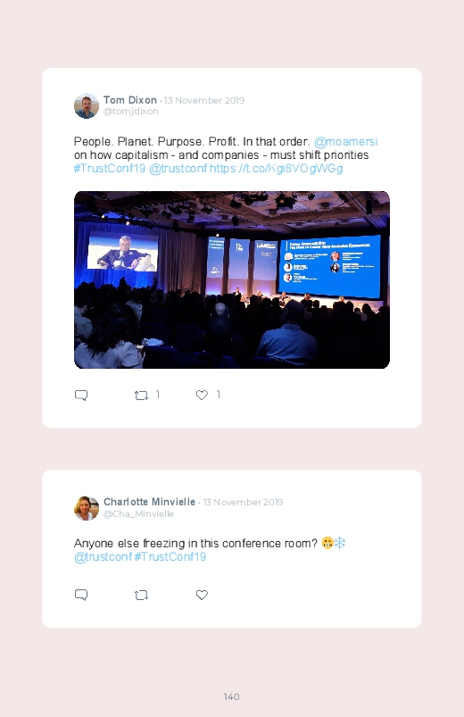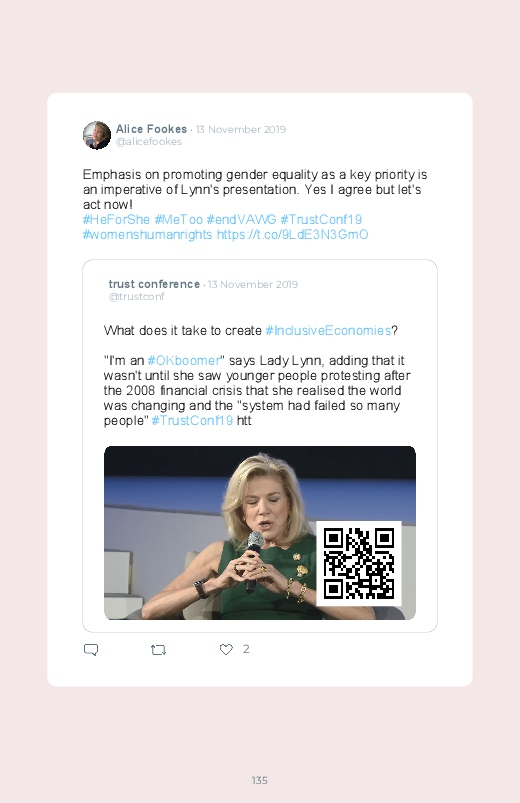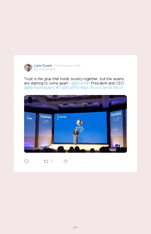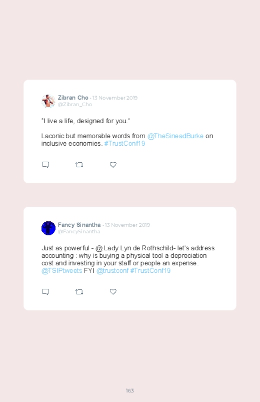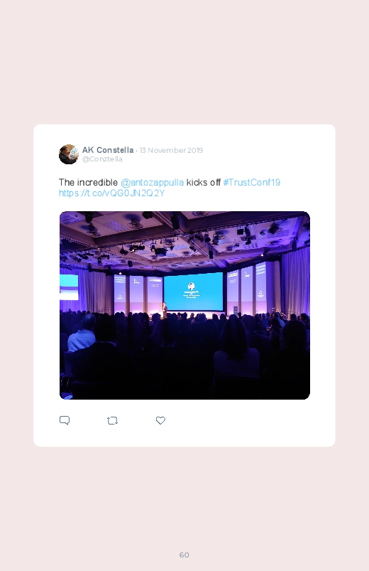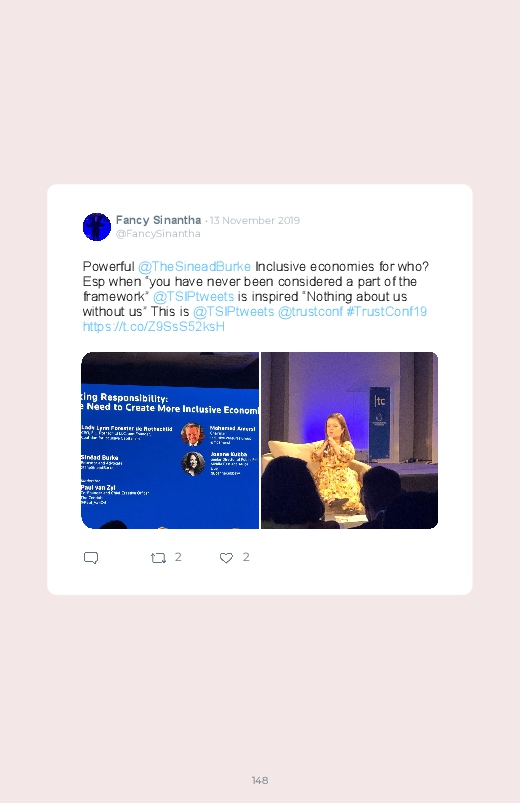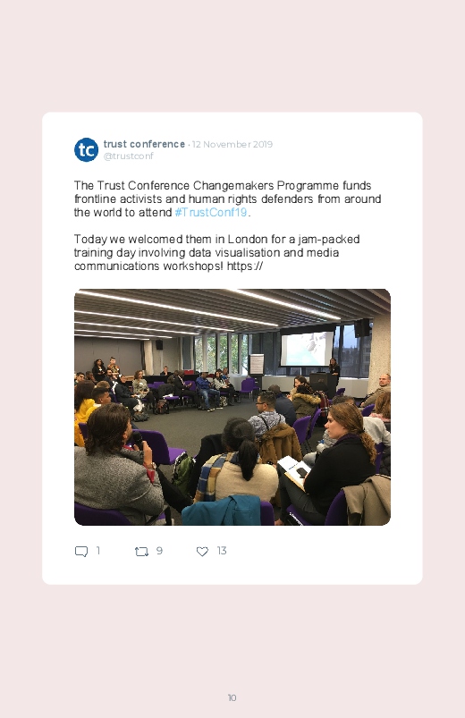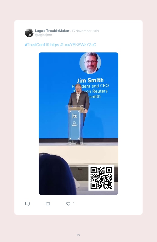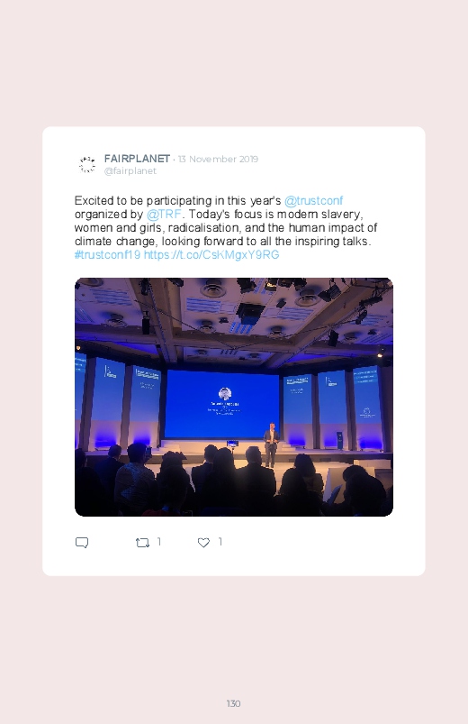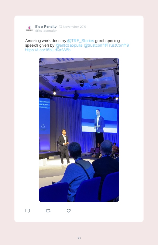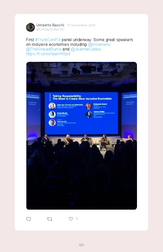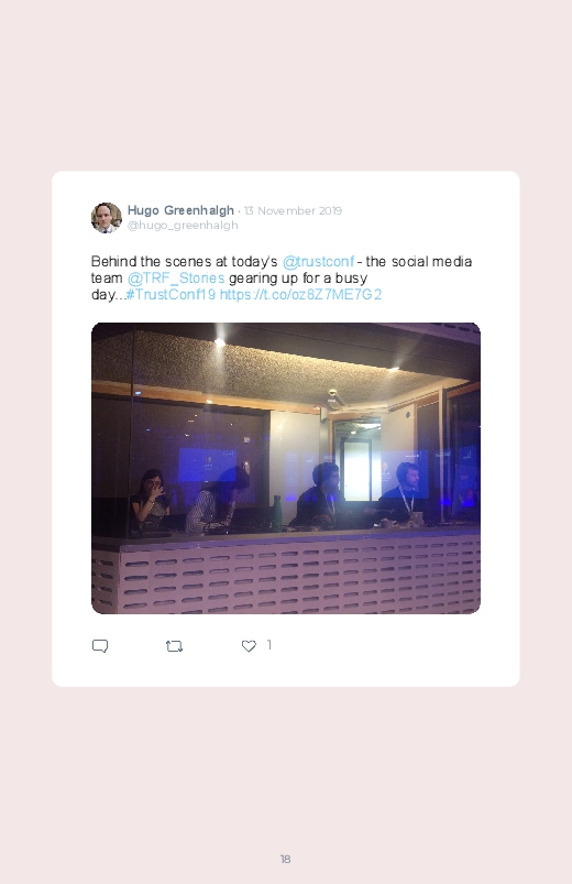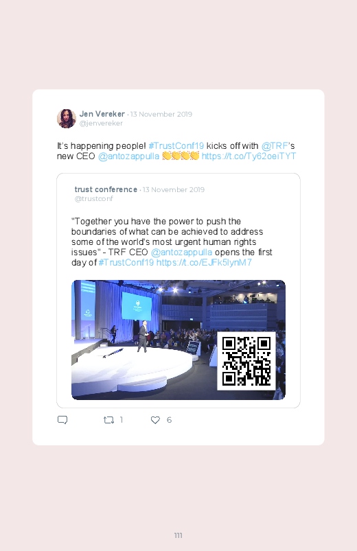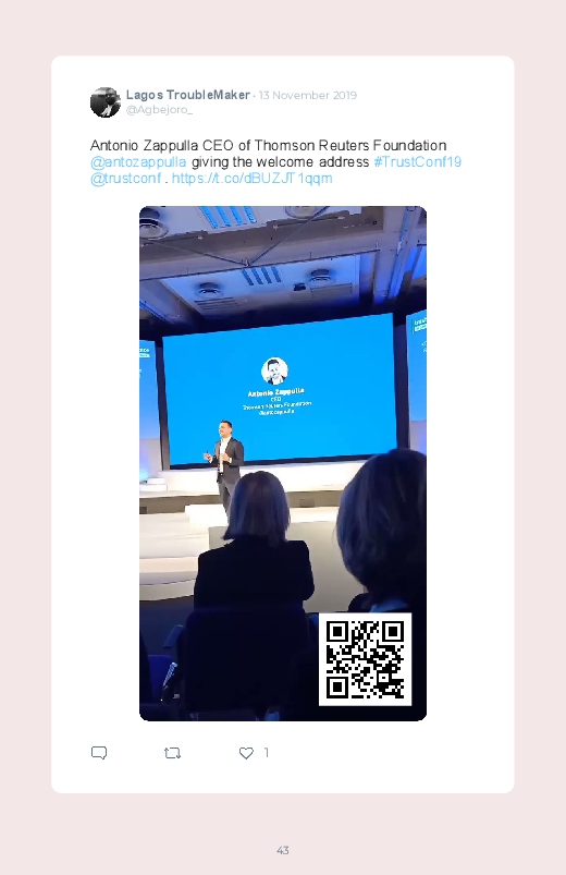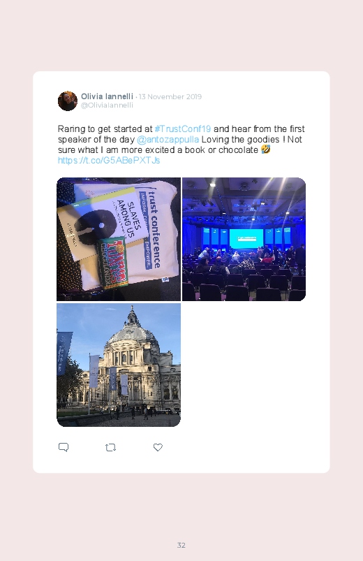 Save the tweets around the #Trust conf19 event in a Twitter book ! You also have the possibility to Print it afterward "Trust Conference is the Thomson Reuters Foundation’s flagship annual event and a world-leading human rights forum. Held in the heart of London each year, the conference brings together some 600 delegates from diverse sectors representing more than 60 countries."