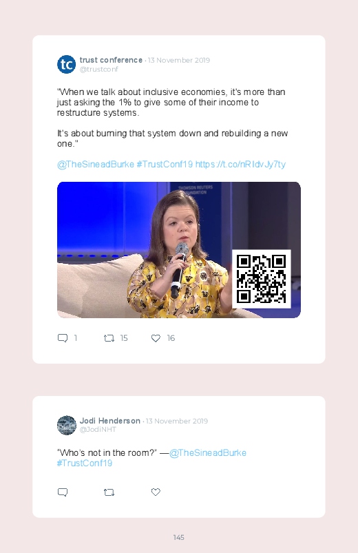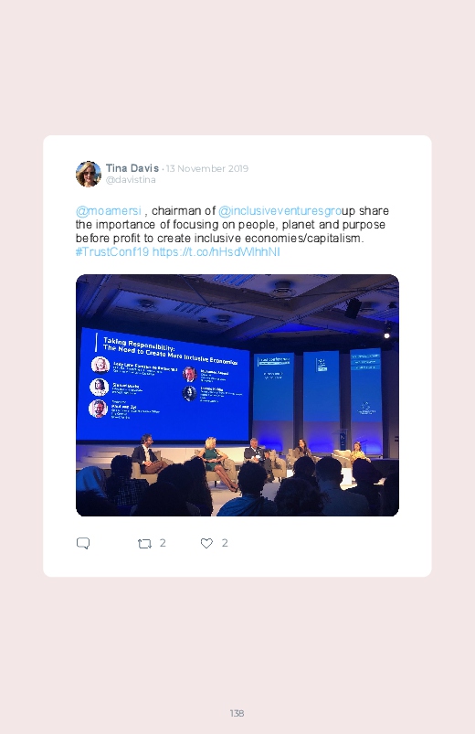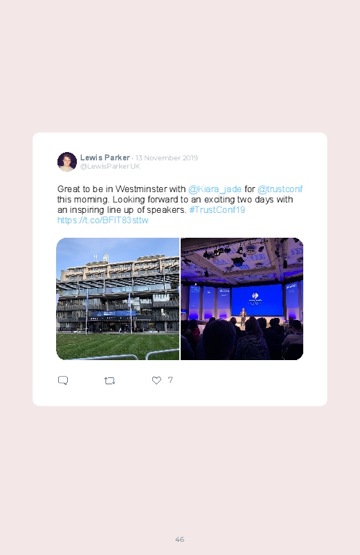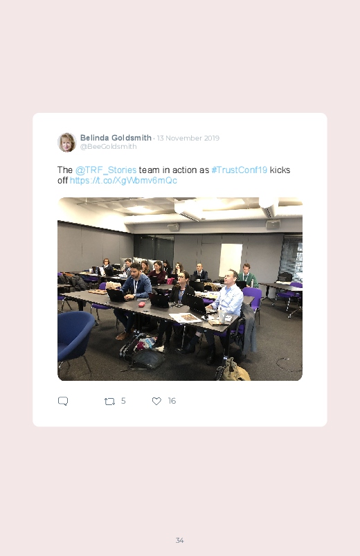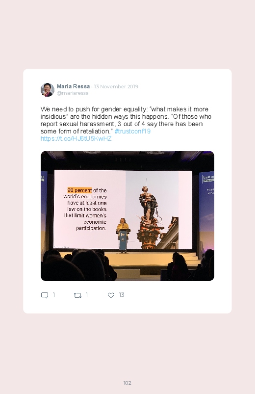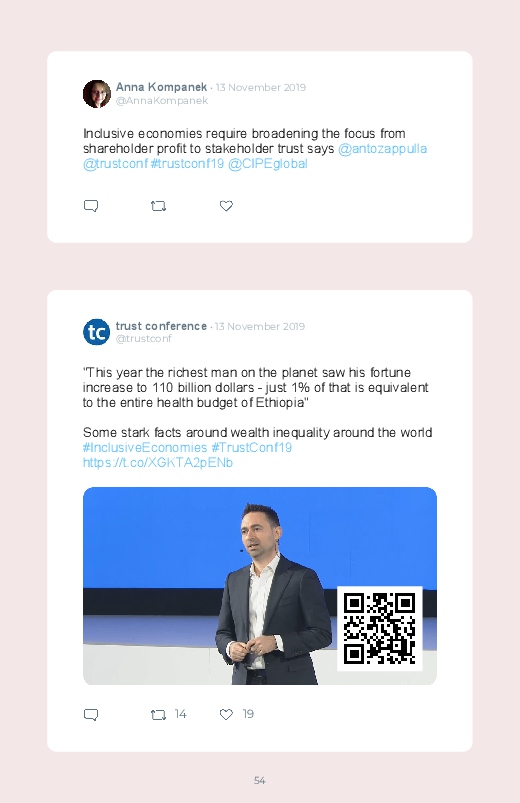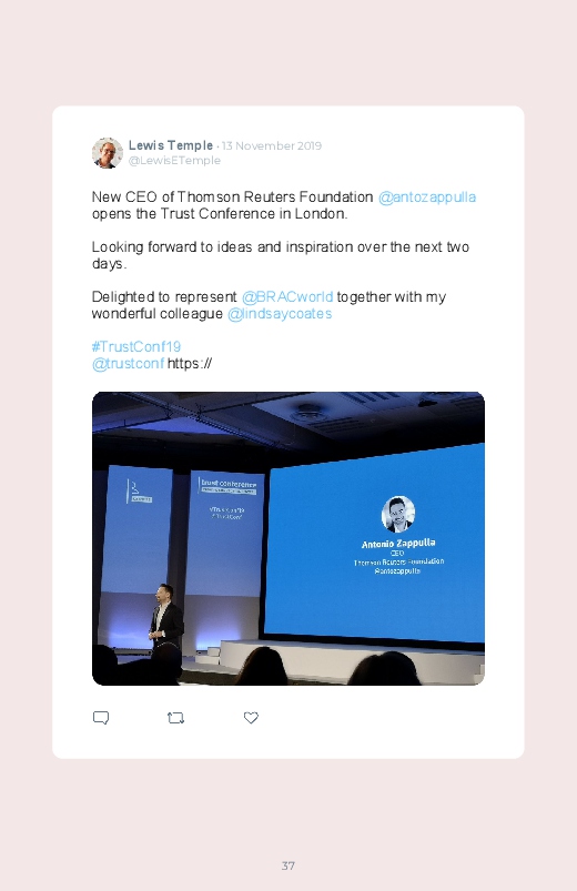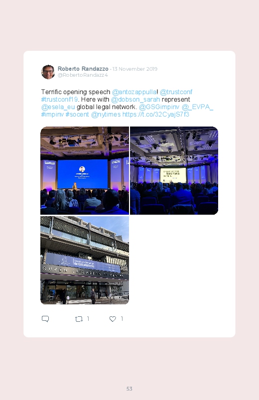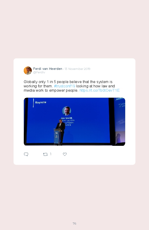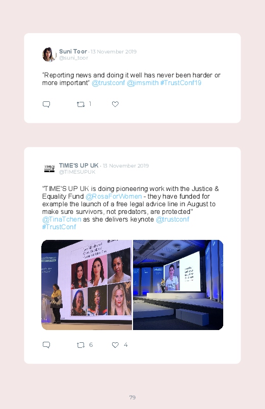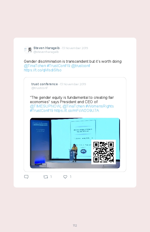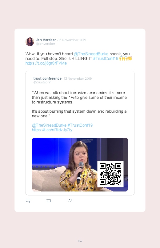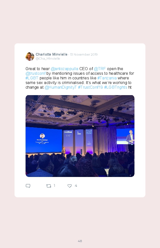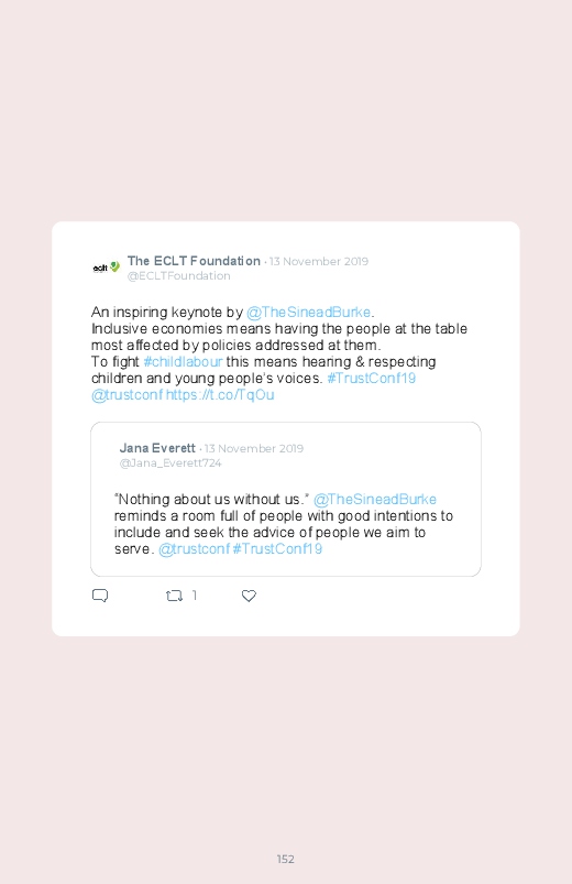 Save the tweets around the #Trust conf19 event in a Twitter book ! You also have the possibility to Print it afterward "Trust Conference is the Thomson Reuters Foundation’s flagship annual event and a world-leading human rights forum. Held in the heart of London each year, the conference brings together some 600 delegates from diverse sectors representing more than 60 countries."
