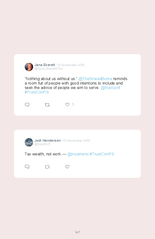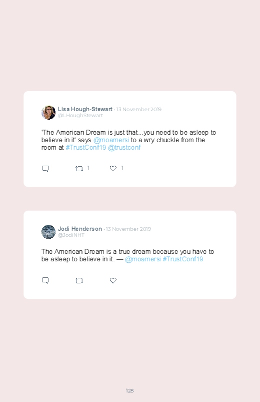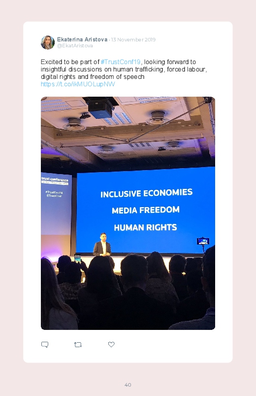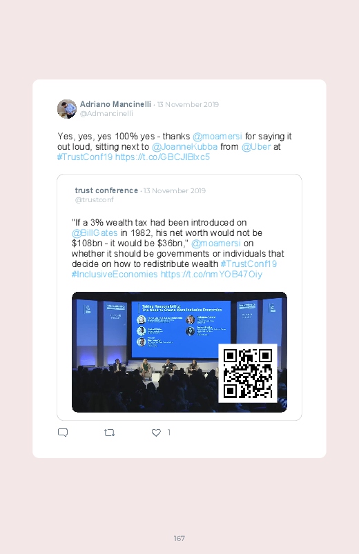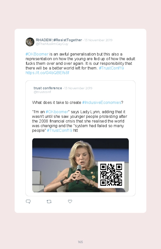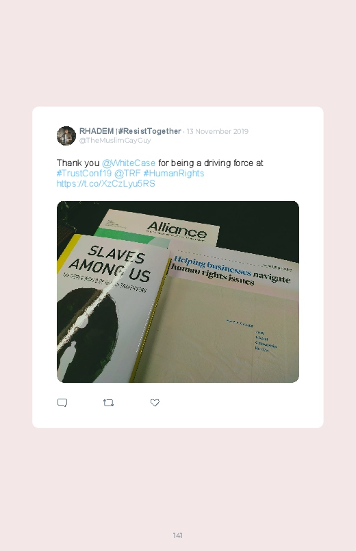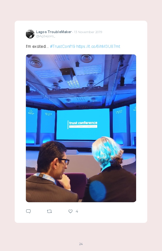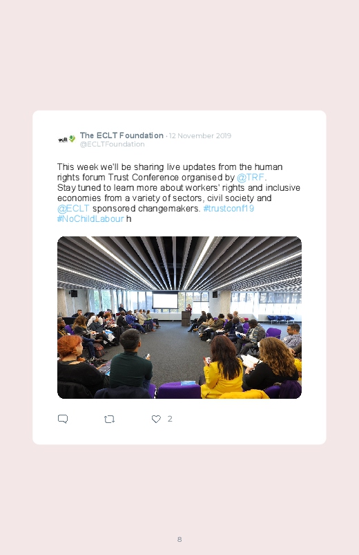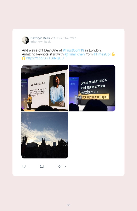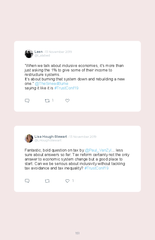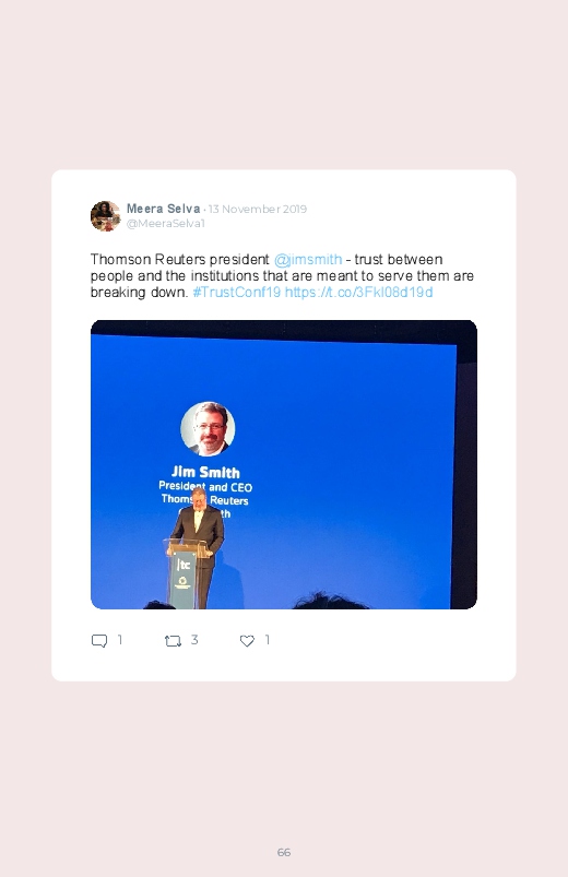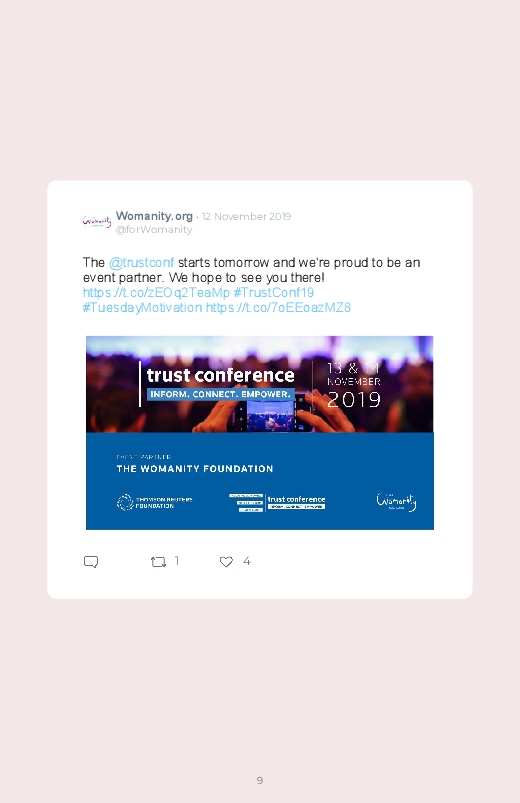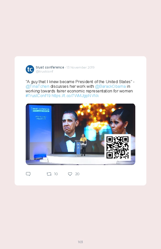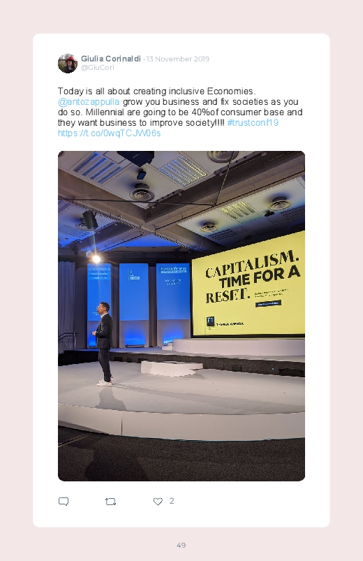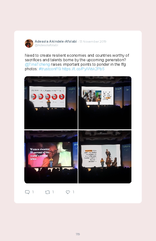 Save the tweets around the #Trust conf19 event in a Twitter book ! You also have the possibility to Print it afterward "Trust Conference is the Thomson Reuters Foundation’s flagship annual event and a world-leading human rights forum. Held in the heart of London each year, the conference brings together some 600 delegates from diverse sectors representing more than 60 countries."
