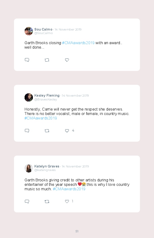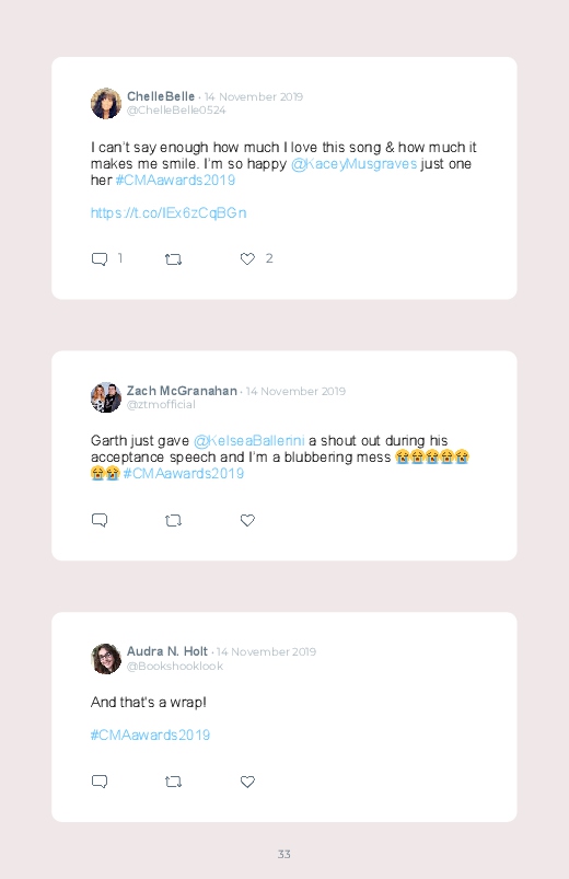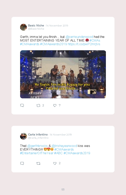 The 53rd Annual Country Music Association Awards happened on the 13th of November. Discover the different tweets and reactions by saving and printing them in a Twitter book!