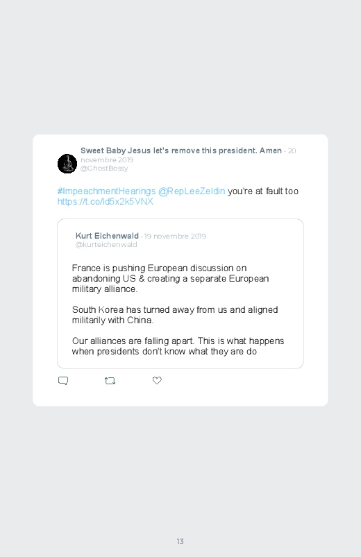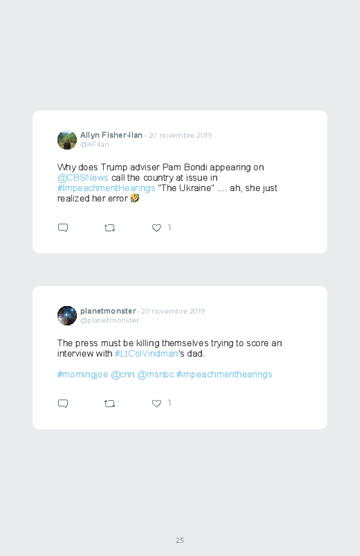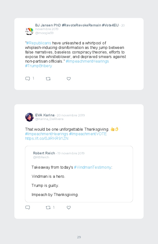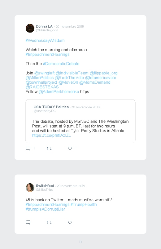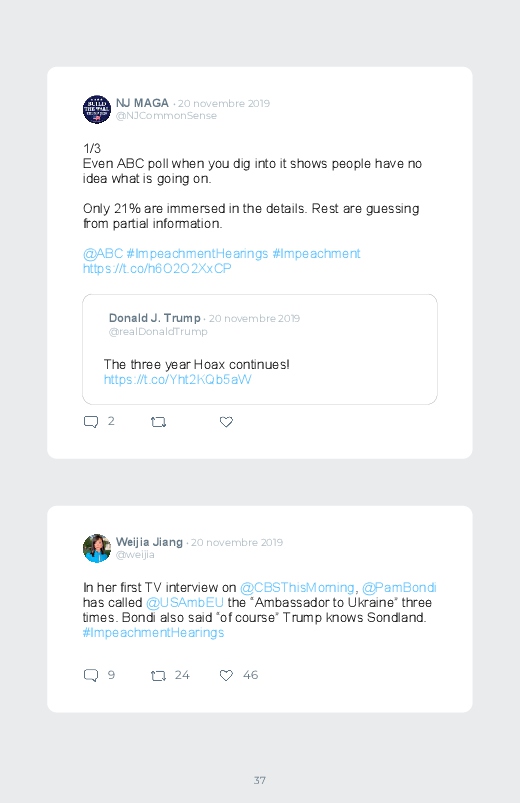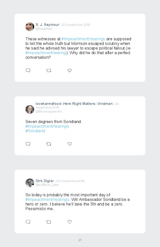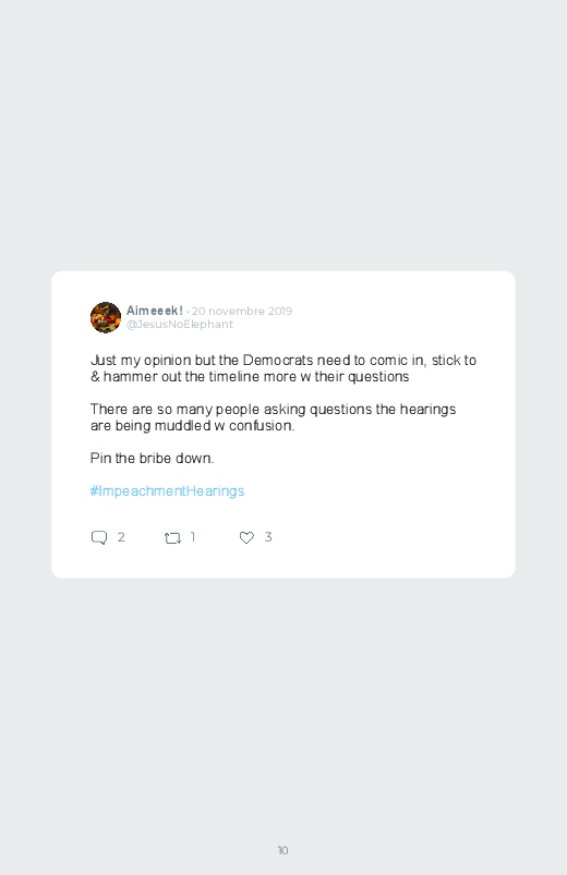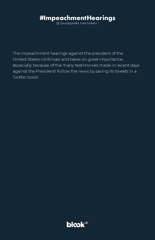 The impeachment hearings against the president of the United-States continues and takes on great importance, especially because of the many testimonies made in recent days against the President! Follow the news by saving its tweets in a Twitter book!