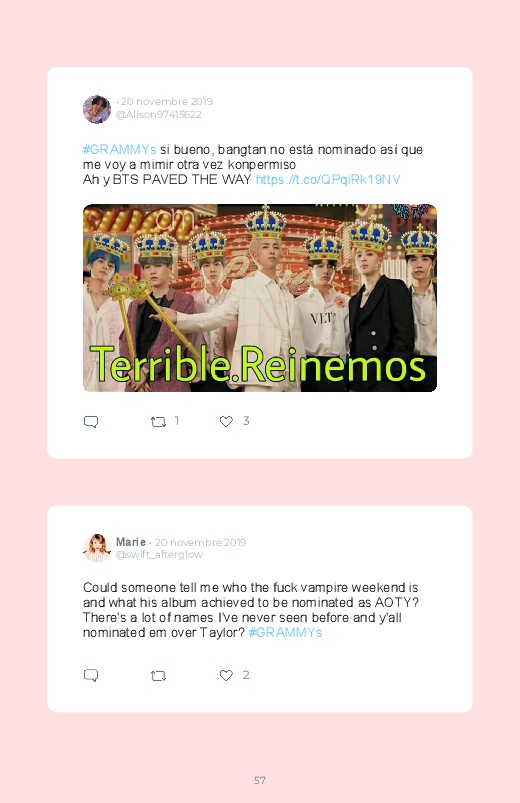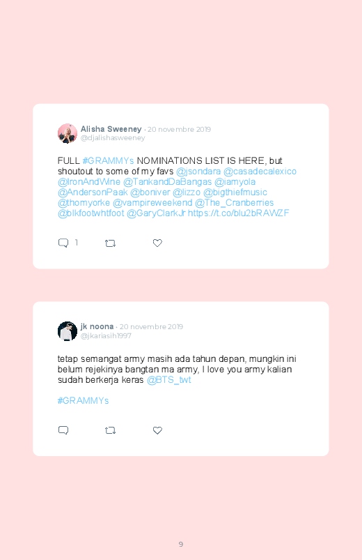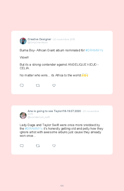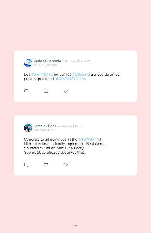 The nominations for the 2020 Grammy Awards have been published! Discover in this Twitter book the artists nominated for this prestigious ceremony and the reactions of their many fans!