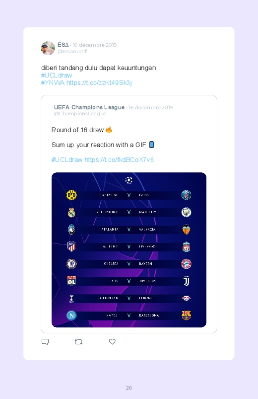 The 2019-2020 Champions League is the 65th edition of the European Cup of Champions Clubs. It contrasts the best European clubs that have distinguished themselves in their respective championships the previous season. Follow the progress of the event and the reactions in this Twitter book.