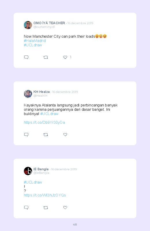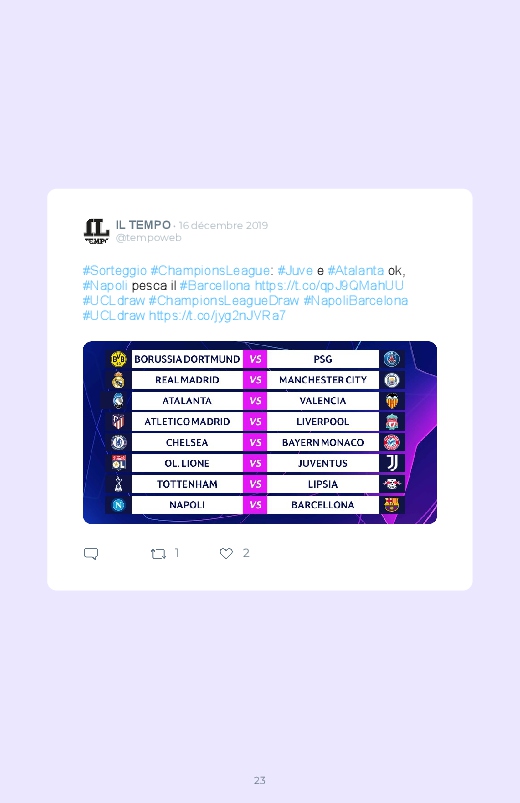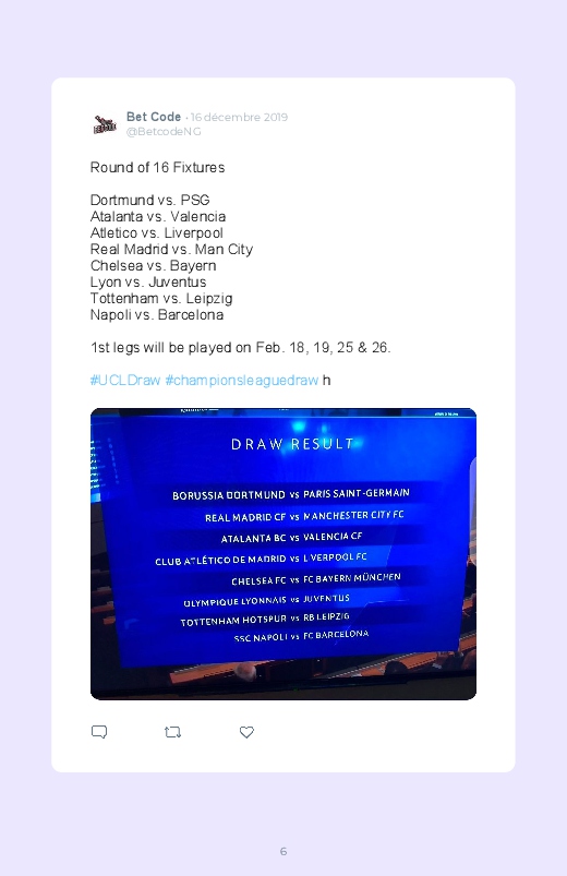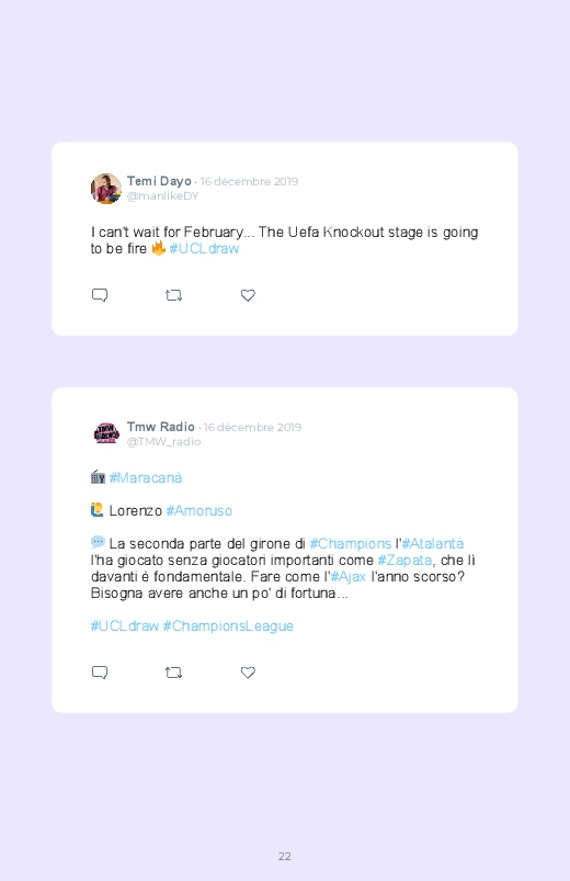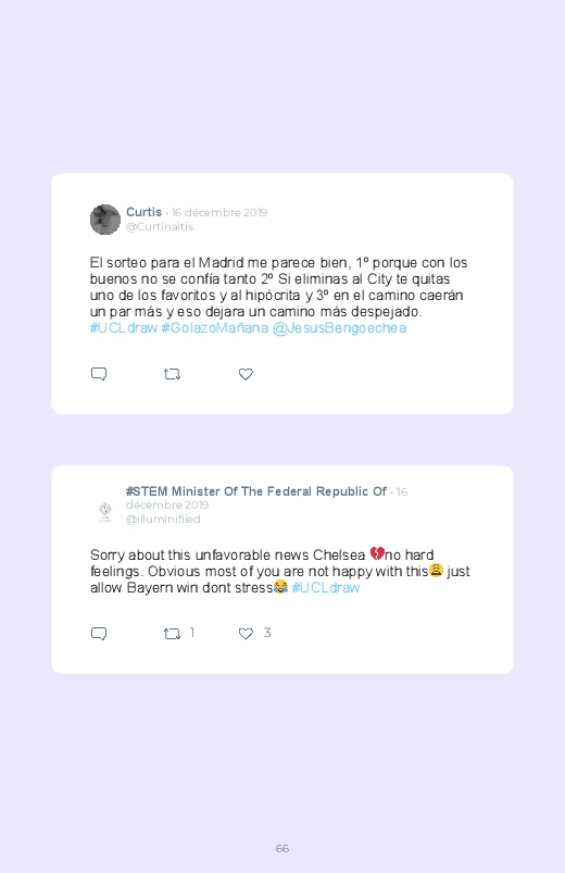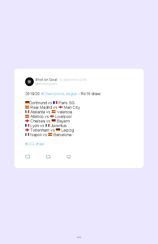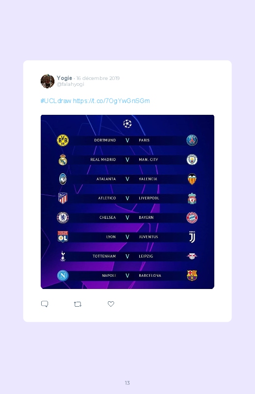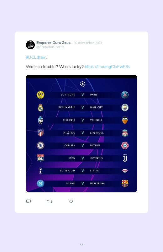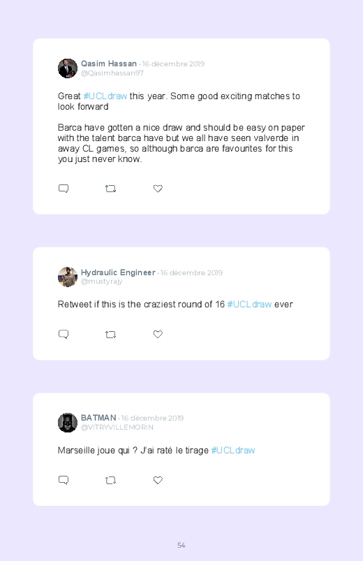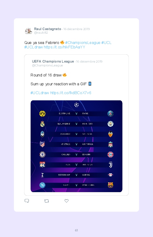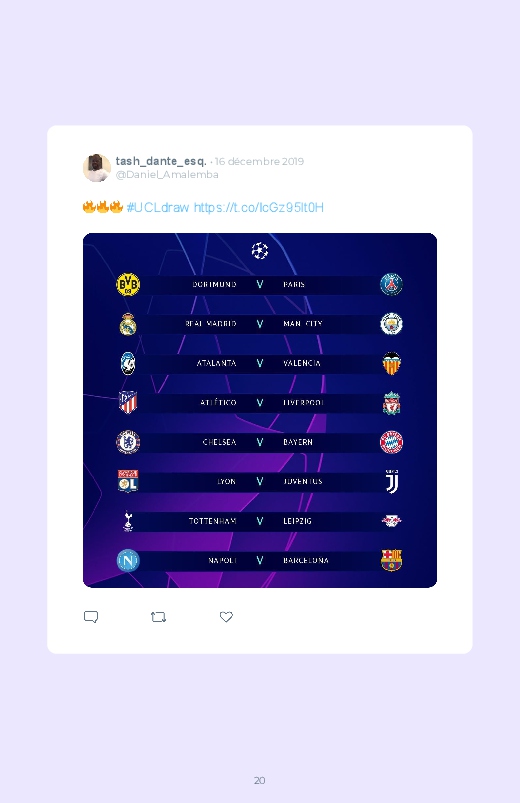 The 2019-2020 Champions League is the 65th edition of the European Cup of Champions Clubs. It contrasts the best European clubs that have distinguished themselves in their respective championships the previous season. Follow the progress of the event and the reactions in this Twitter book.