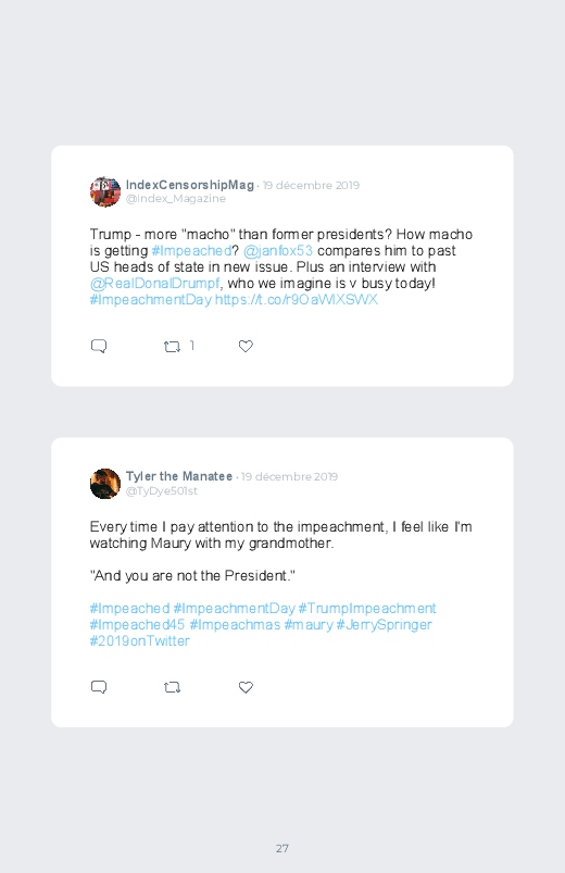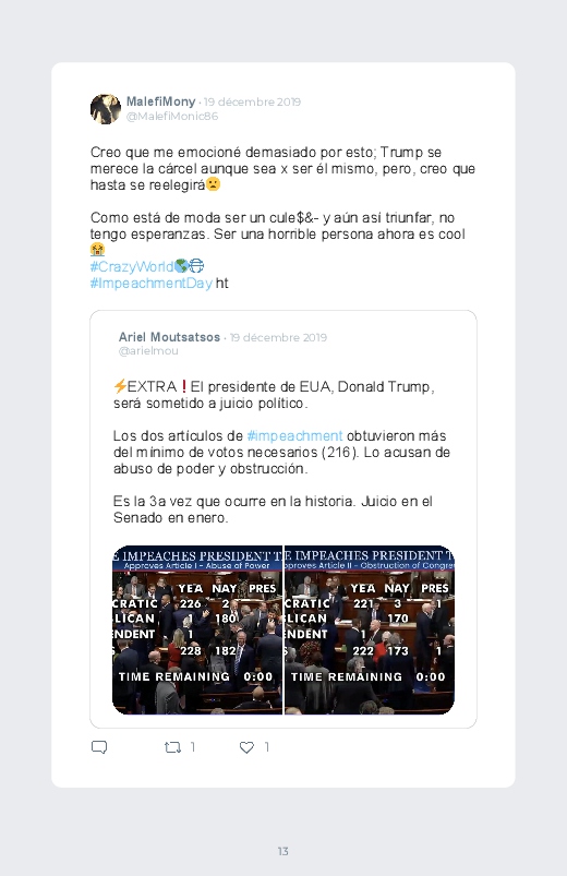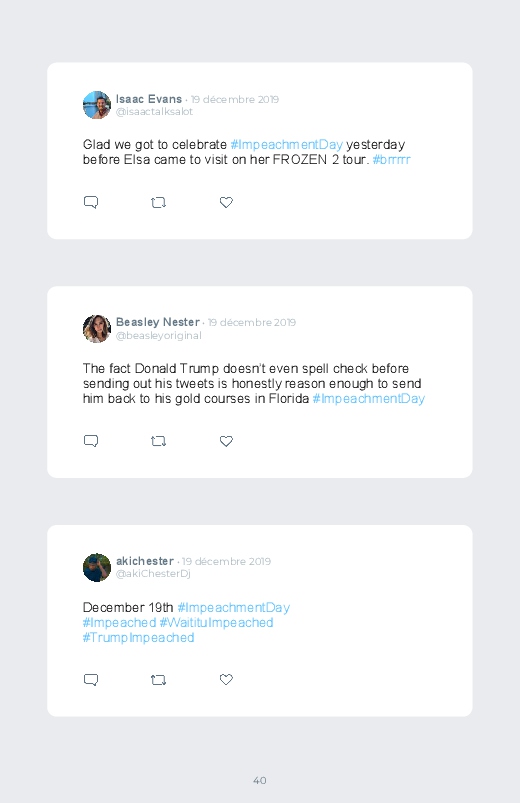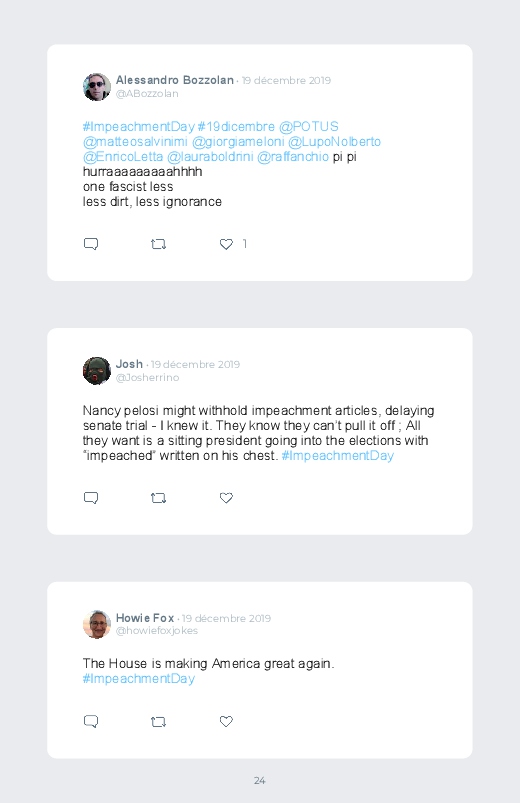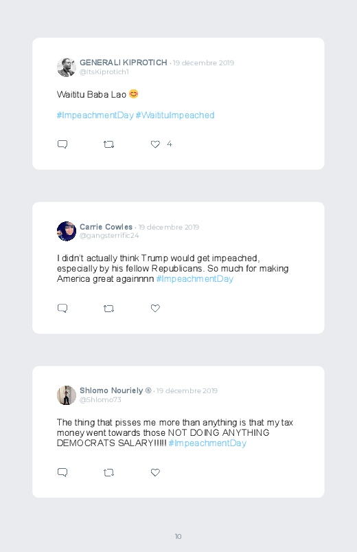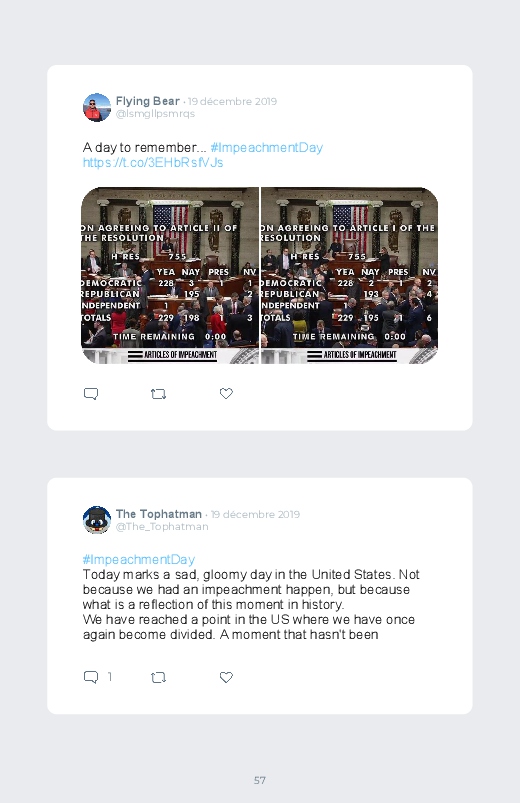 It is the Impeachment day of Donald Trump, the President of the United States. A decisive and historic day for the American political scene. Find the reactions in this Twitter book!