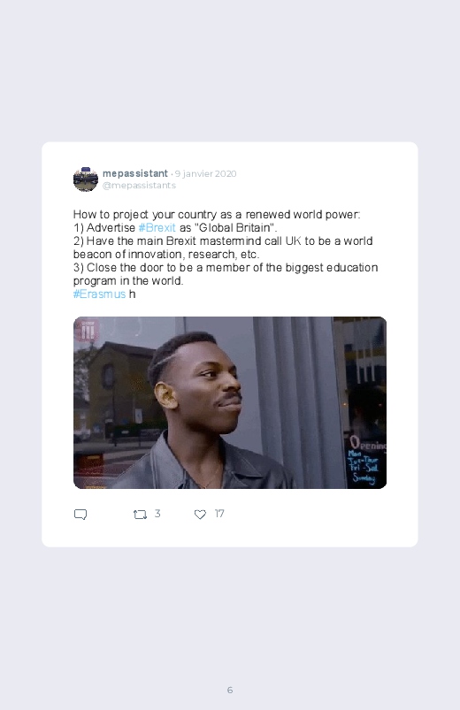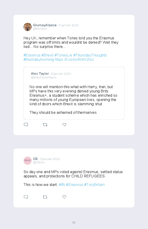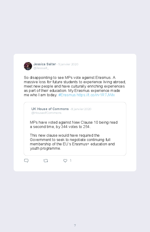 As the debate on the modalities of Brexit resumed this week in Westminster, the House’s twitter account relayed a vote in the evening on the famous exchange programme between European universities, which was set up in 1987. Follow the reactions of Internet users in this Twitter book!