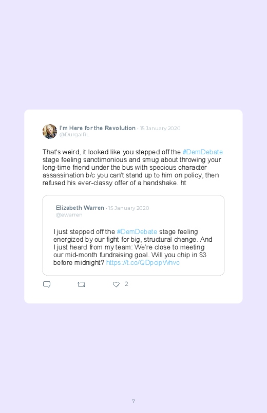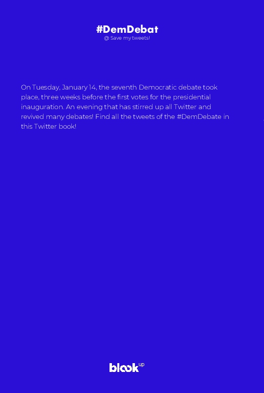 On Tuesday, January 14, the seventh Democratic debate took place, three weeks before the first votes for the presidential inauguration. An evening that has stirred up all Twitter and revived many debates! Find all the tweets of the #DemDebate in this Twitter book!