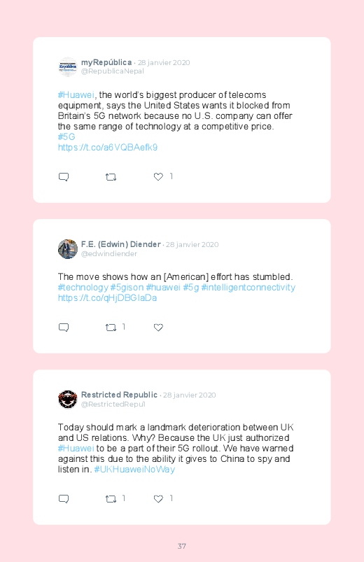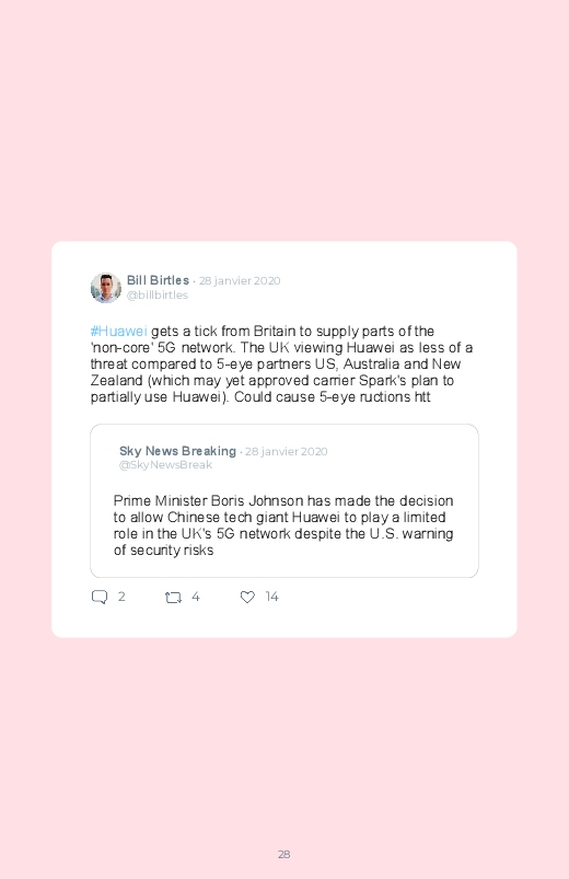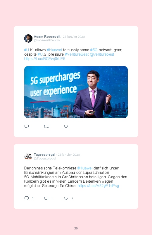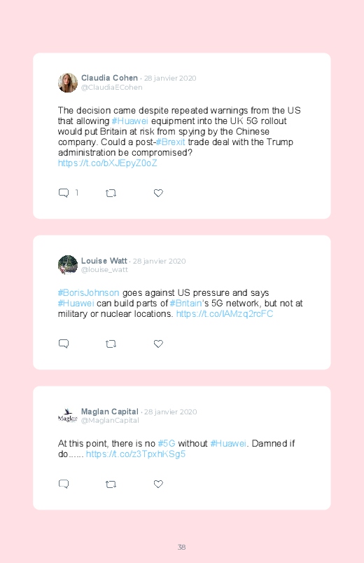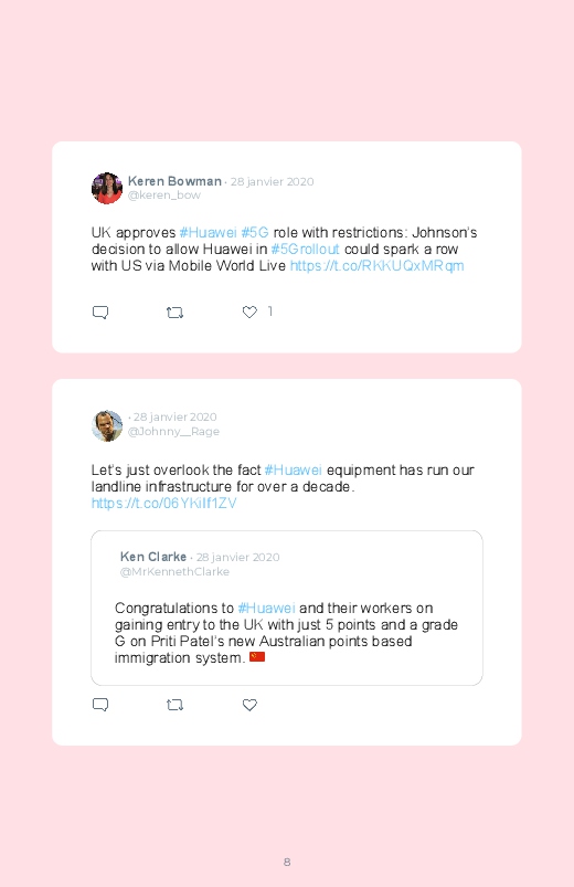 Britain will not ban Huawei’s 5G network equipment, a decision opposed to the American campaign against the Chinese technology giant! Follow the debate of Internet users in this Twitter book!