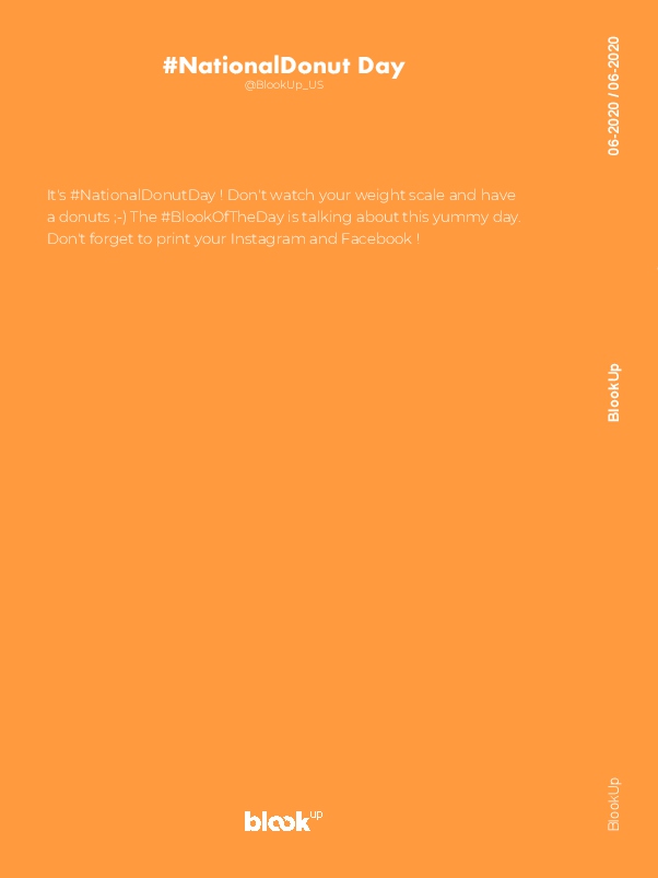 It's #NationalDonutDay ! Don't watch your weight scale and have a donuts ;-) The #BlookOfTheDay is talking about this yummy day. Don't forget to print your Instagram and Facebook !