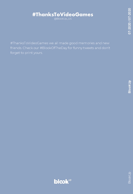 #ThanksToVideoGames we all made good memories and new friends. Check our #BlookOfTheDay for funny tweets and don’t forget to print yours.