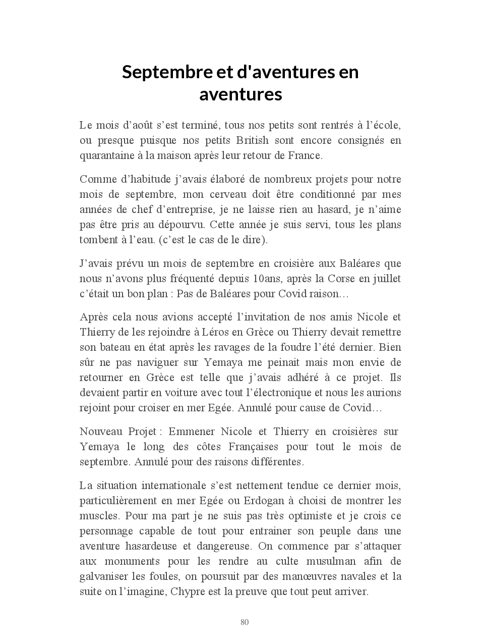 Malgré la crise sanitaire en cette année 2020, Yemaya repartira quand même en croisière vers la Corse.