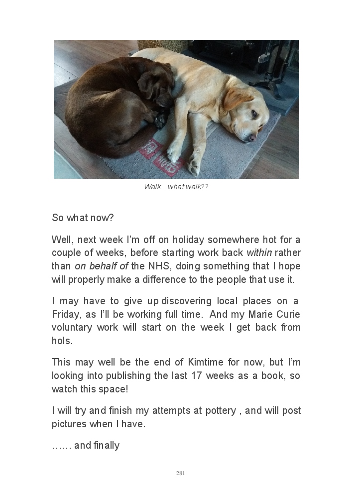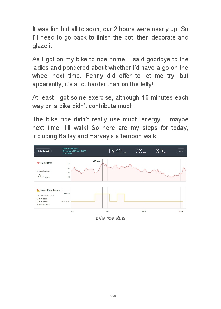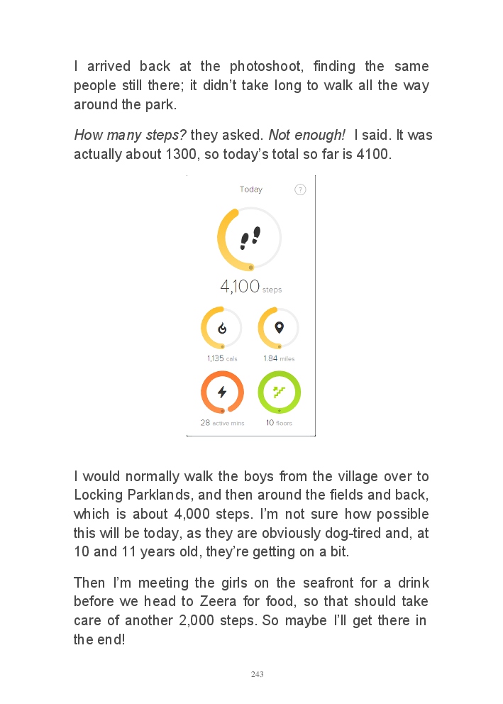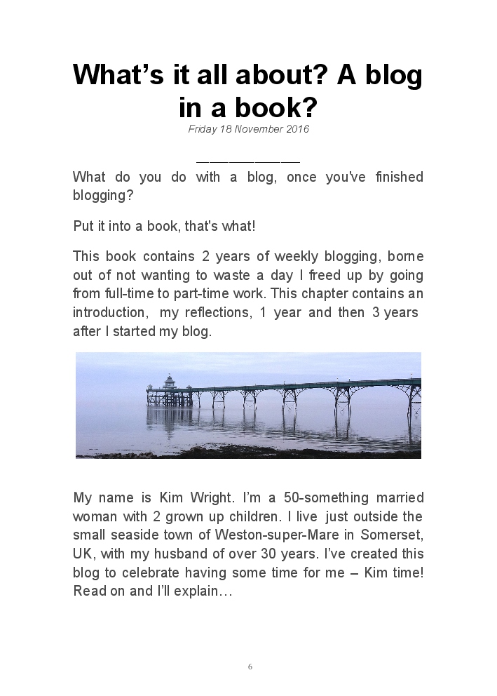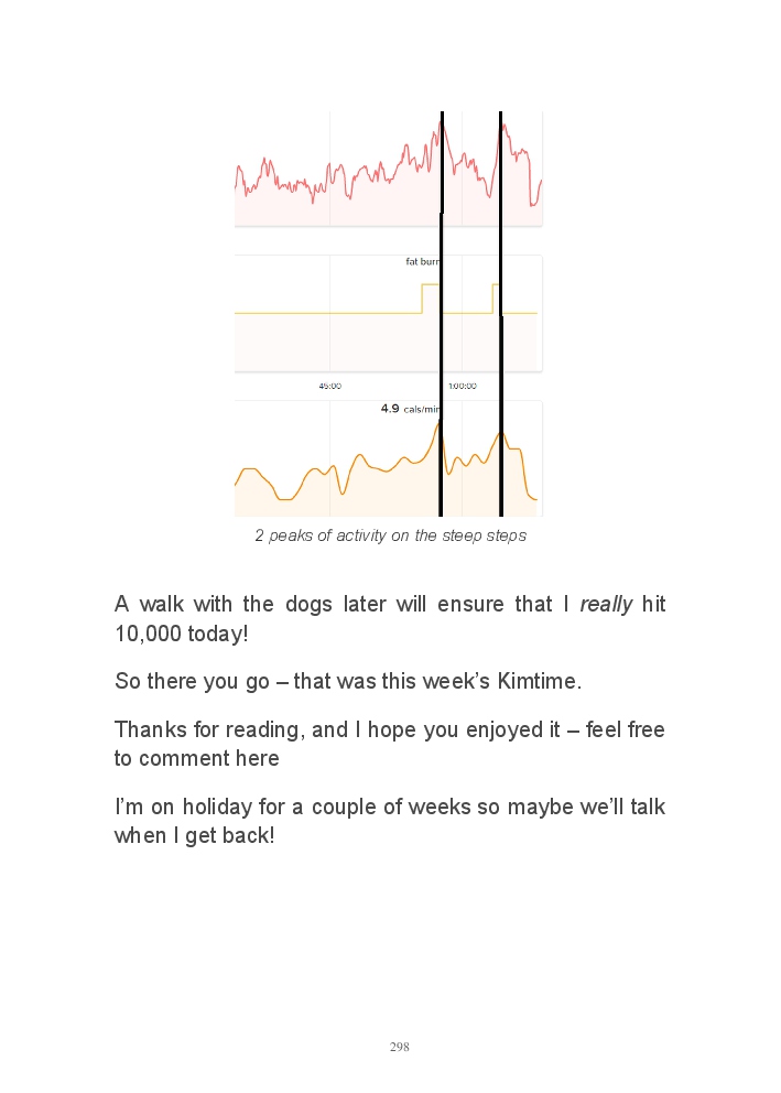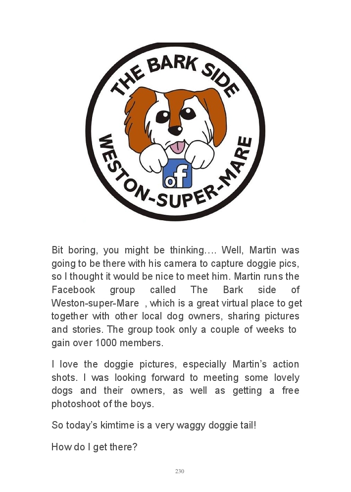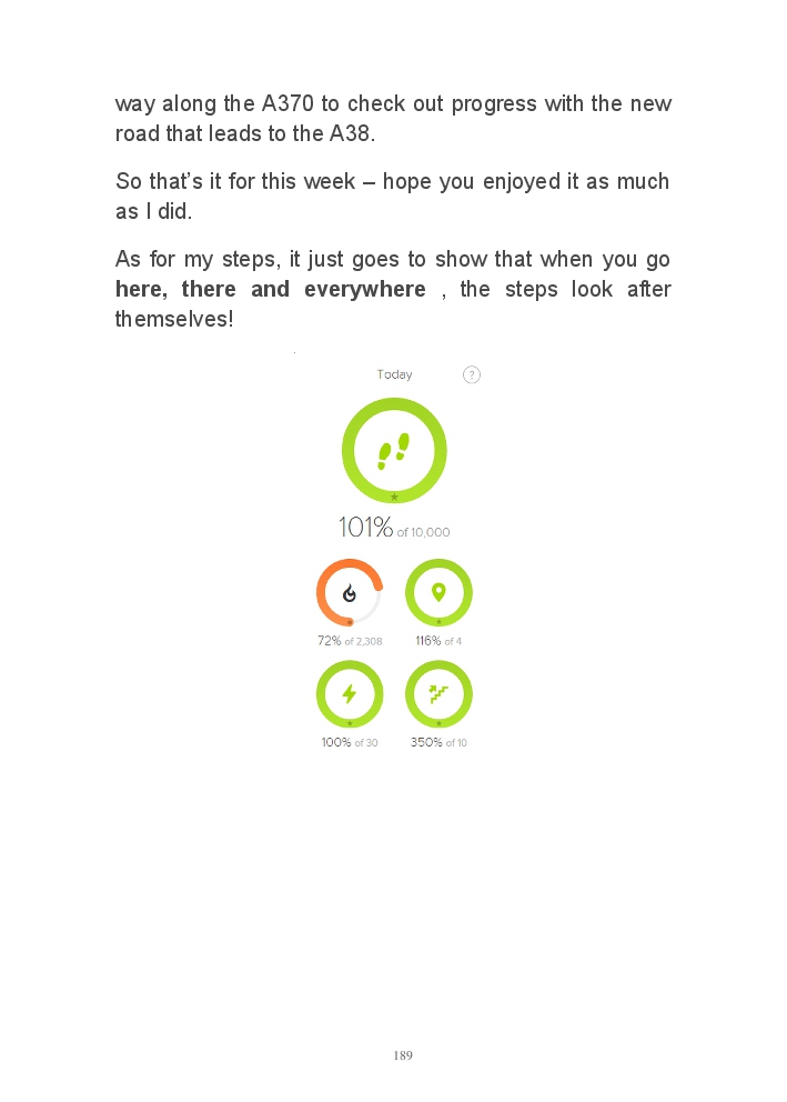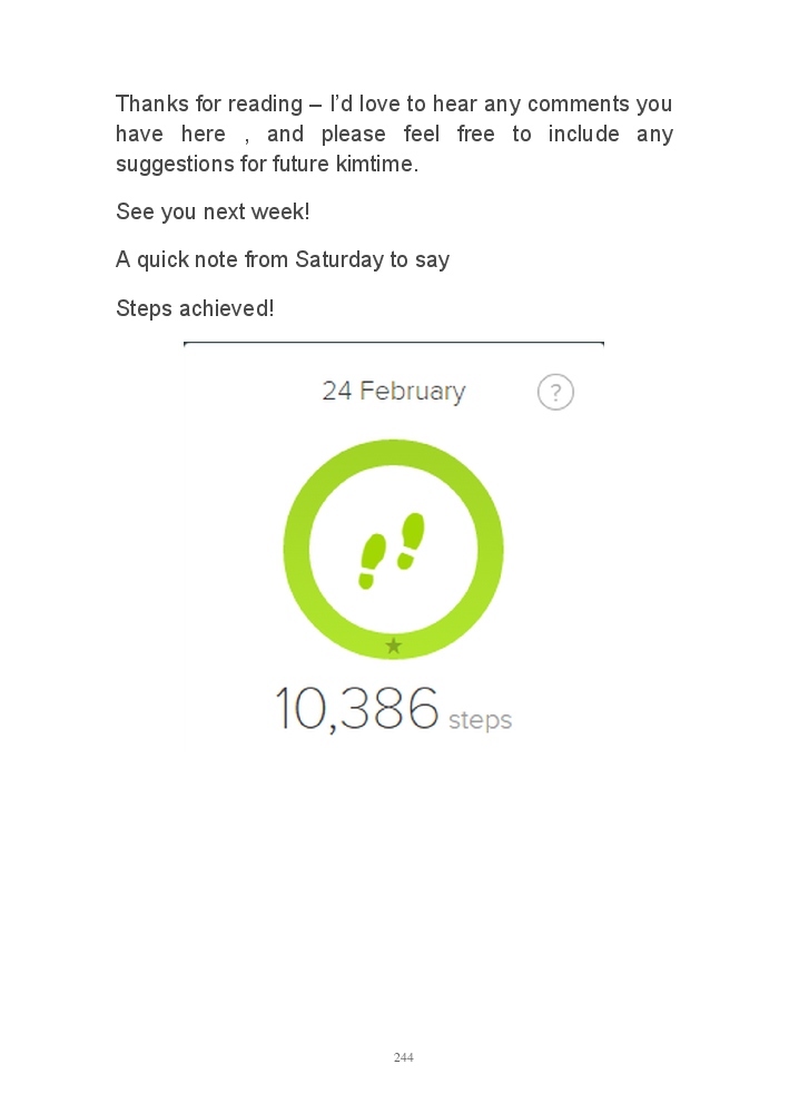 This book records the complete Kimtime blog, including photos as well as a light and friendly narrative. There is a nod to fitness with a weekly step count of her weekly travels around the Somerset area.
