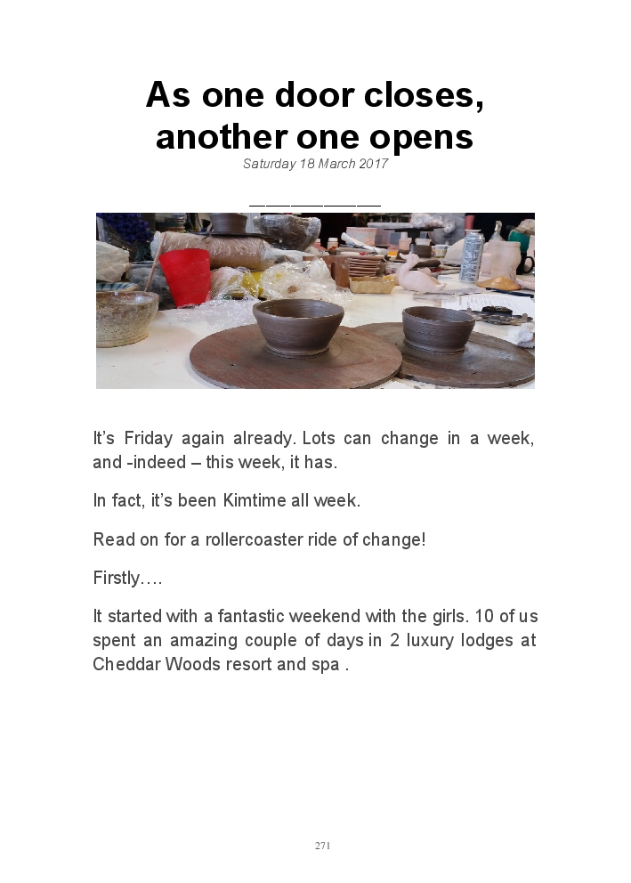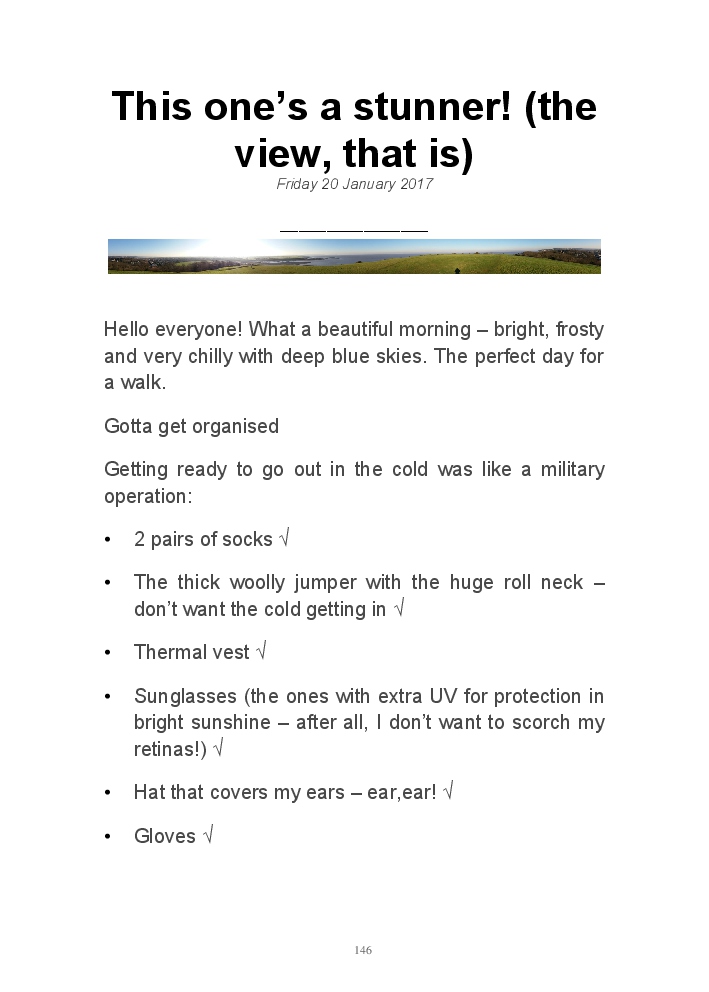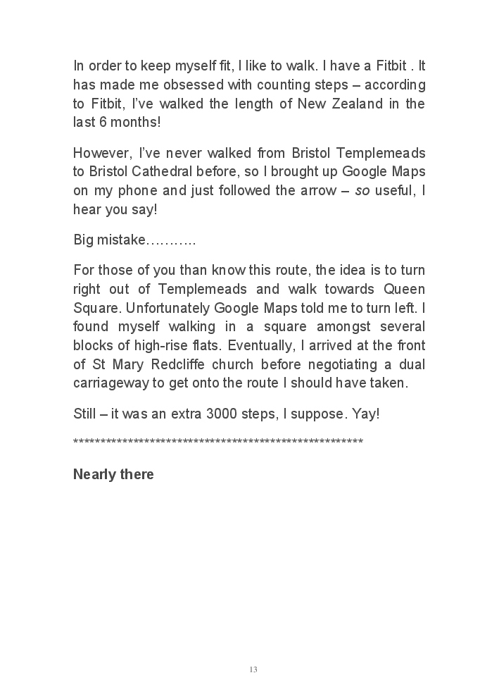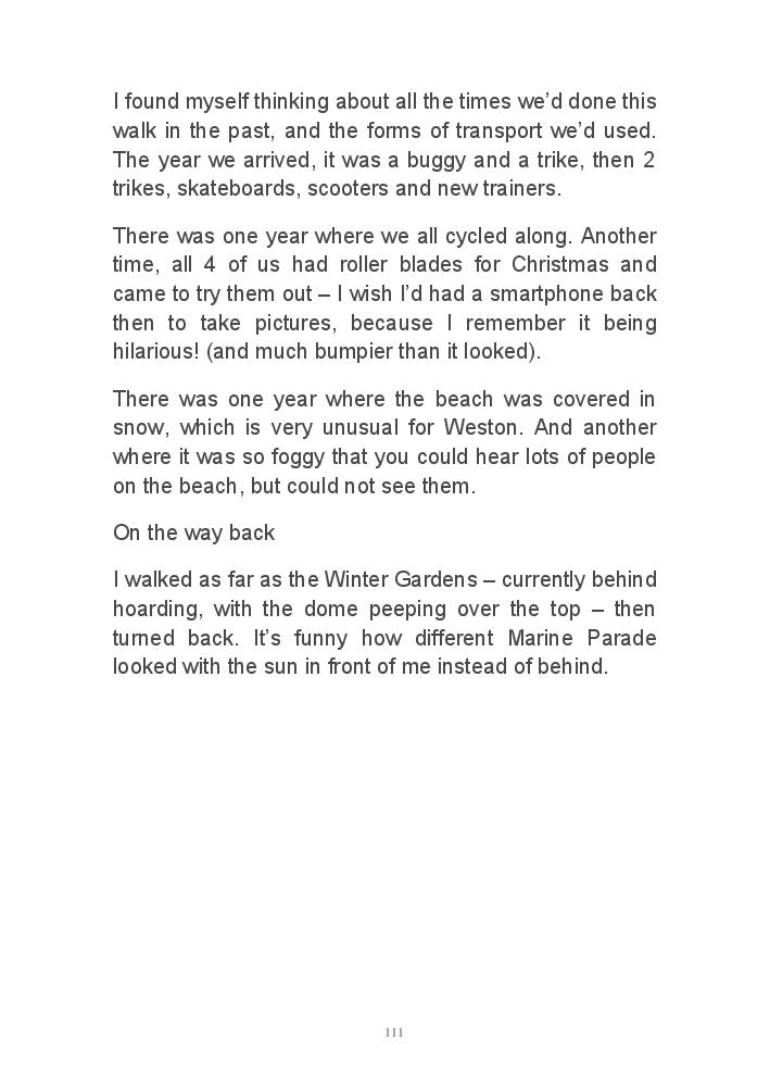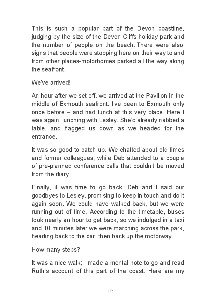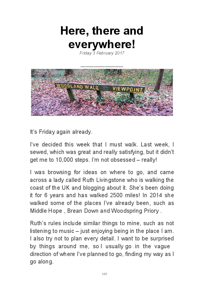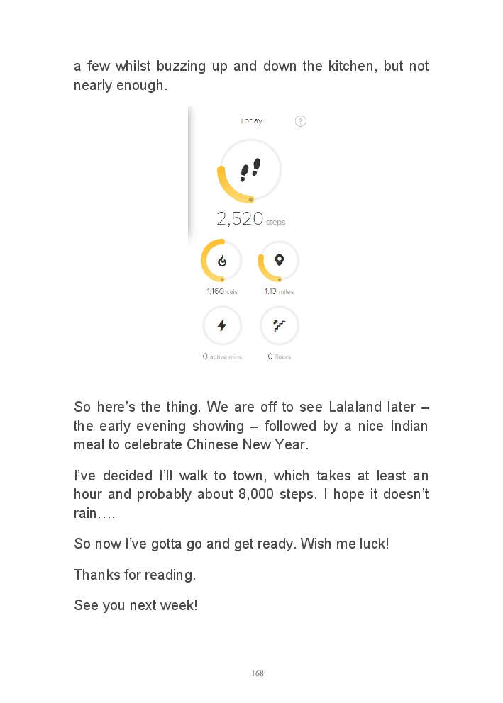 This book records the complete Kimtime blog, including photos as well as a light and friendly narrative. There is a nod to fitness with a weekly step count of her weekly travels around the Somerset area.