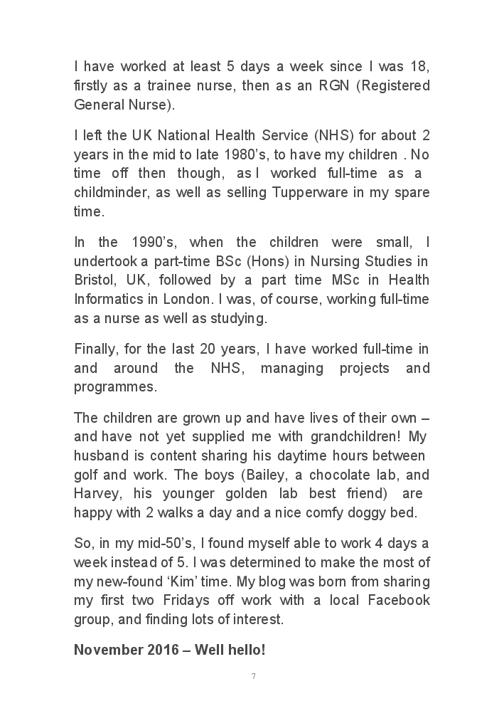 Having spent most of her life working full time as a nurse and then a manager in the English NHS, Kim changed to part-time hours, so started a blog to celebrate having some Kimtime.