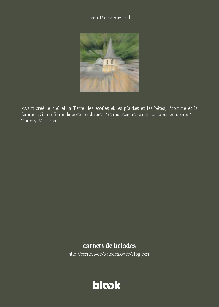 Jean-Pierre Ravanel made the blook of their their blog Overblog ! Support their creativity by buying their blook or create your own now on BlookUp!