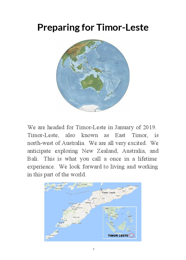 To the people we met in Timor-Leste: Thank you for your love, care, support, and friendship. We will always remember you as our international family.