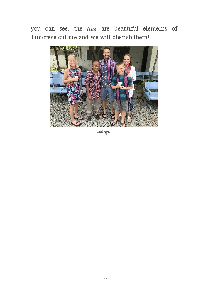 To the people we met in Timor-Leste: Thank you for your love, care, support, and friendship. We will always remember you as our international family.