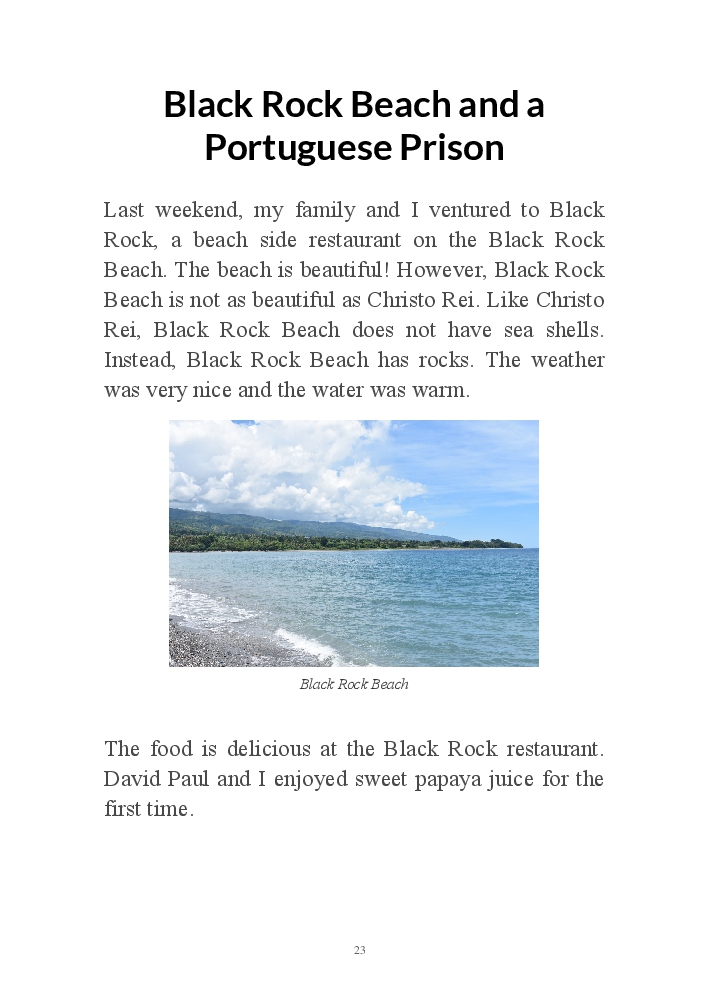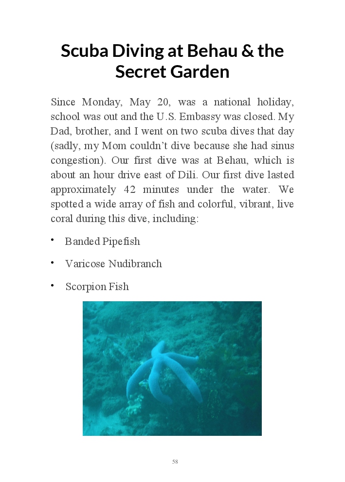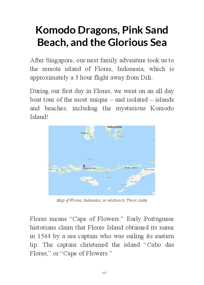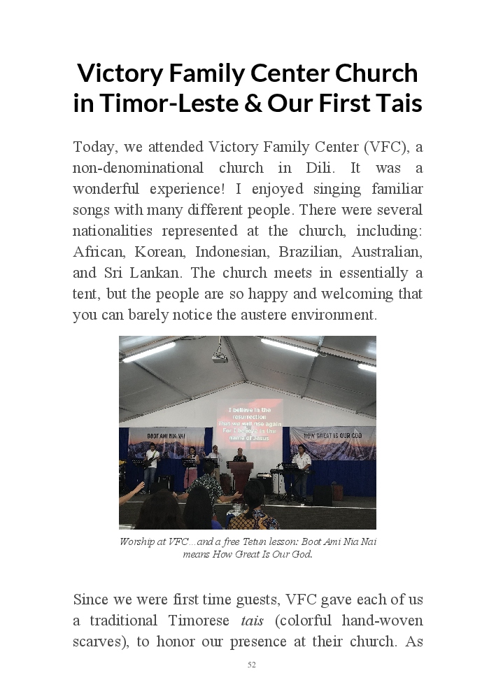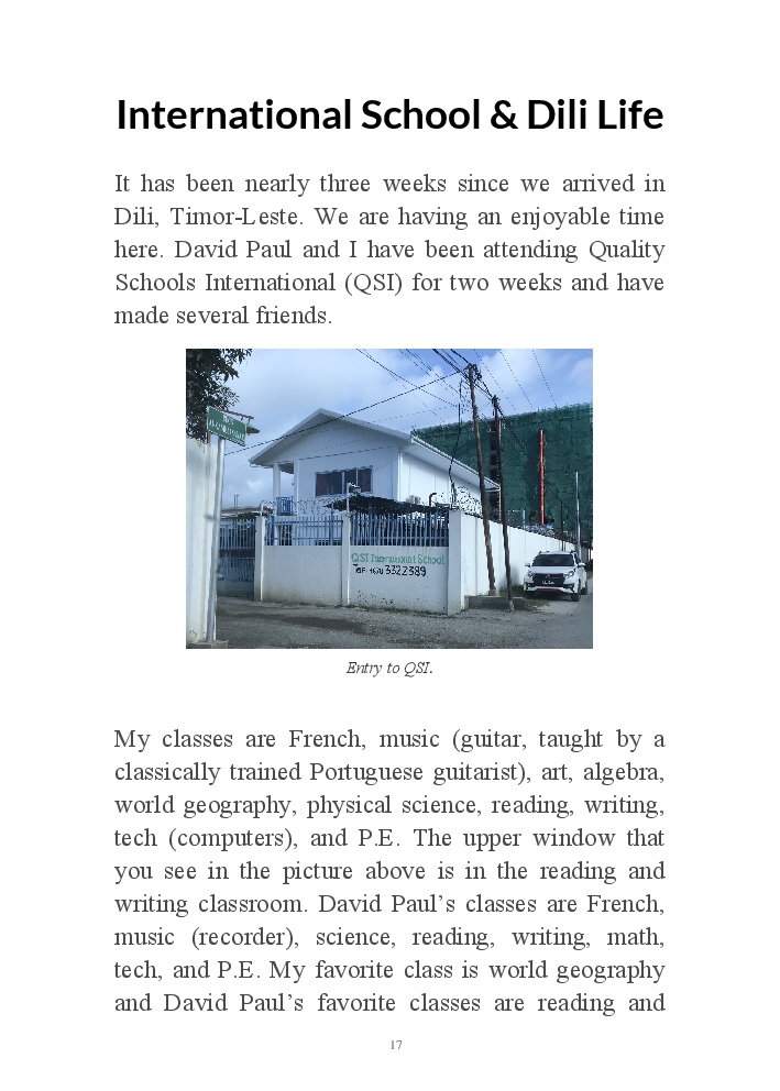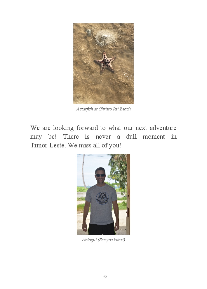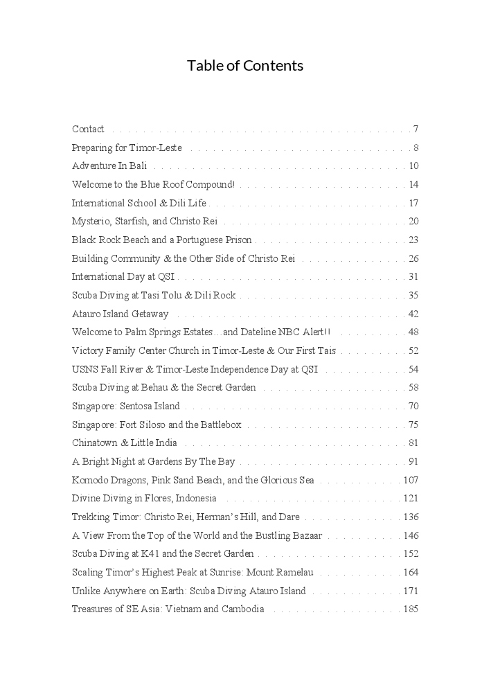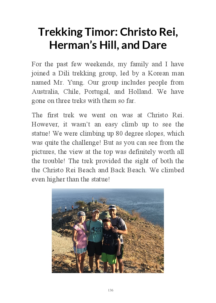 This book chronicles all of Madeline's blog posts and pictures that she took and published while in Dili in 2019. It includes vivid descriptions of life in Timor-Leste and exciting adventures within SE Asia.
