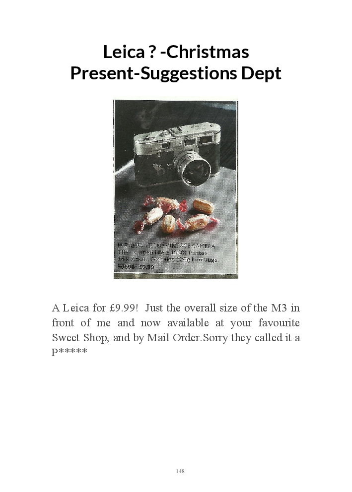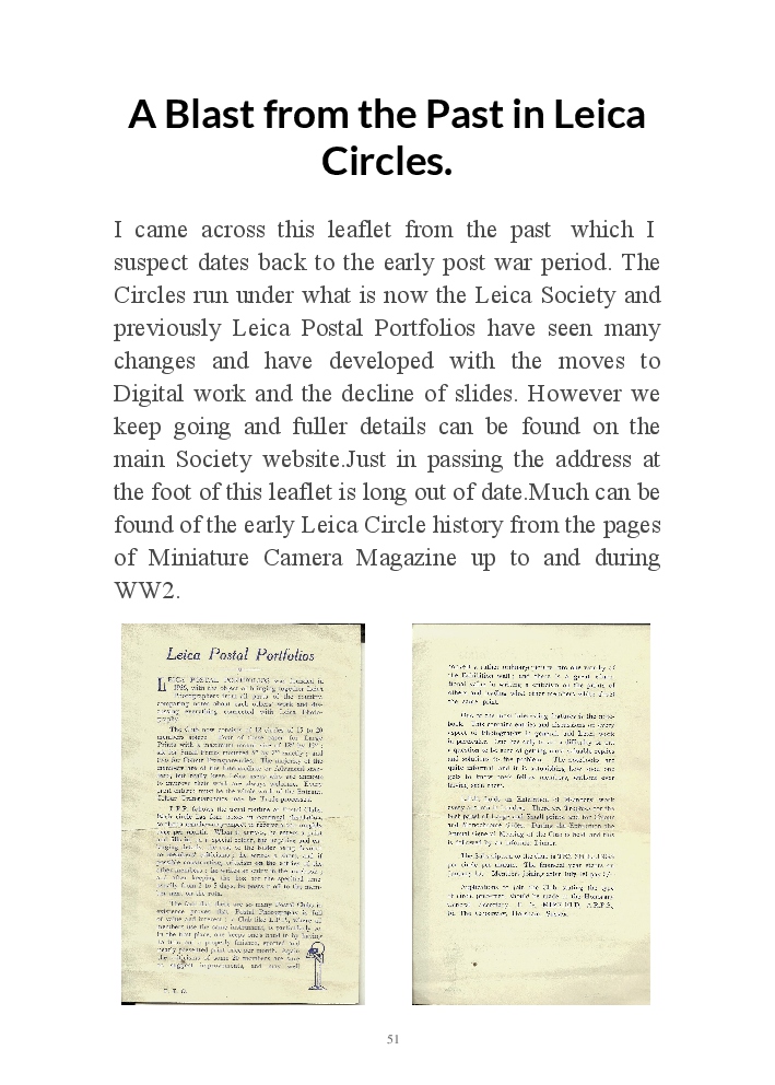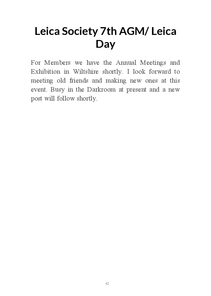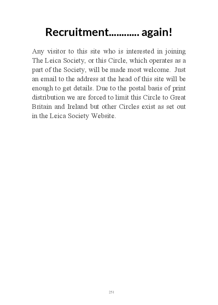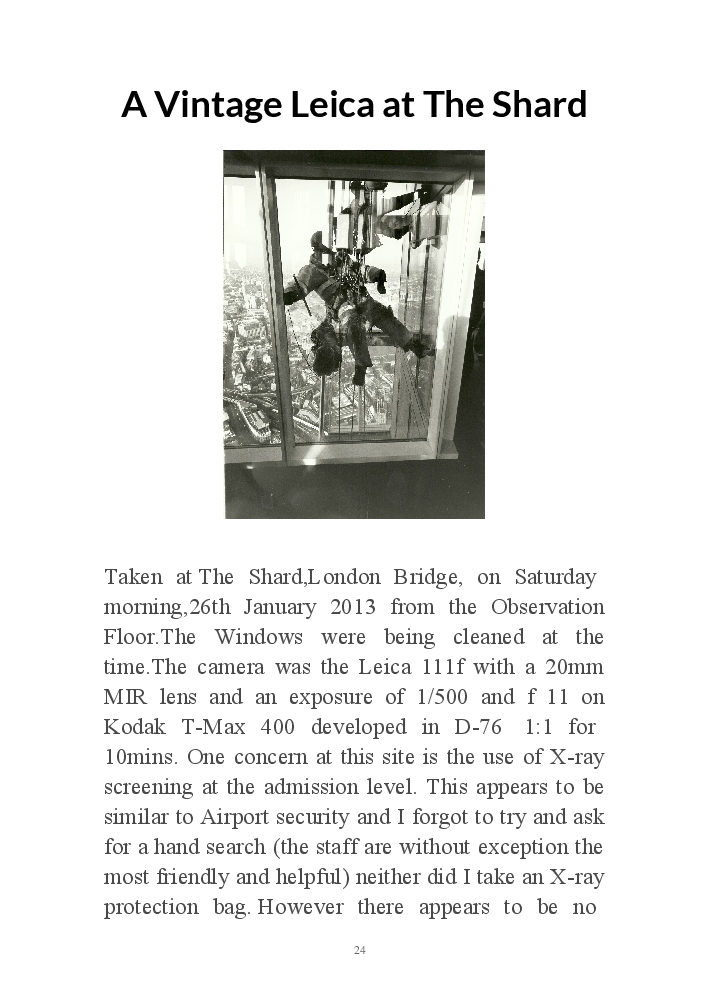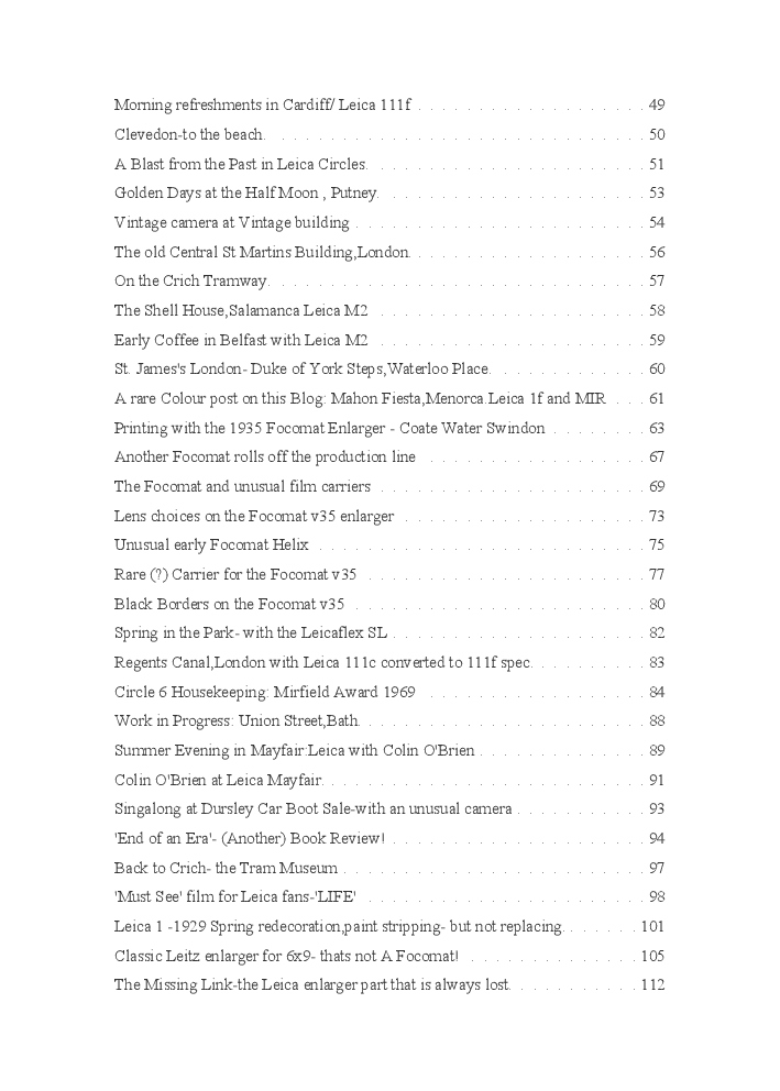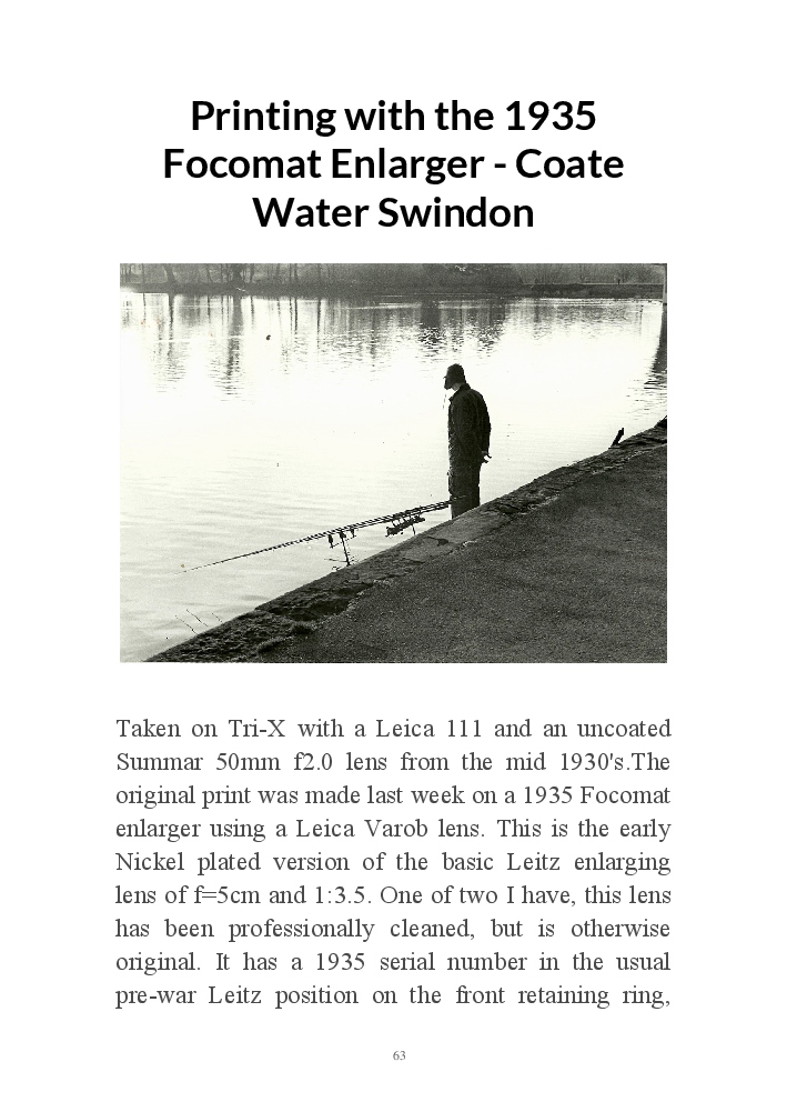 A book version of the popular Blog for Leica Film users. This is the background of the UK Leica Society Circle 06 which has existed since the mid-1930's for keen users of the Leica with Black and White Film. As Secretary I have recorded about eight years of activity in the Circle and in my own collection of various ancillary equipment. Illustrated largely by my own pictures.