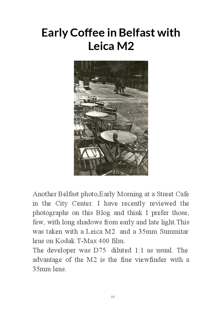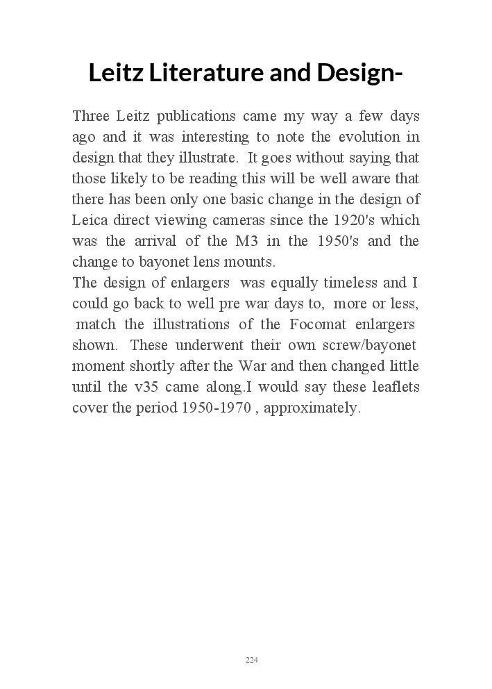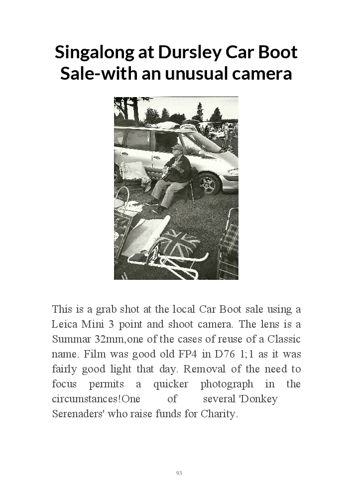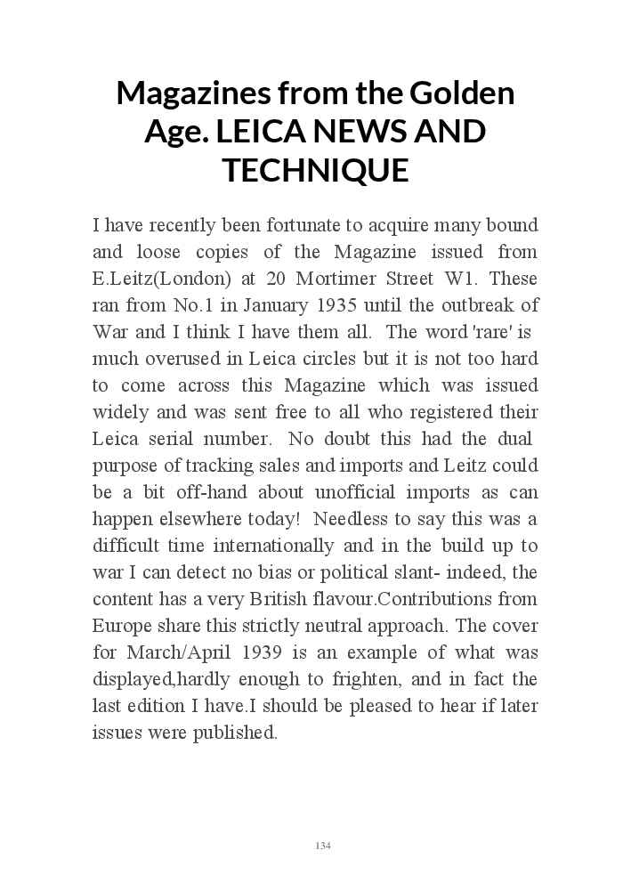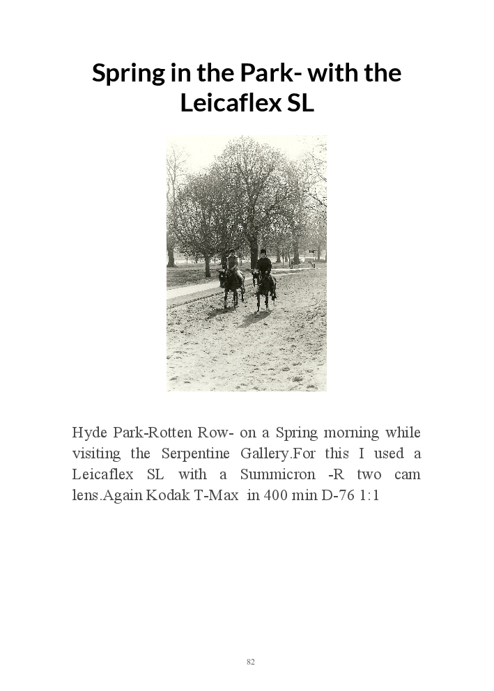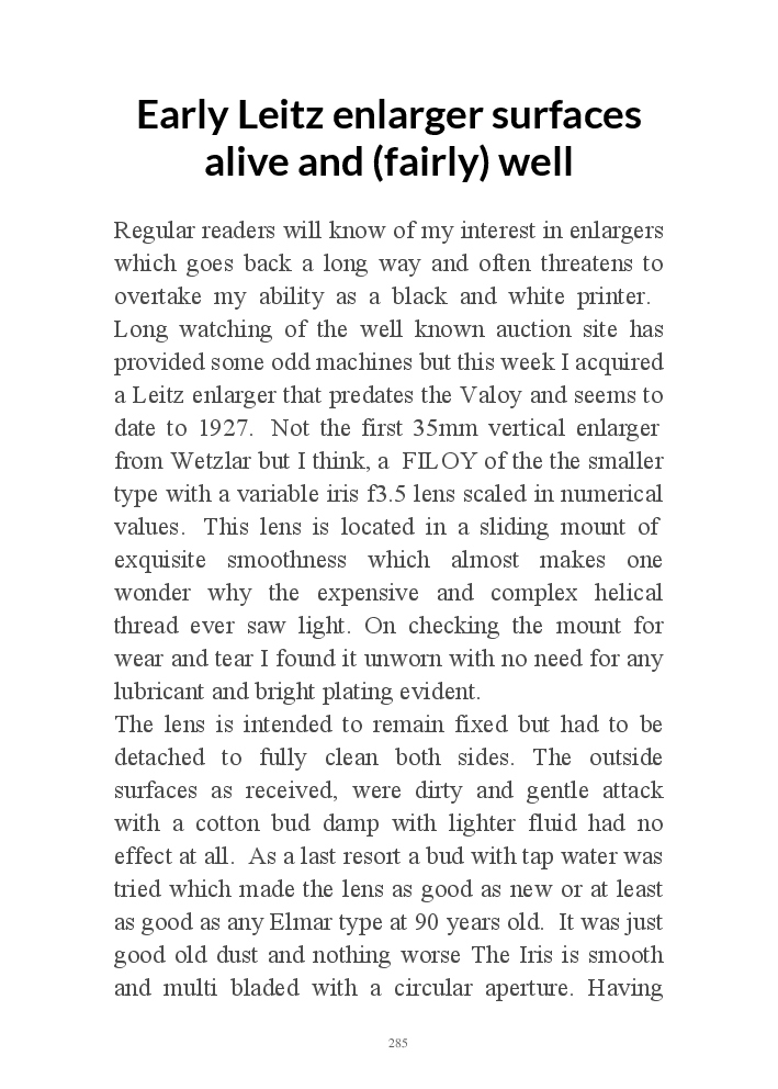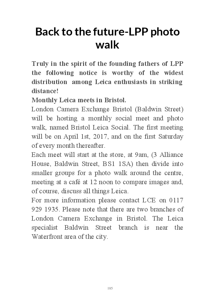 A book version of the popular Blog for Leica Film users. This is the background of the UK Leica Society Circle 06 which has existed since the mid-1930's for keen users of the Leica with Black and White Film. As Secretary I have recorded about eight years of activity in the Circle and in my own collection of various ancillary equipment. Illustrated largely by my own pictures.