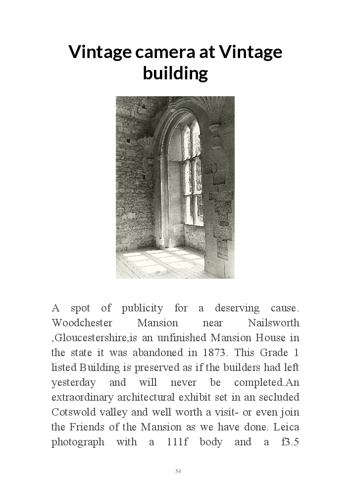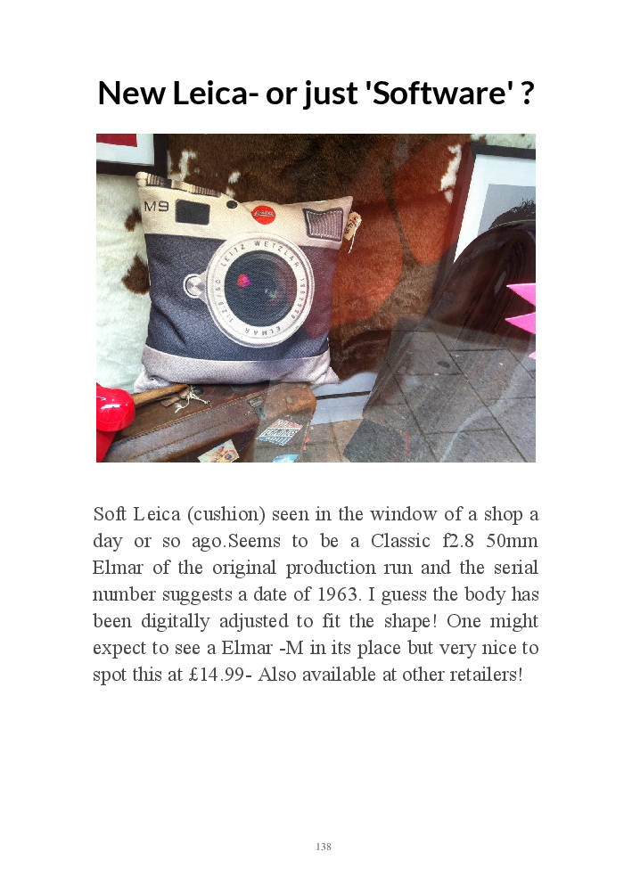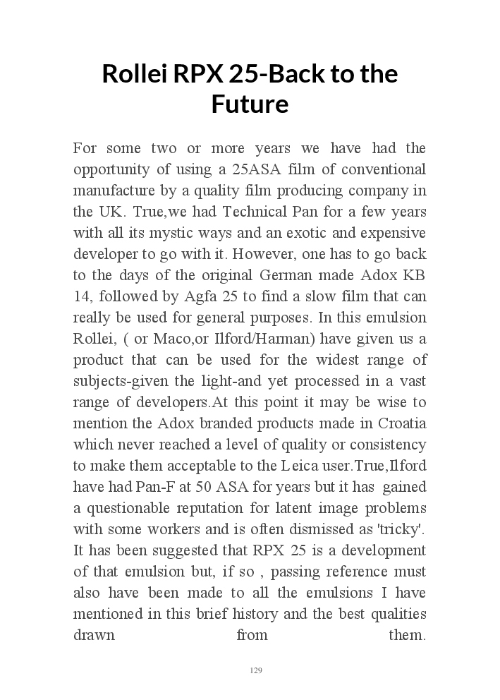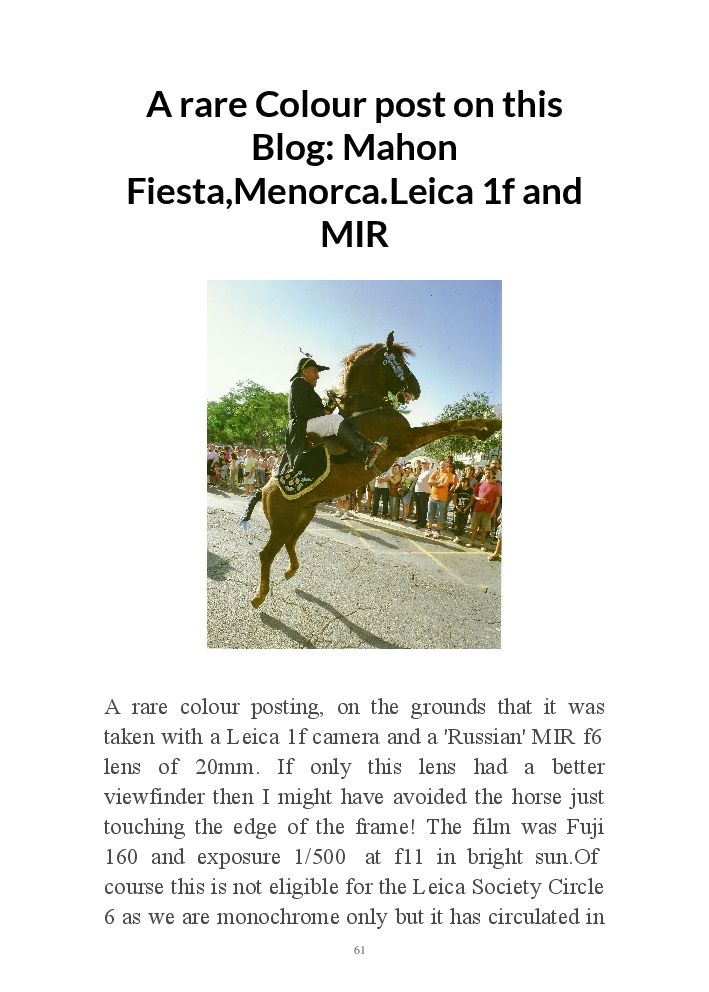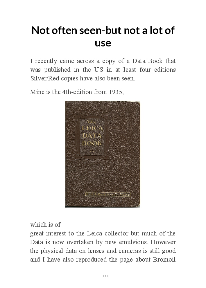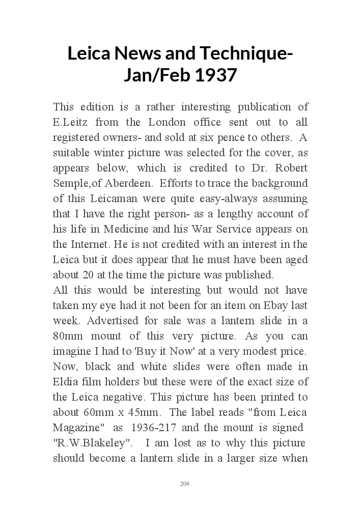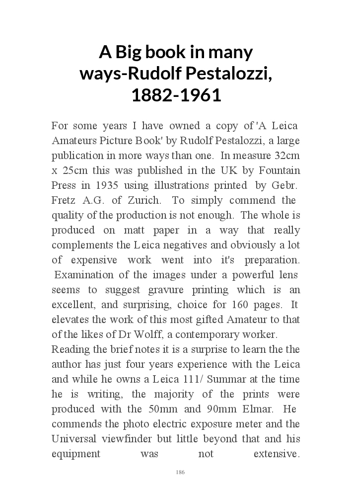 A book version of the popular Blog for Leica Film users. This is the background of the UK Leica Society Circle 06 which has existed since the mid-1930's for keen users of the Leica with Black and White Film. As Secretary I have recorded about eight years of activity in the Circle and in my own collection of various ancillary equipment. Illustrated largely by my own pictures.