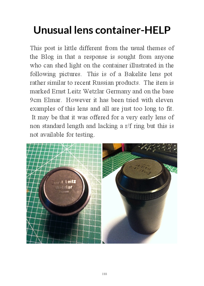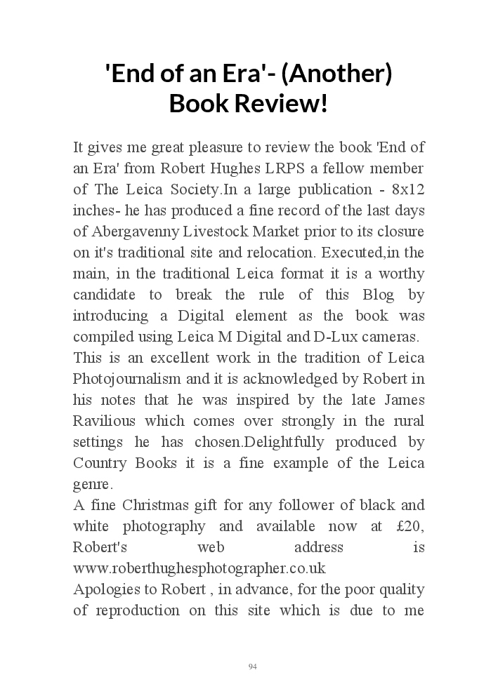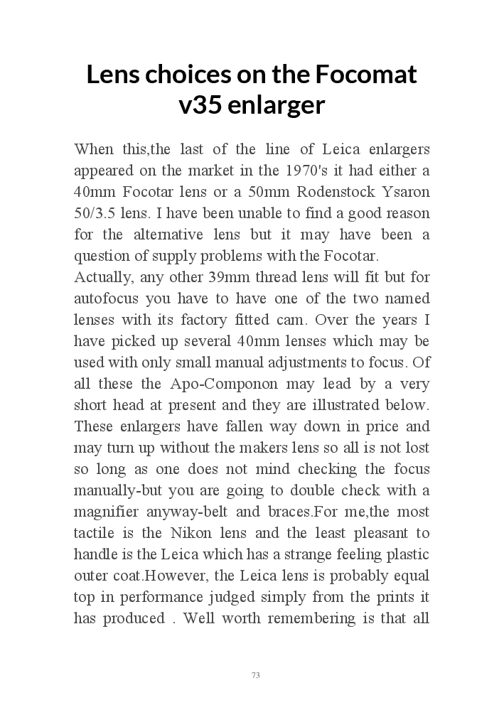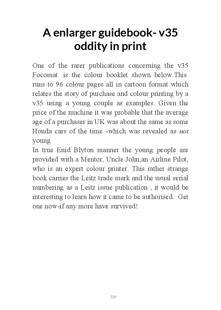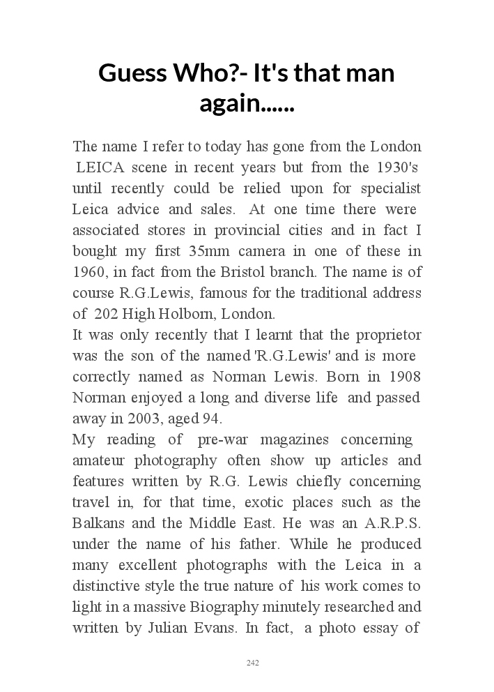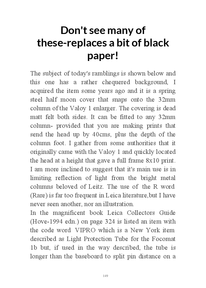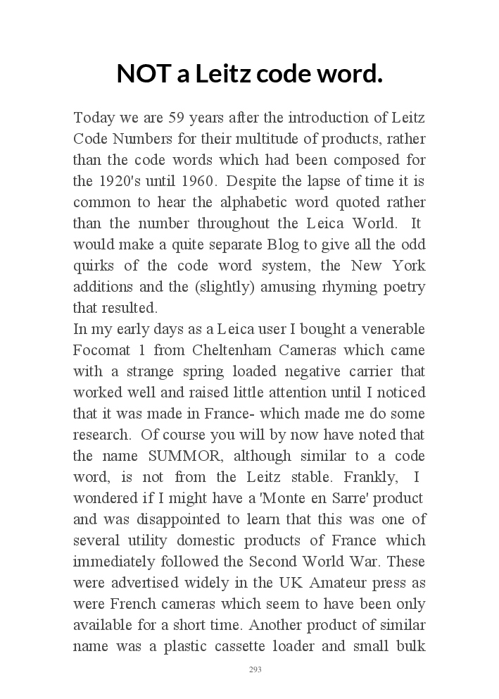 A book version of the popular Blog for Leica Film users. This is the background of the UK Leica Society Circle 06 which has existed since the mid-1930's for keen users of the Leica with Black and White Film. As Secretary I have recorded about eight years of activity in the Circle and in my own collection of various ancillary equipment. Illustrated largely by my own pictures.