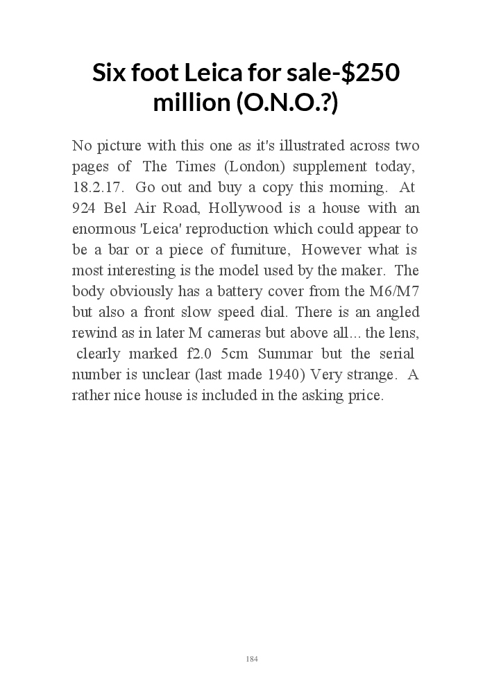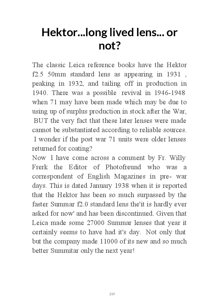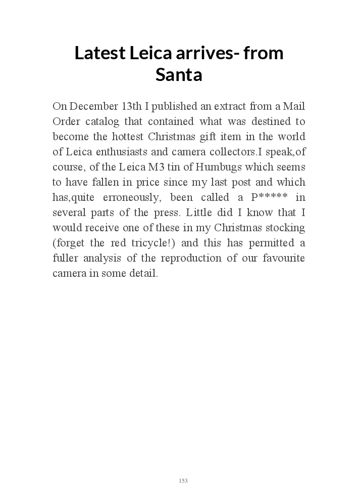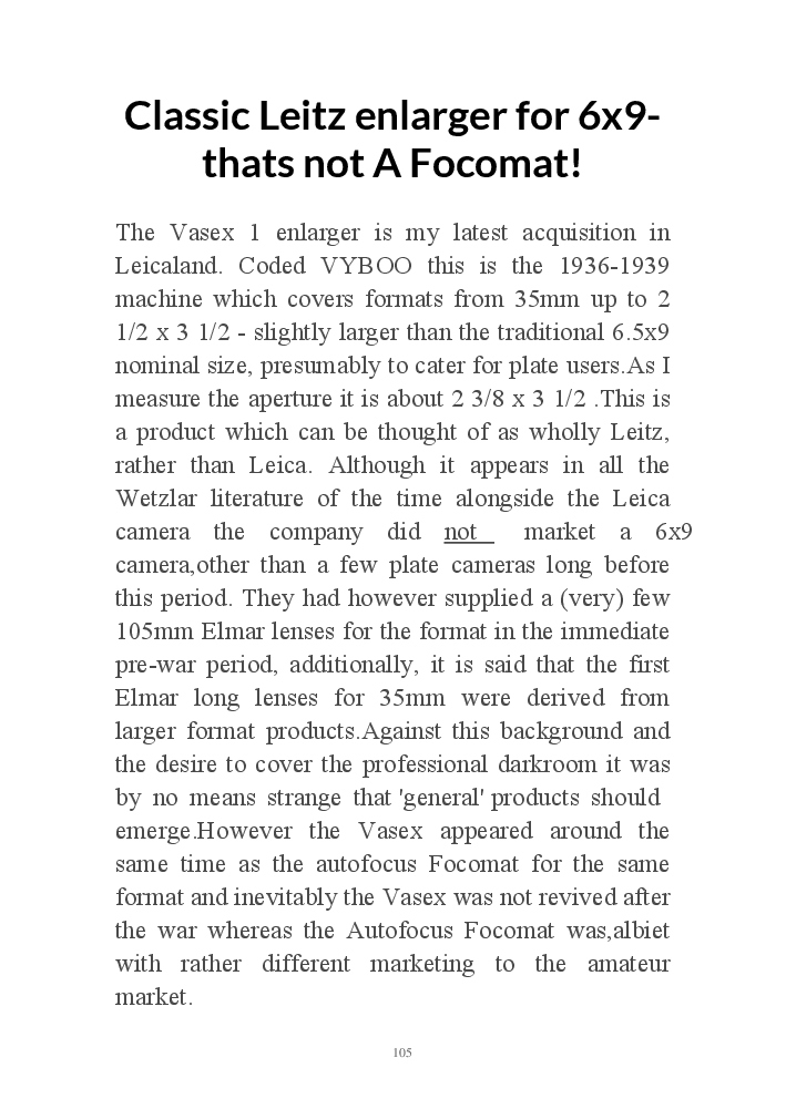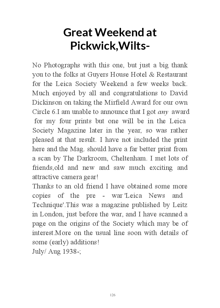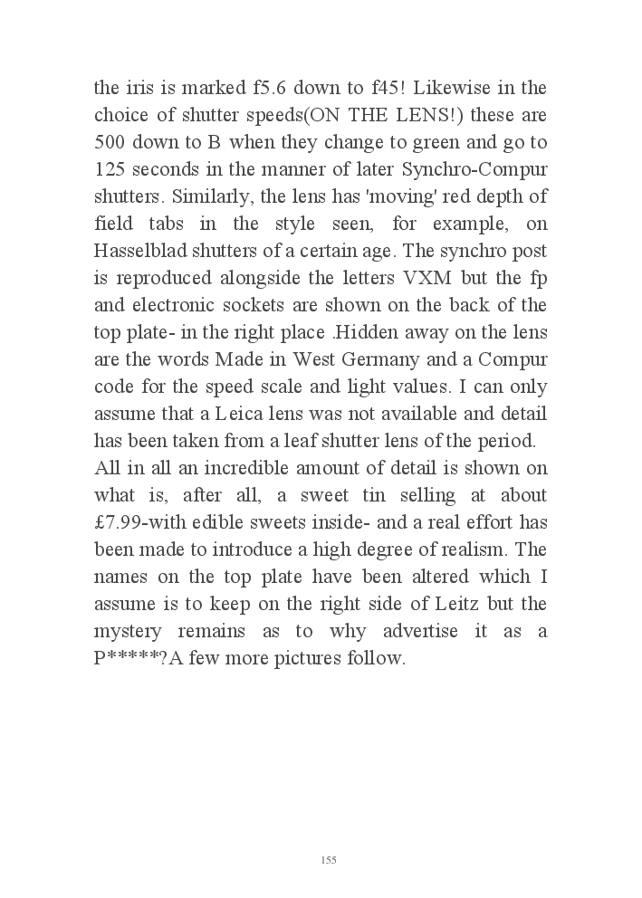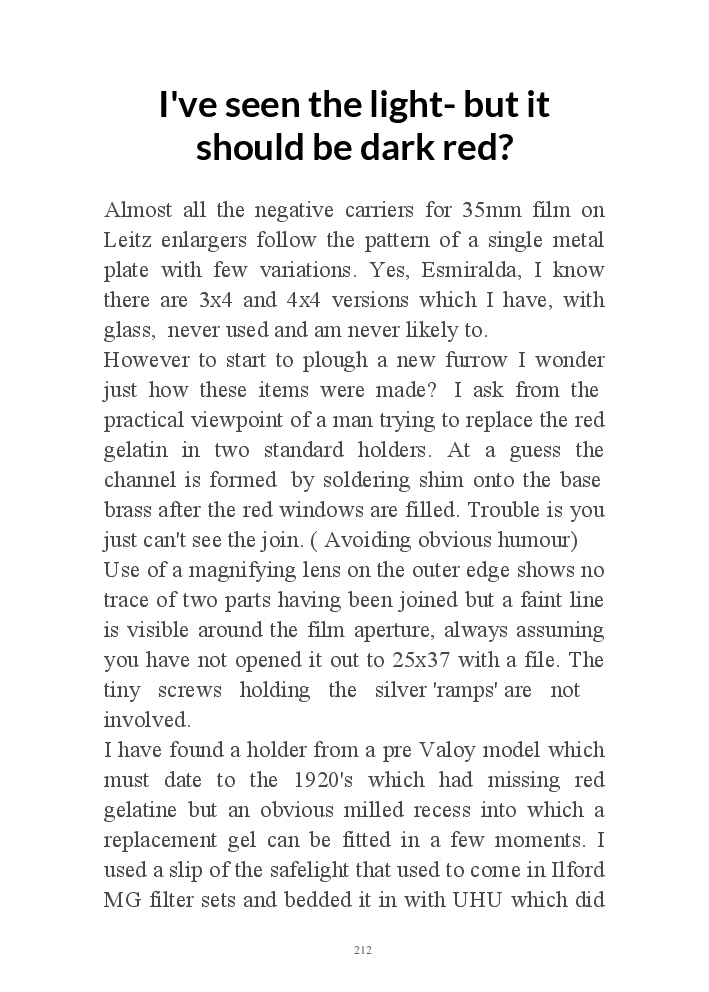 A book version of the popular Blog for Leica Film users. This is the background of the UK Leica Society Circle 06 which has existed since the mid-1930's for keen users of the Leica with Black and White Film. As Secretary I have recorded about eight years of activity in the Circle and in my own collection of various ancillary equipment. Illustrated largely by my own pictures.