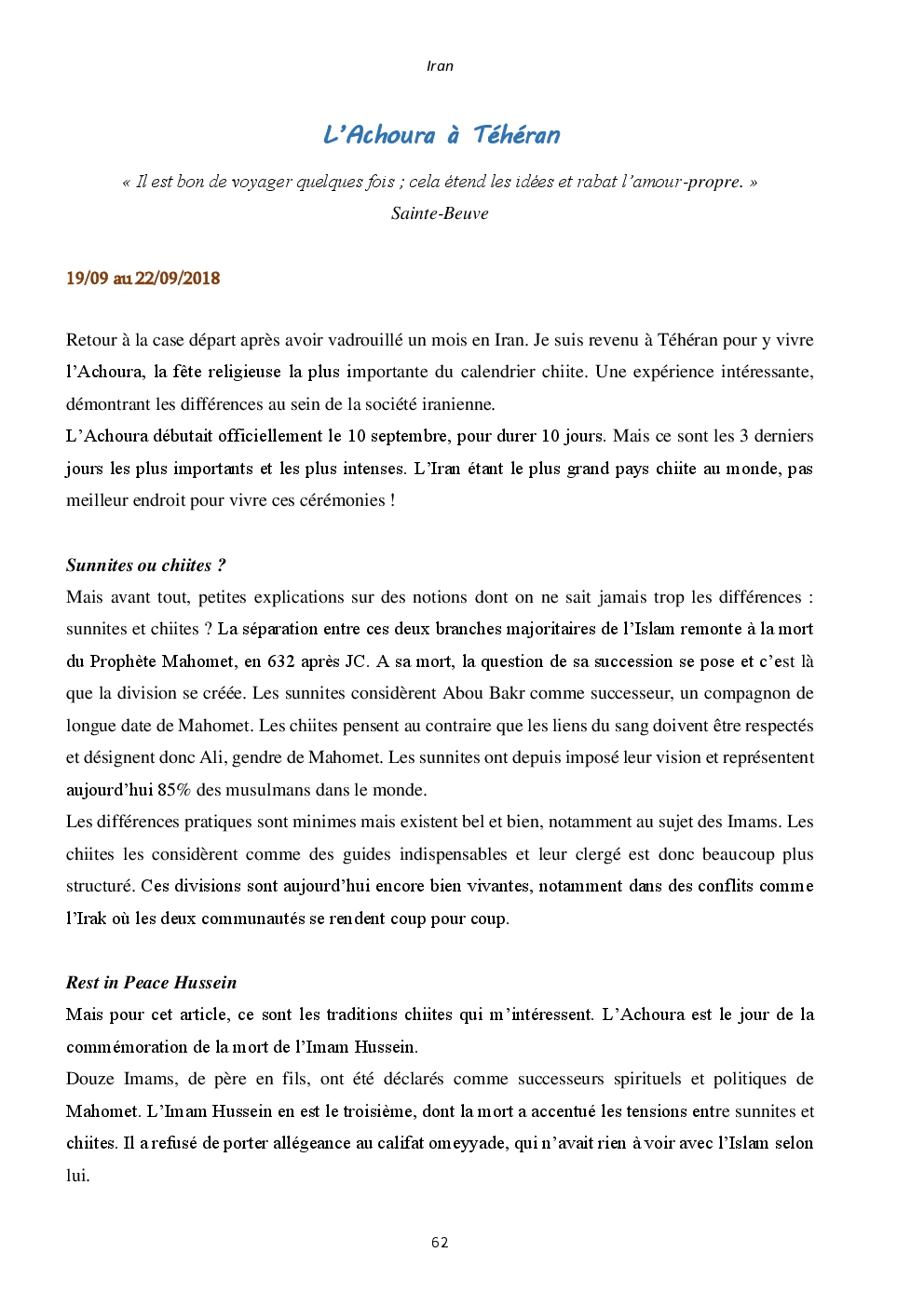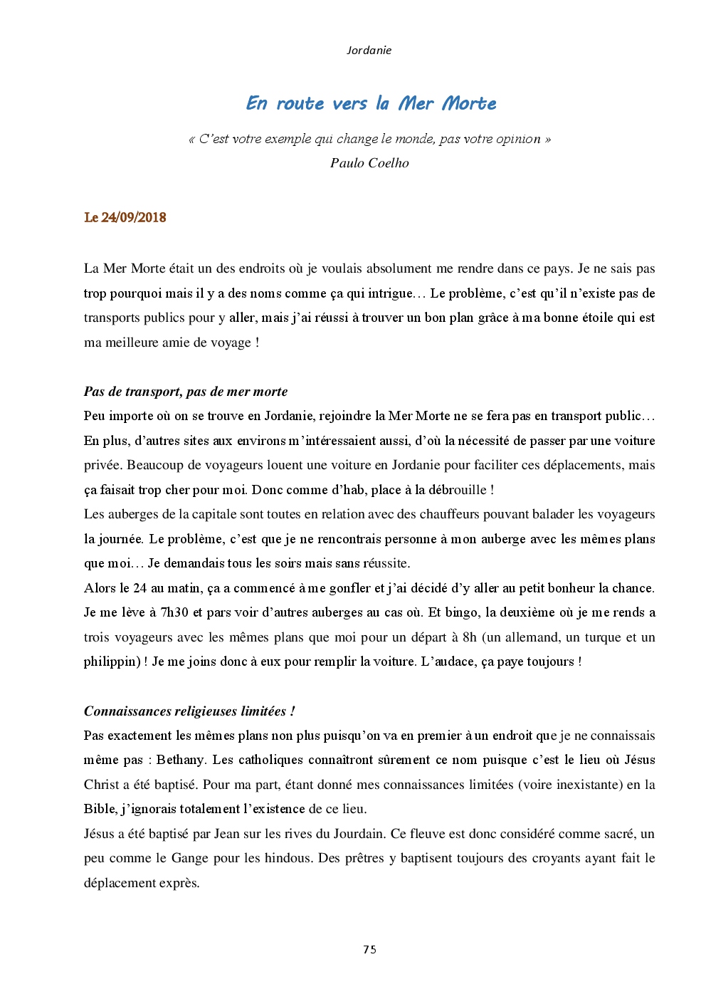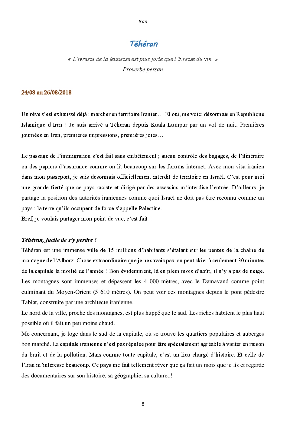 Ce livre contient le carnet de voyage de mon périple au Moyen-Orient en 2018, pour clôturer un voyage de plus d'un an ayant débuté en Asie.