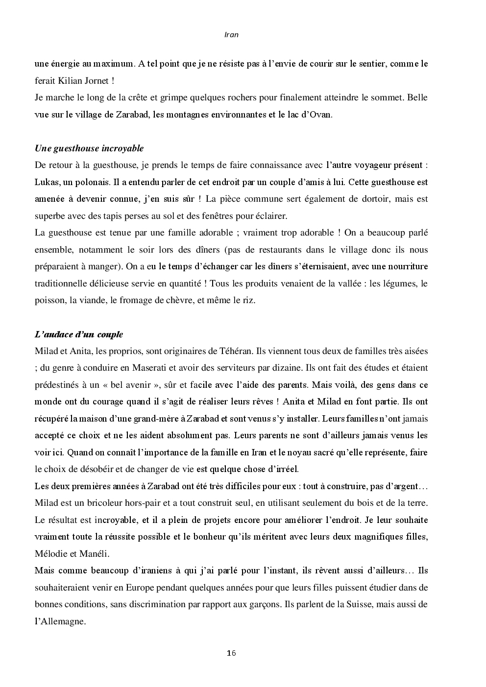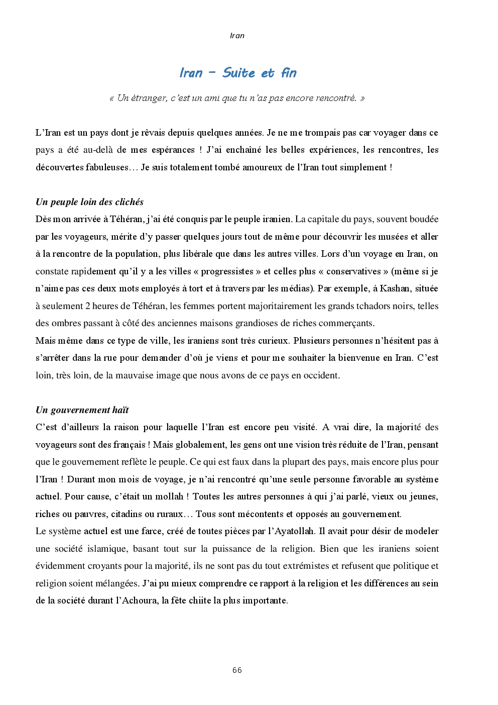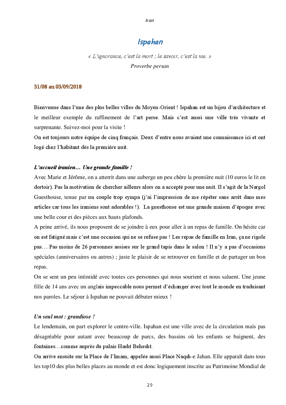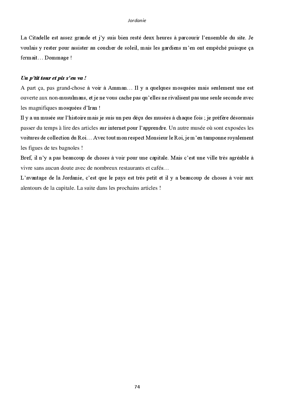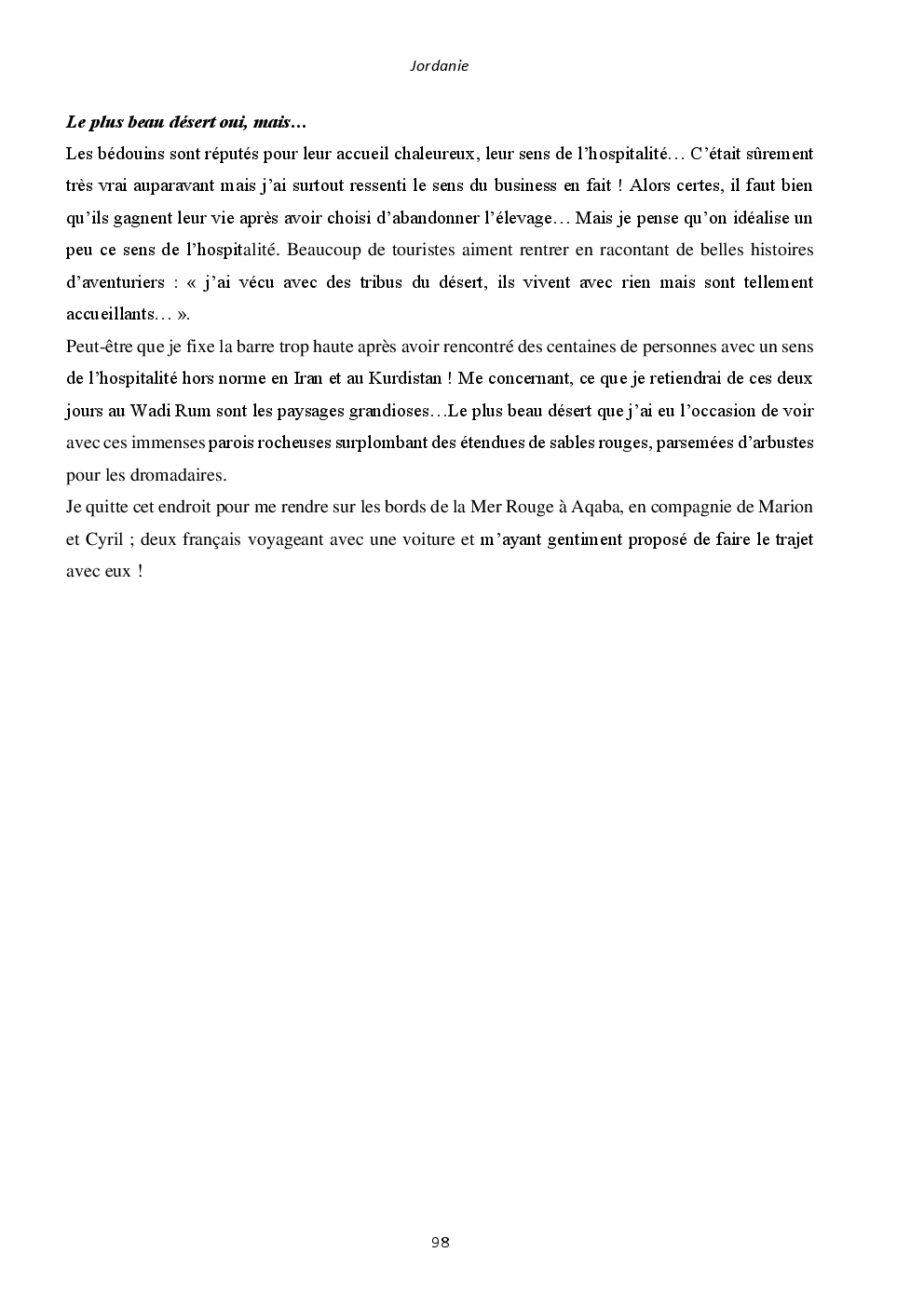 J'y ai découvert deux pays somptueux et extraordinaires : l'Iran et la Jordanie. Mais surtout, un accueil unique et loin des clichés que l'on peut avoir. Ça restera une région du monde spéciale, où j'ai hâte de retourner vagabonder.