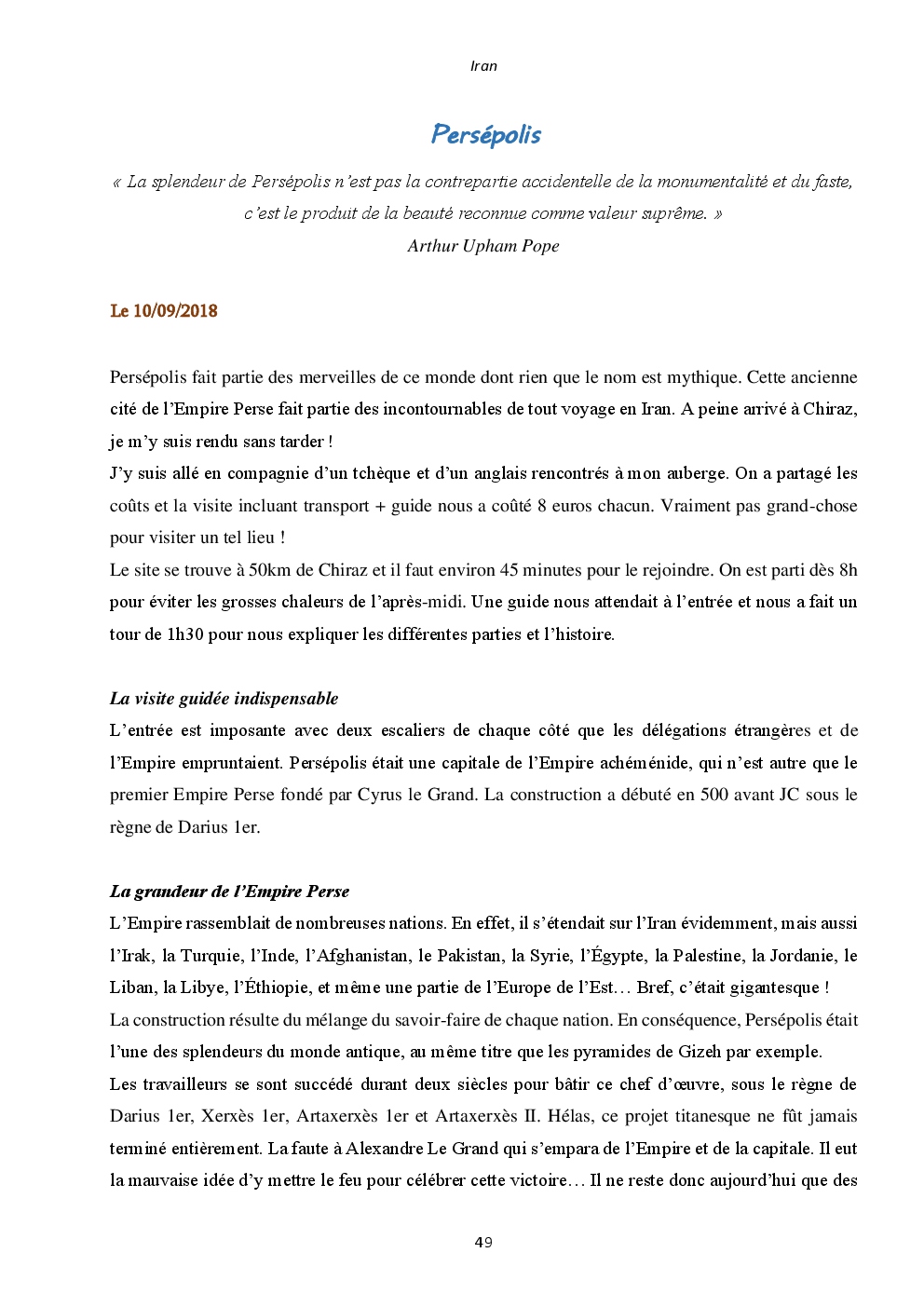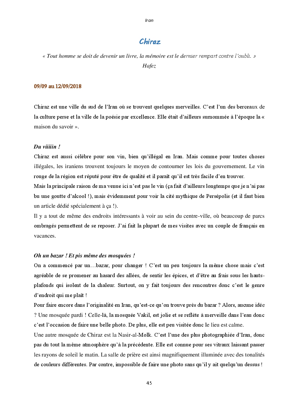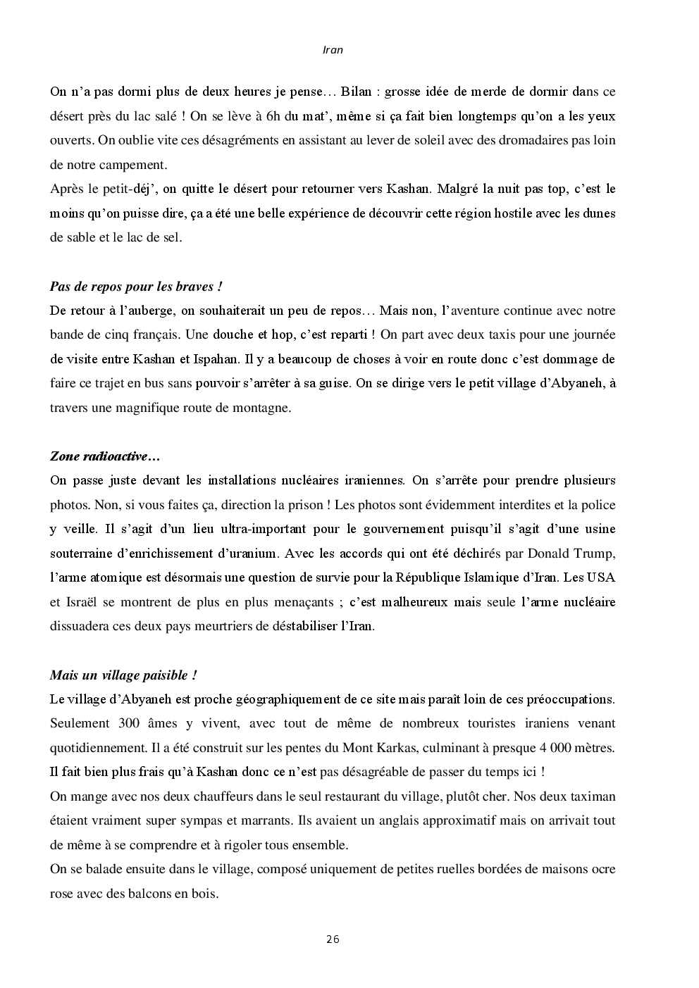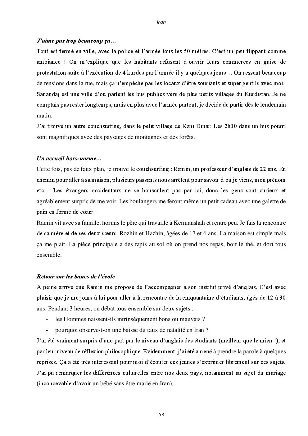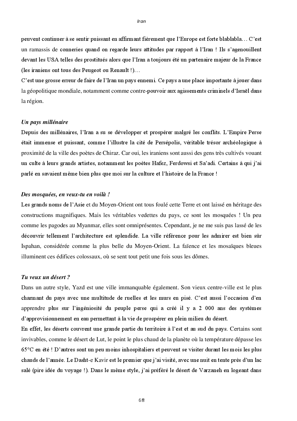 J'y ai découvert deux pays somptueux et extraordinaires : l'Iran et la Jordanie. Mais surtout, un accueil unique et loin des clichés que l'on peut avoir. Ça restera une région du monde spéciale, où j'ai hâte de retourner vagabonder.