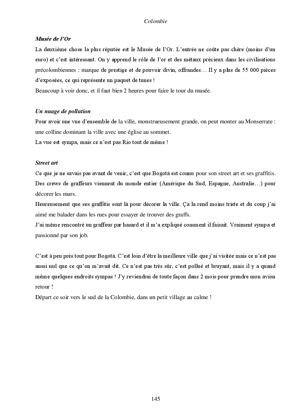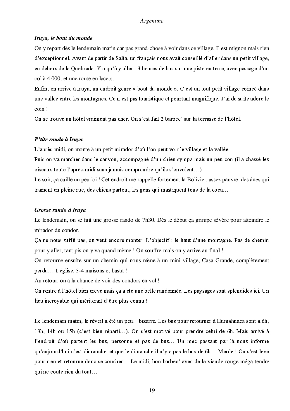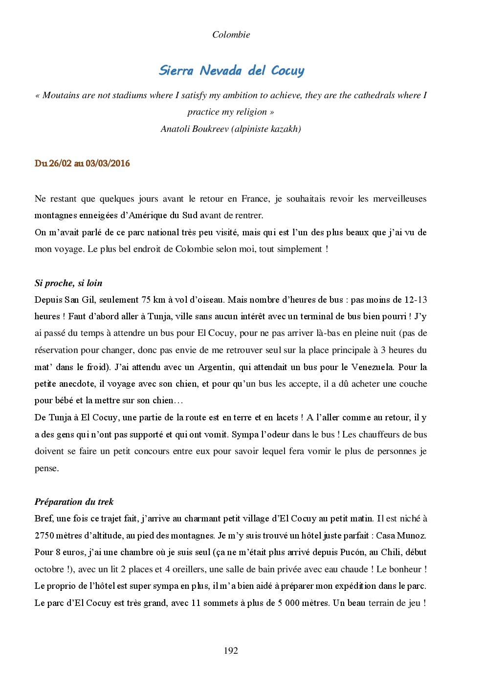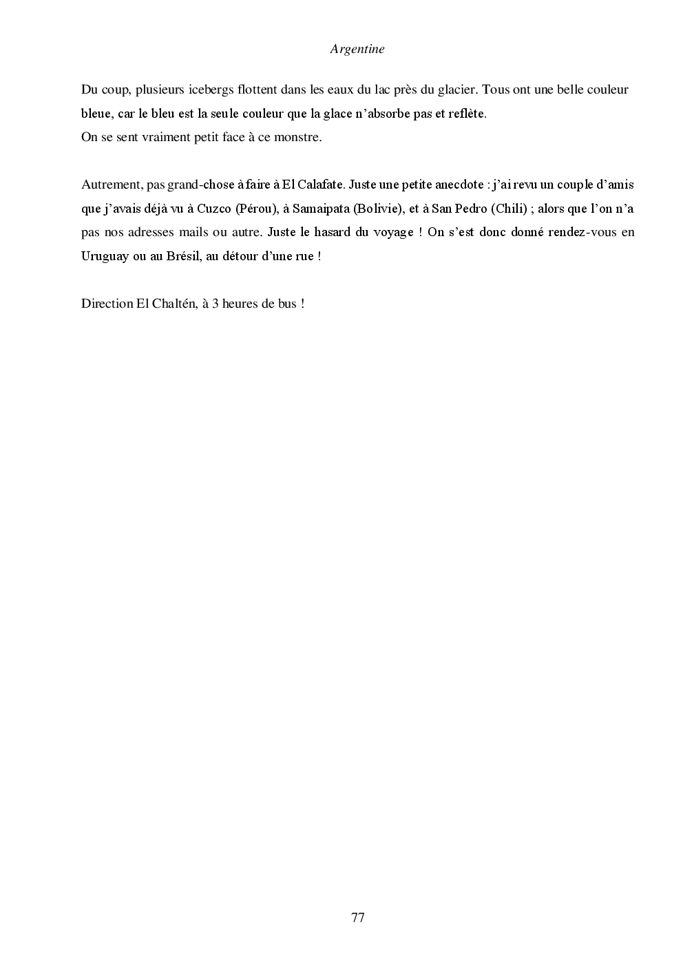 Dans ce livre se trouve la suite de mon voyage en Amérique du Sud : l'aventure continue ! Toujours entre mer et montagne, rencontre et partage, joie et galère... Le tout qui compose un souvenir inoubliable !