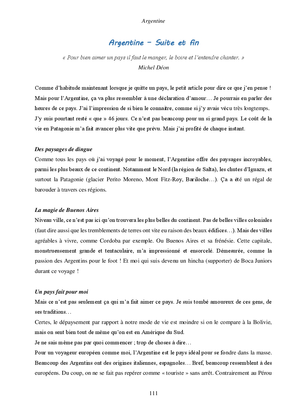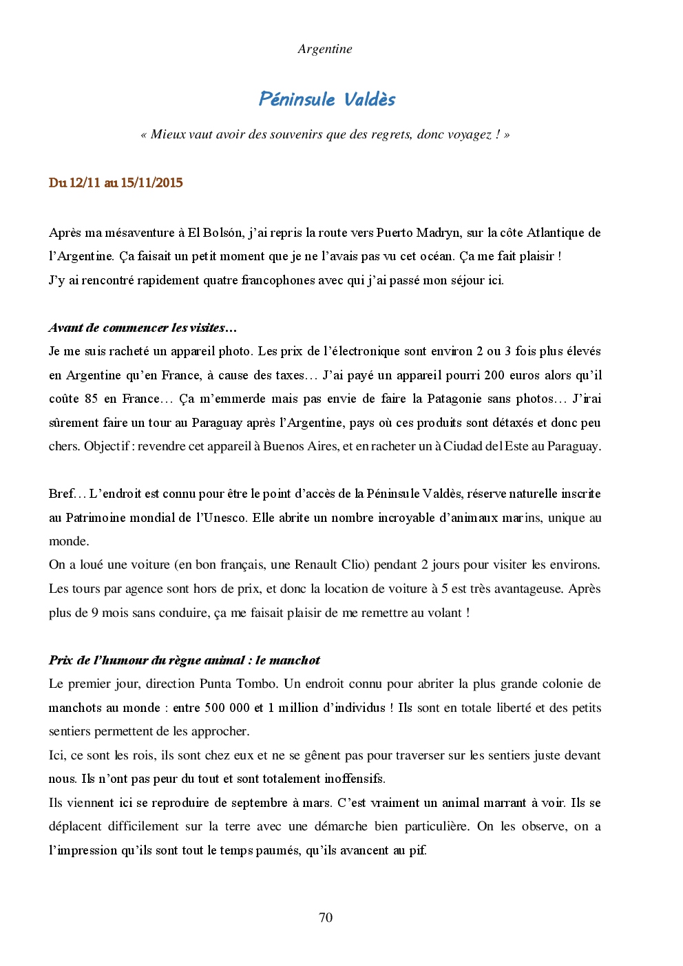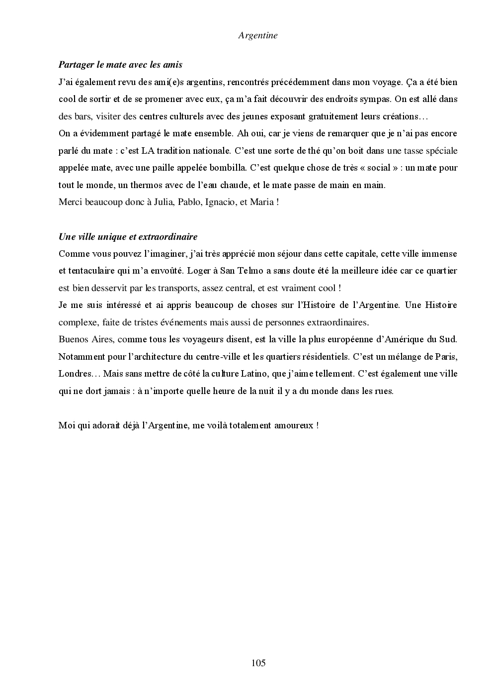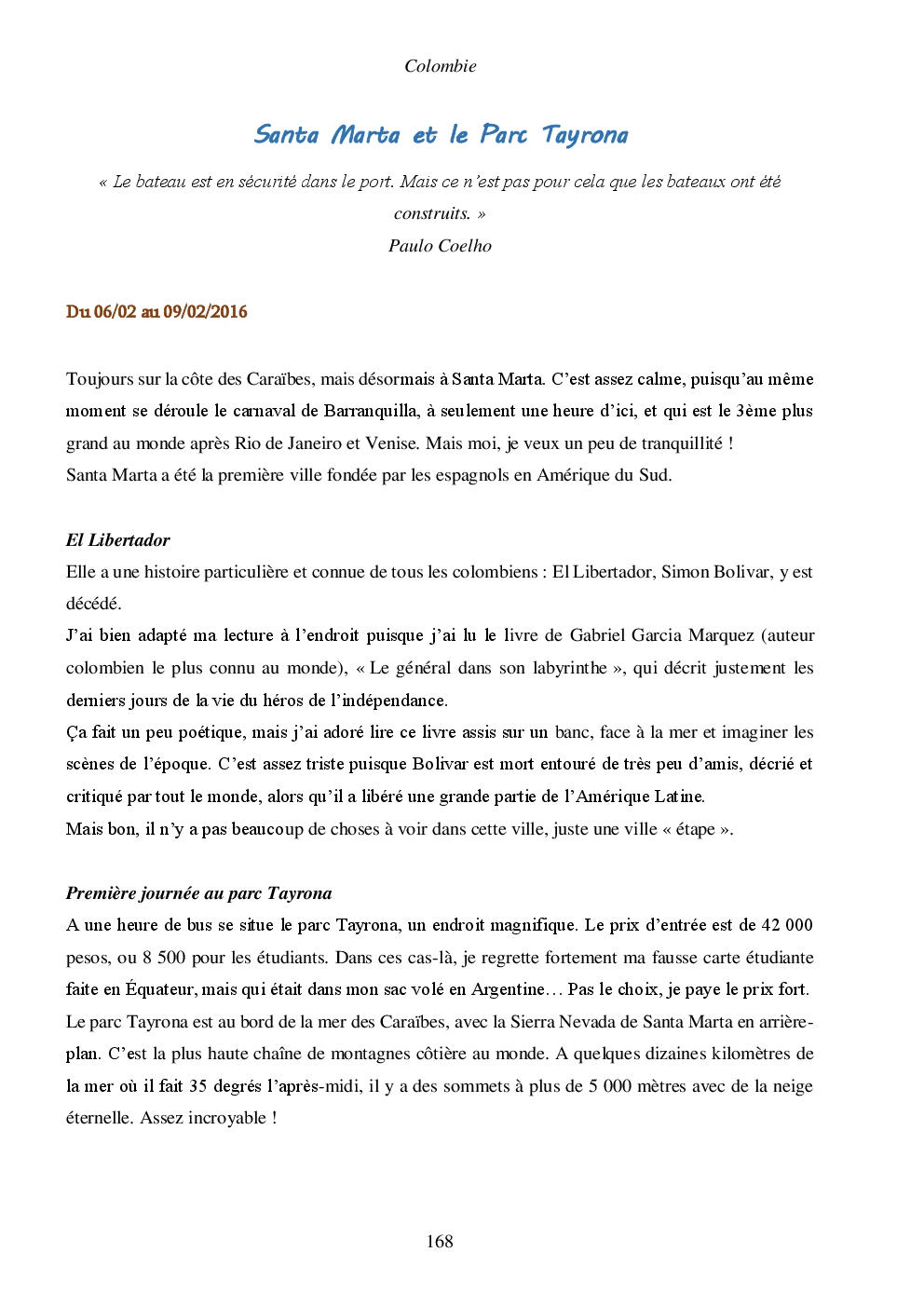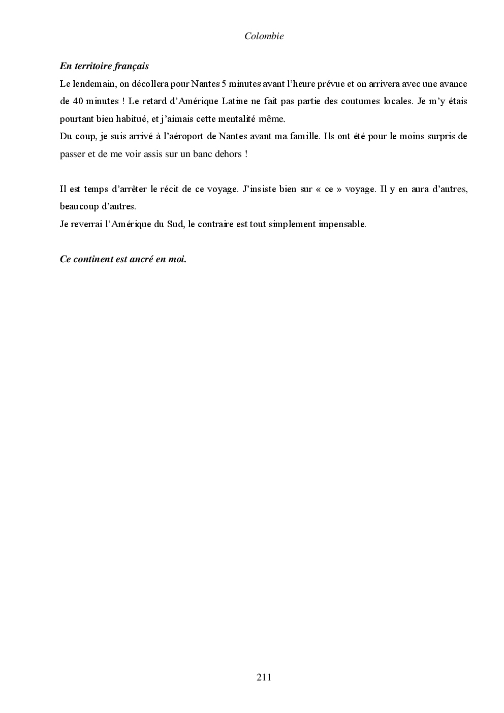 Dans ce livre se trouve la suite de mon voyage en Amérique du Sud : l'aventure continue ! Toujours entre mer et montagne, rencontre et partage, joie et galère... Le tout qui compose un souvenir inoubliable !