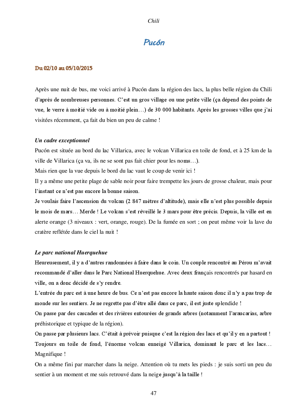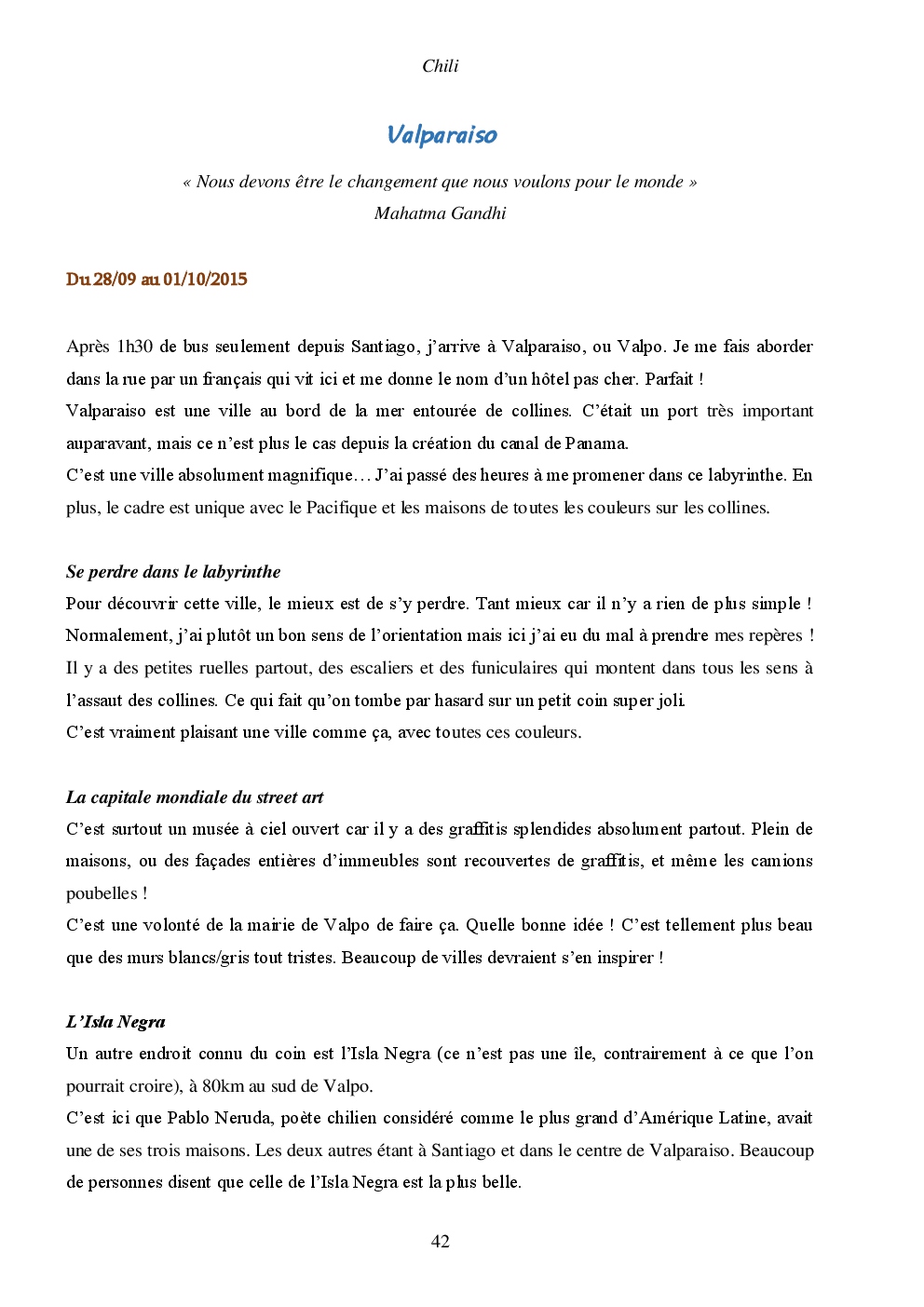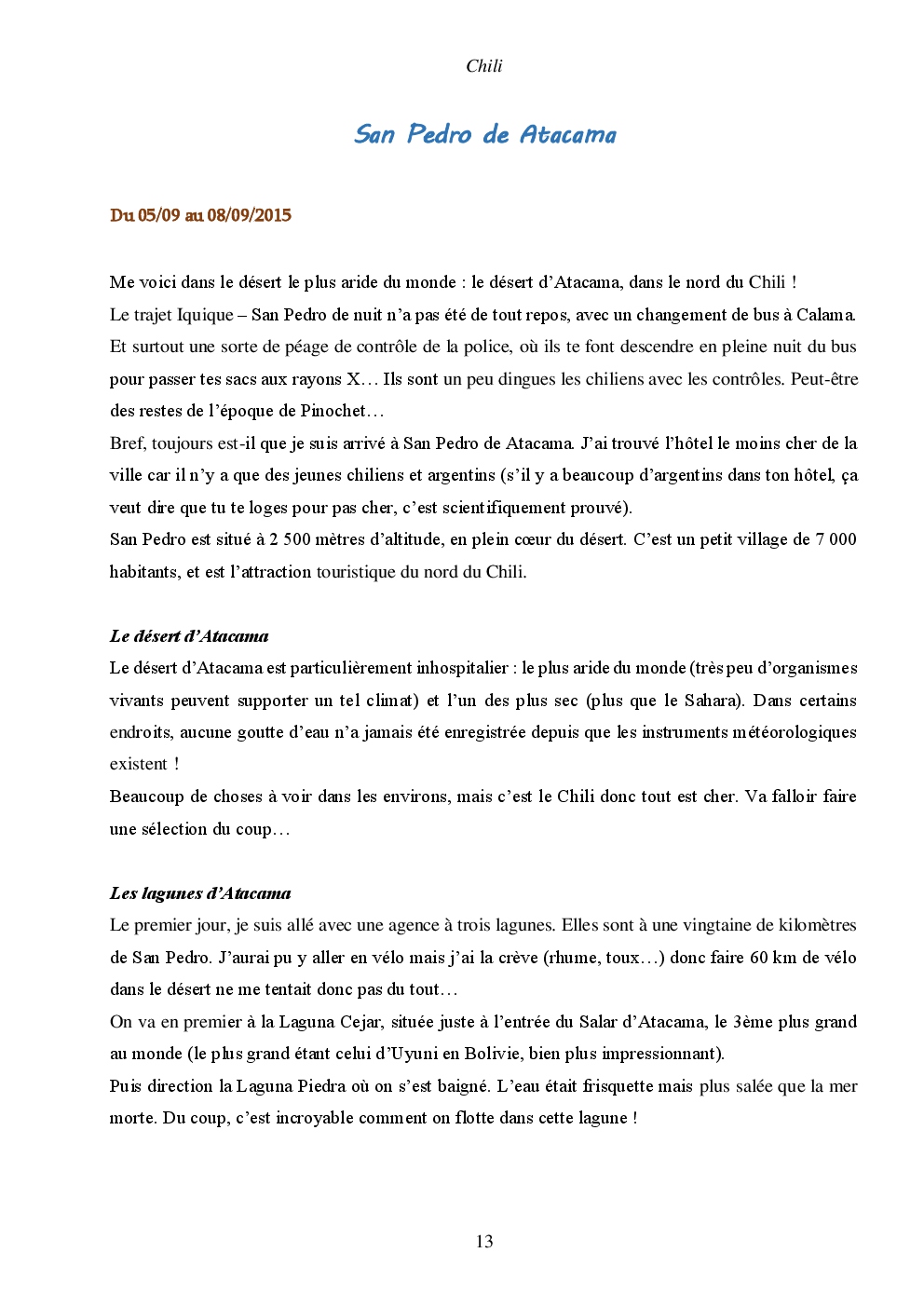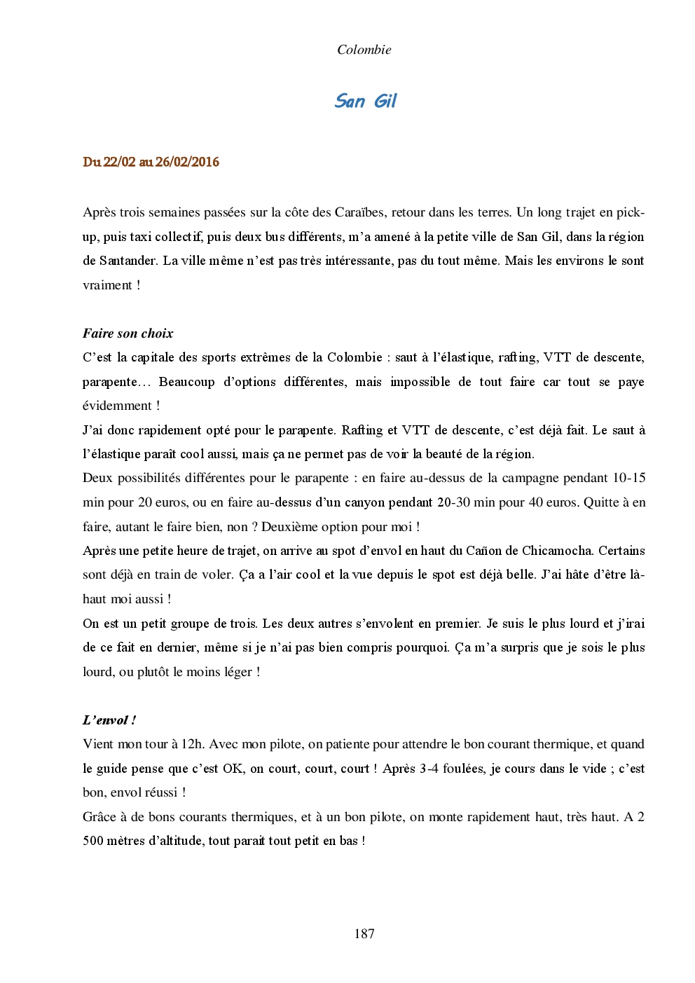 Dans ce livre se trouve la suite de mon voyage en Amérique du Sud : l'aventure continue ! Toujours entre mer et montagne, rencontre et partage, joie et galère... Le tout qui compose un souvenir inoubliable !
