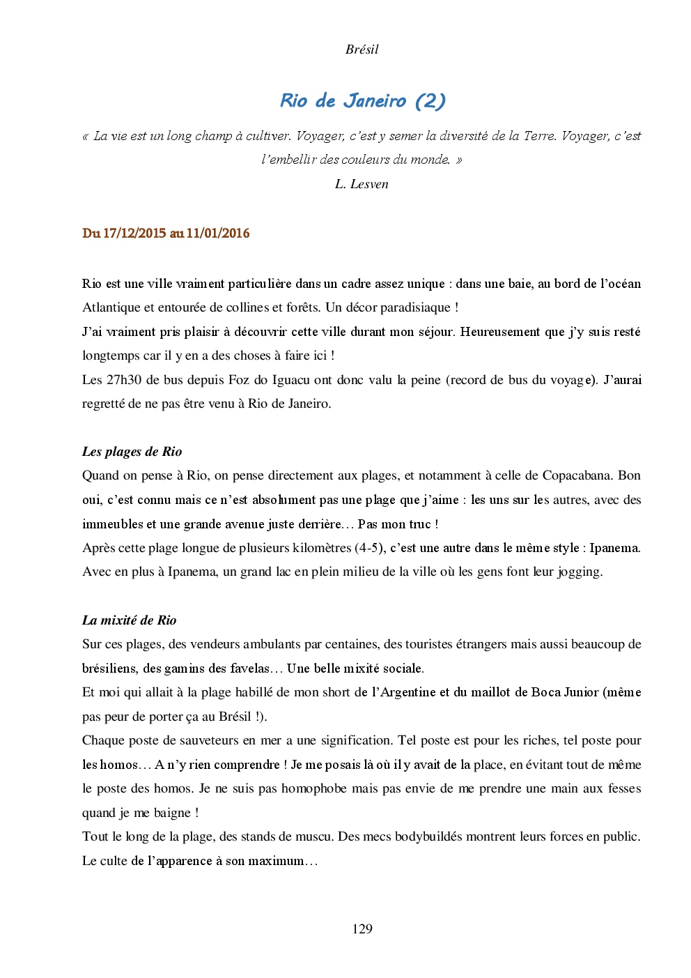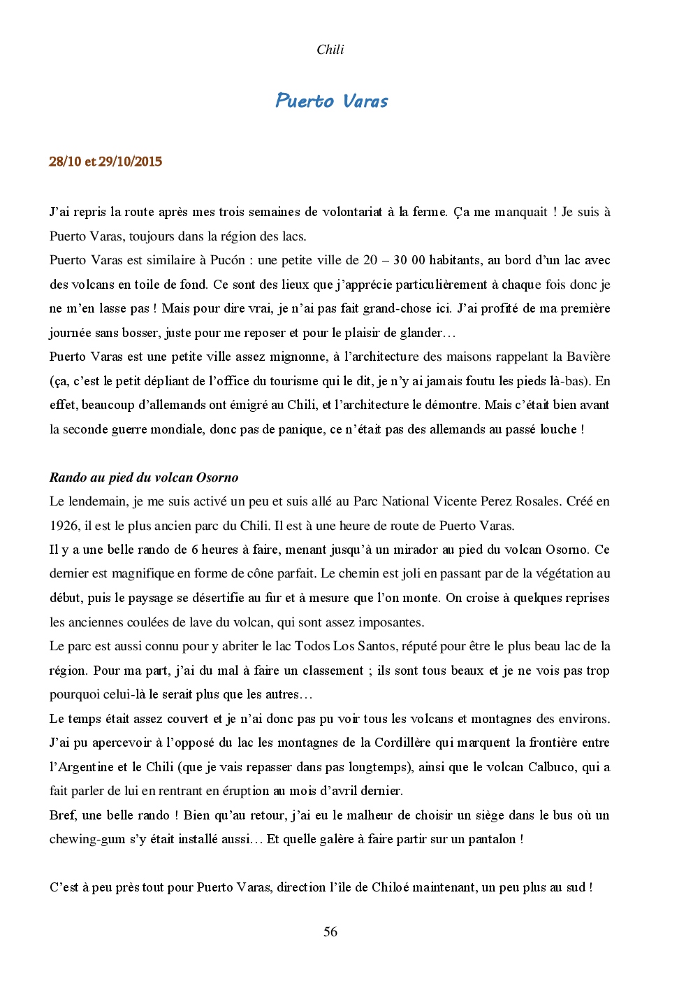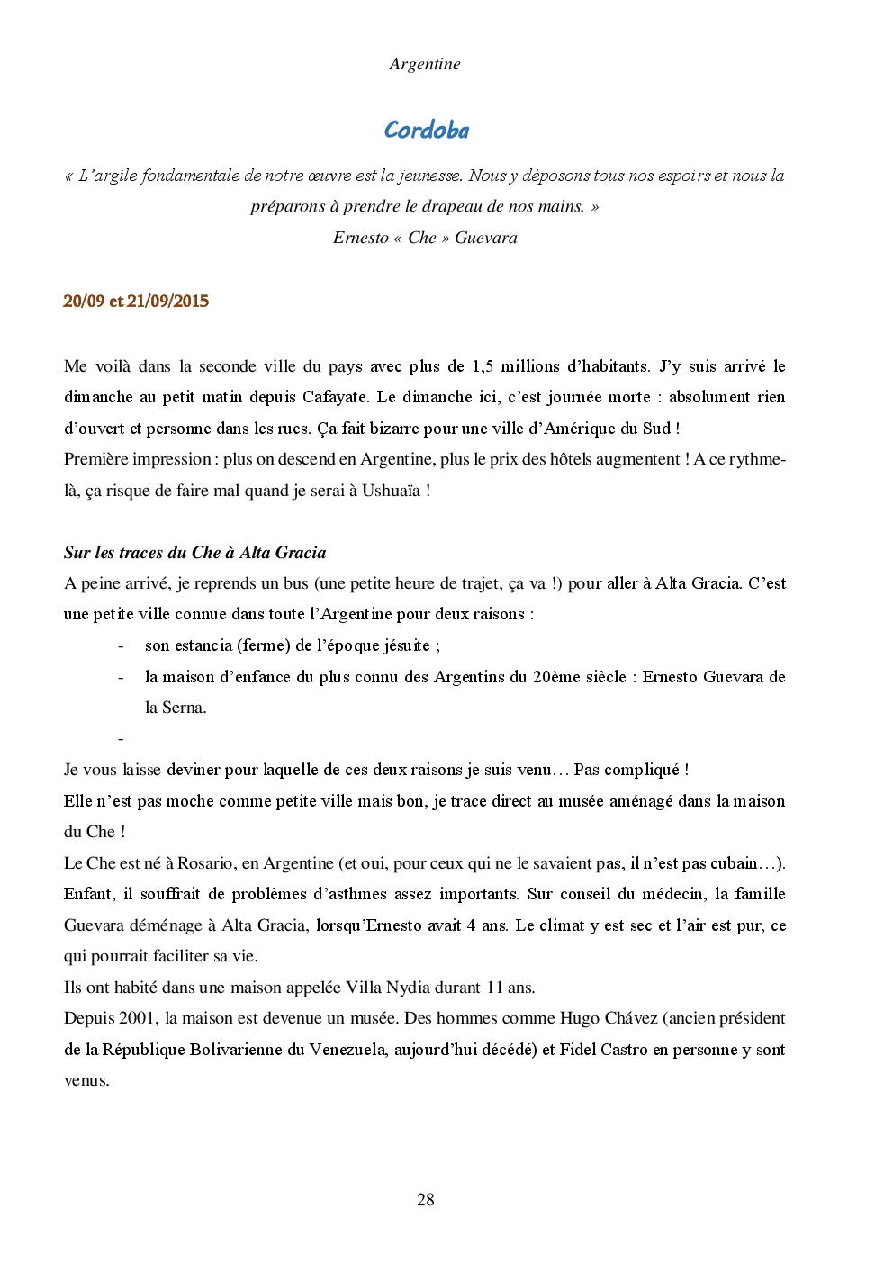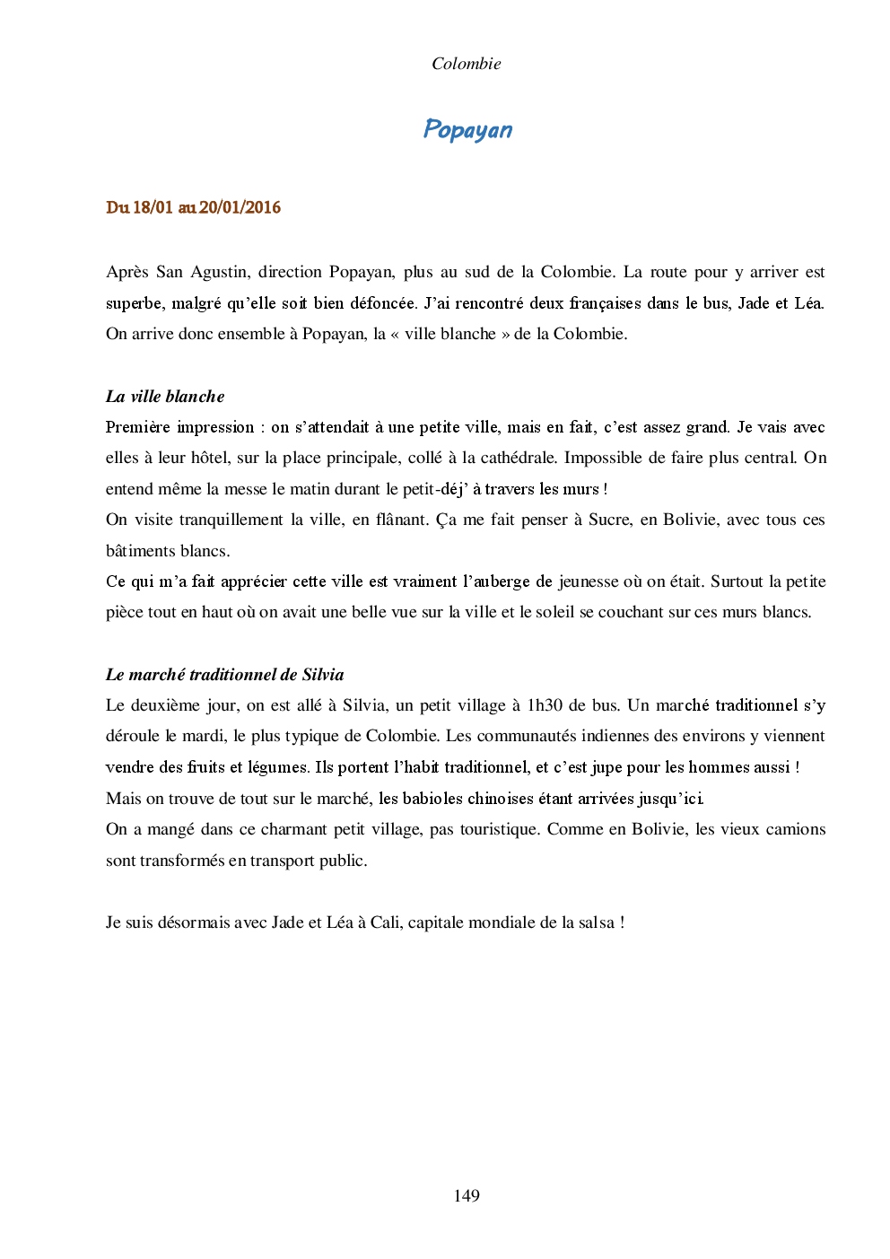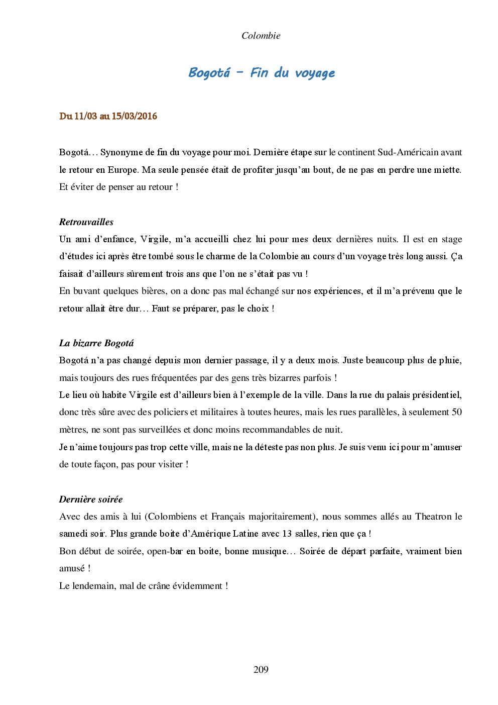 Dans ce livre se trouve la suite de mon voyage en Amérique du Sud : l'aventure continue ! Toujours entre mer et montagne, rencontre et partage, joie et galère... Le tout qui compose un souvenir inoubliable !