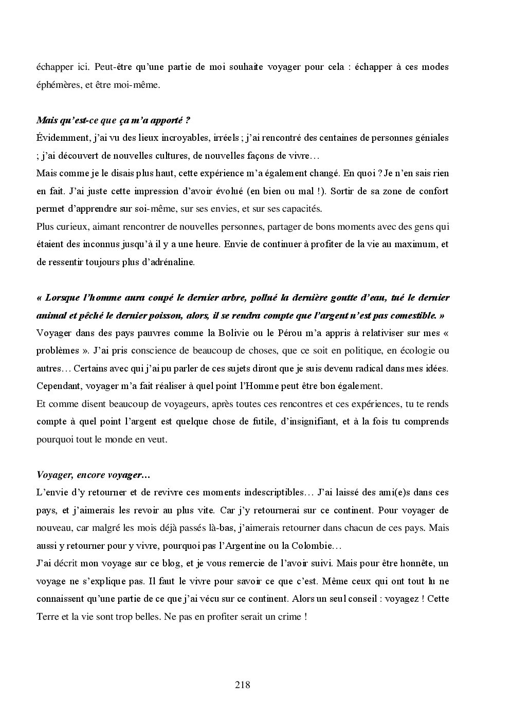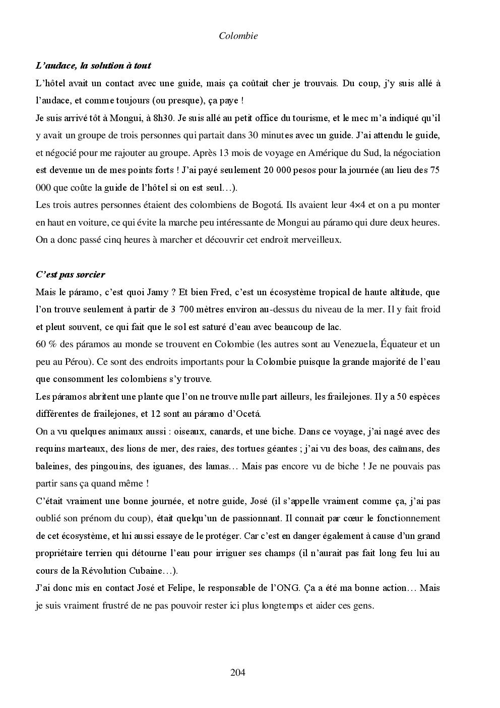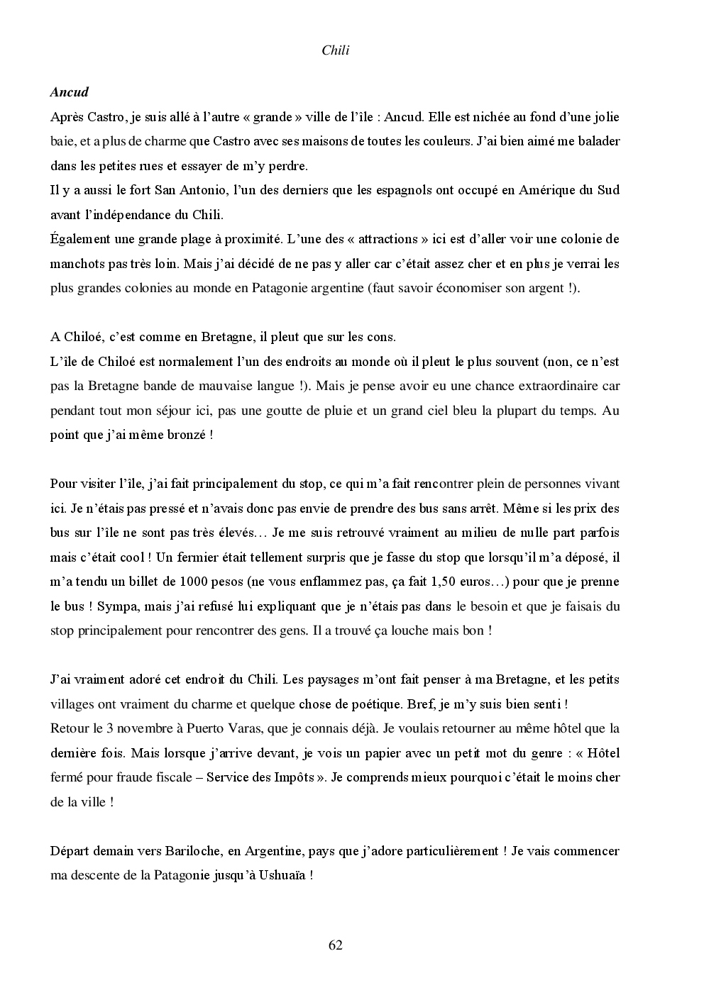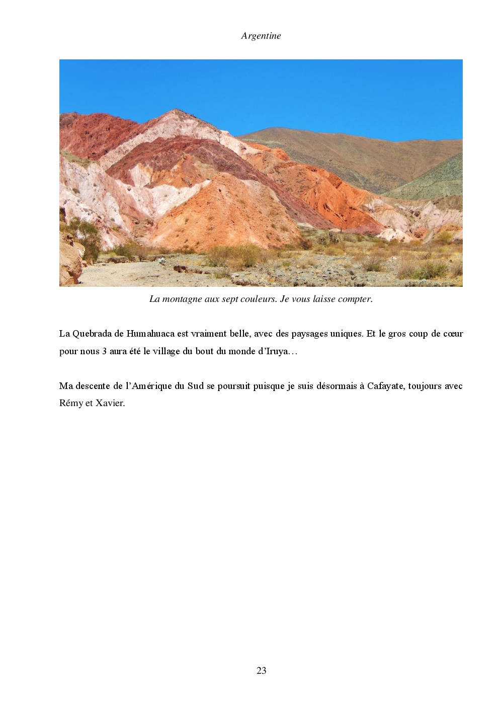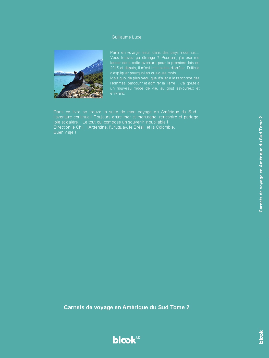 Dans ce livre se trouve la suite de mon voyage en Amérique du Sud : l'aventure continue ! Toujours entre mer et montagne, rencontre et partage, joie et galère... Le tout qui compose un souvenir inoubliable !