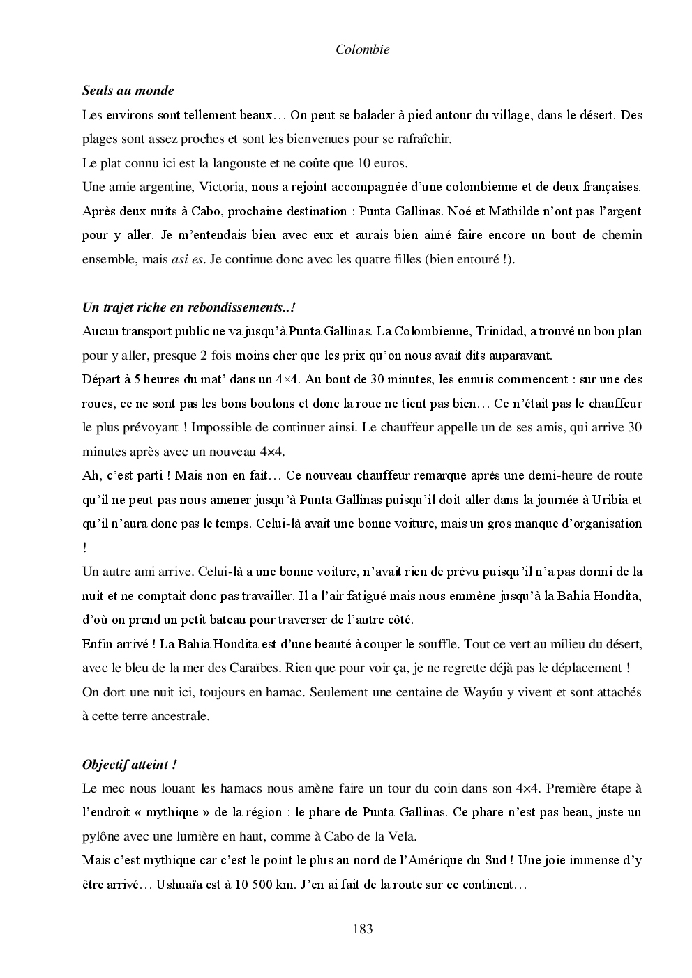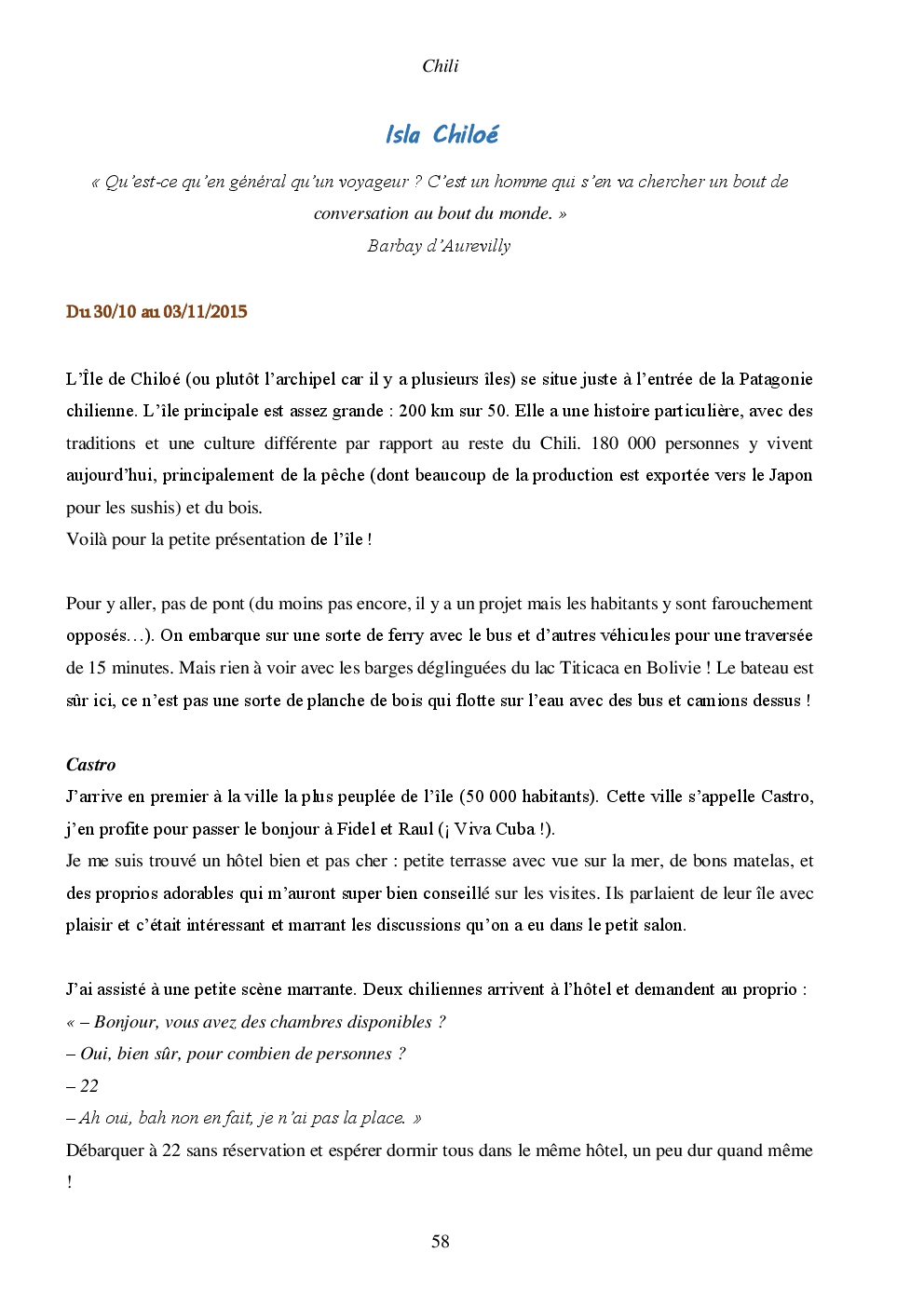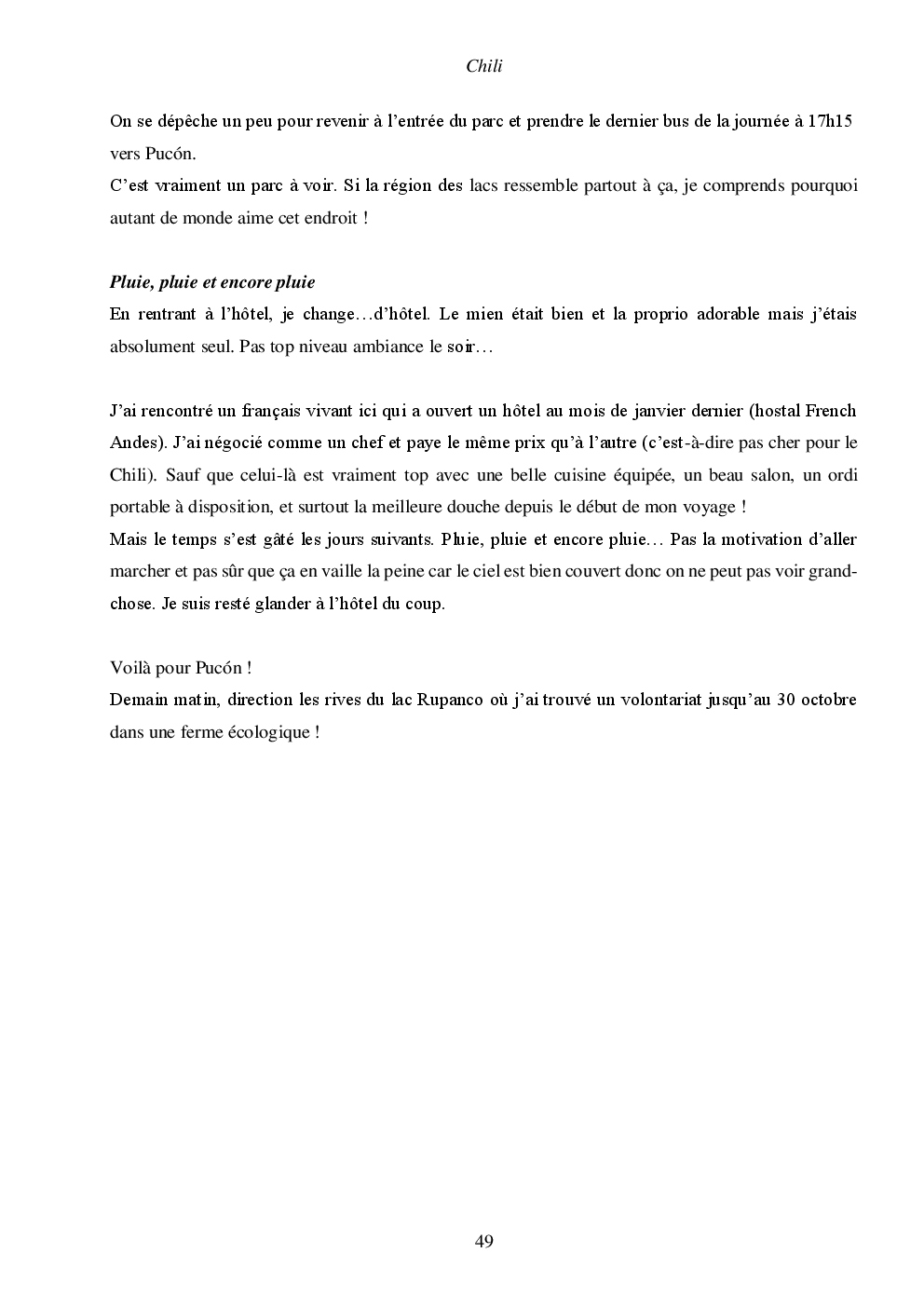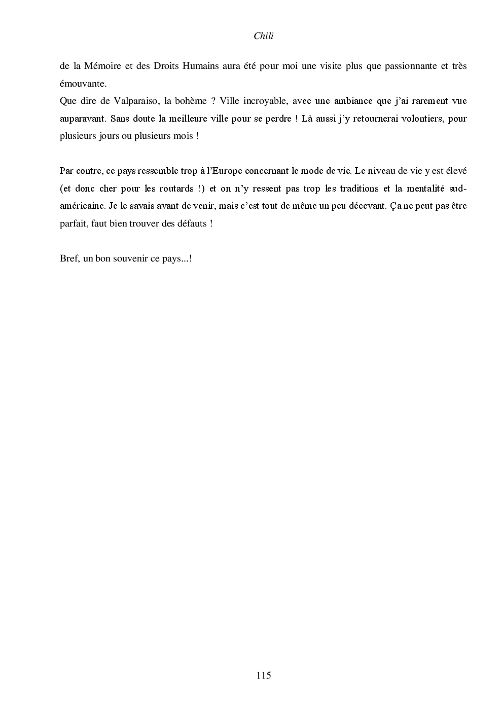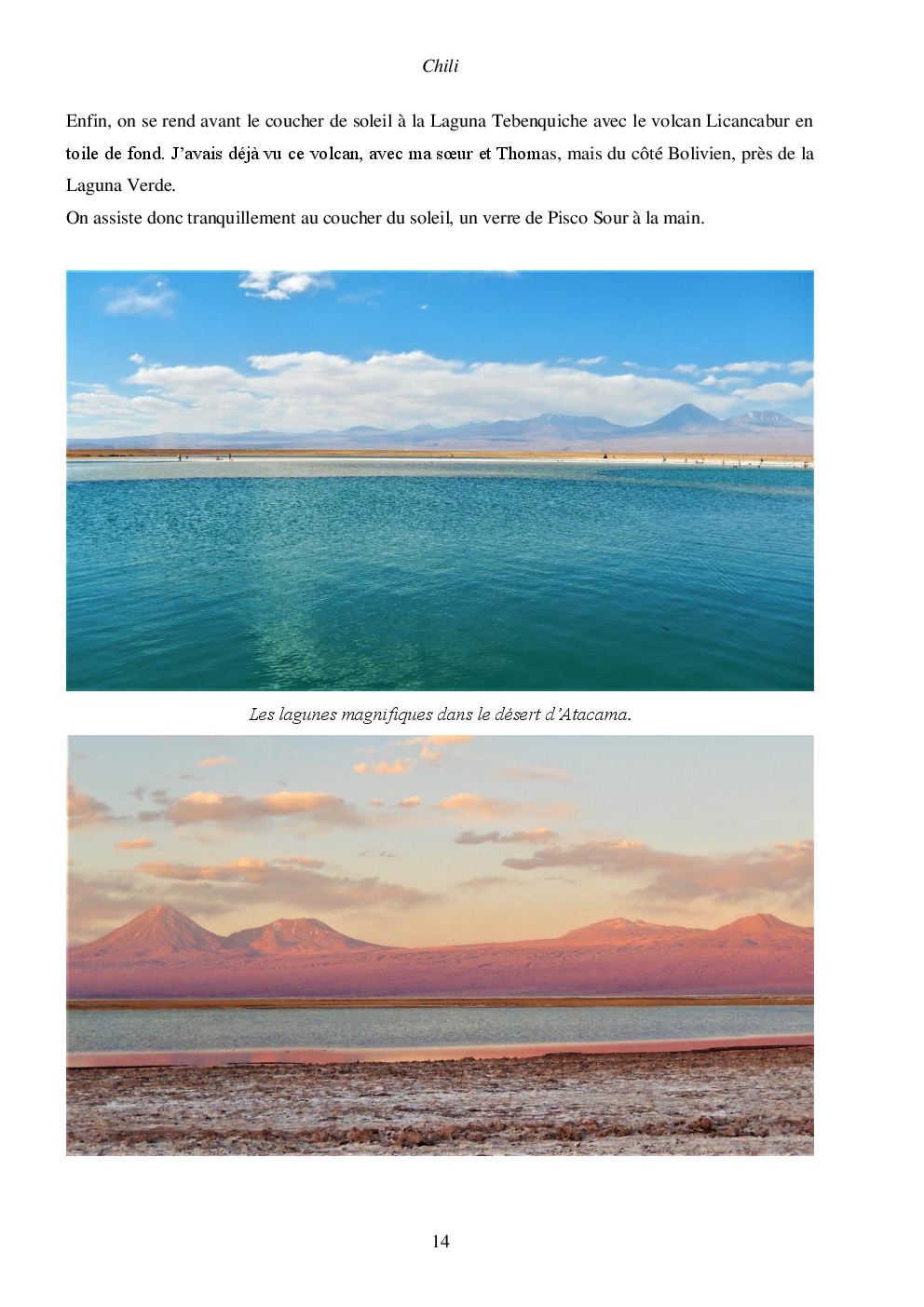 Dans ce livre se trouve la suite de mon voyage en Amérique du Sud : l'aventure continue ! Toujours entre mer et montagne, rencontre et partage, joie et galère... Le tout qui compose un souvenir inoubliable !