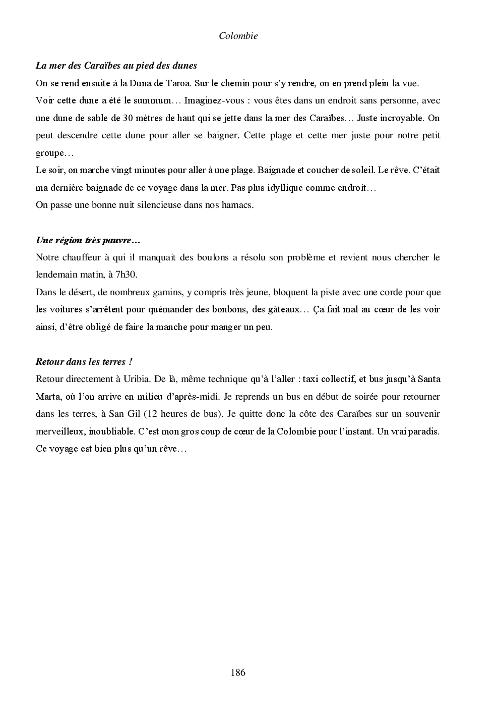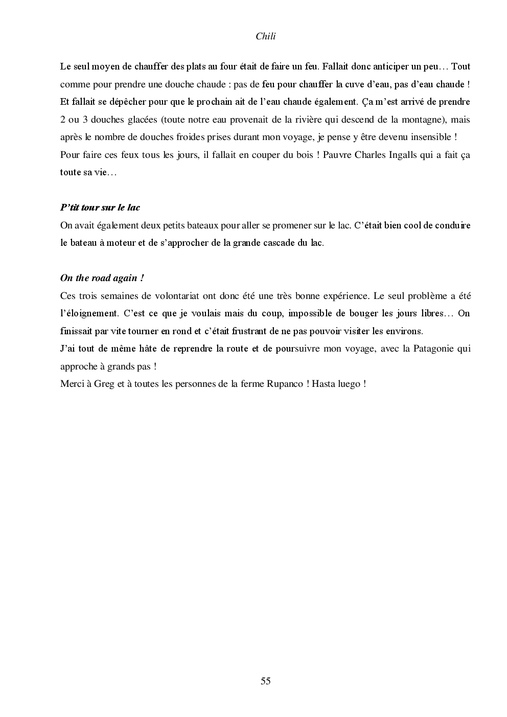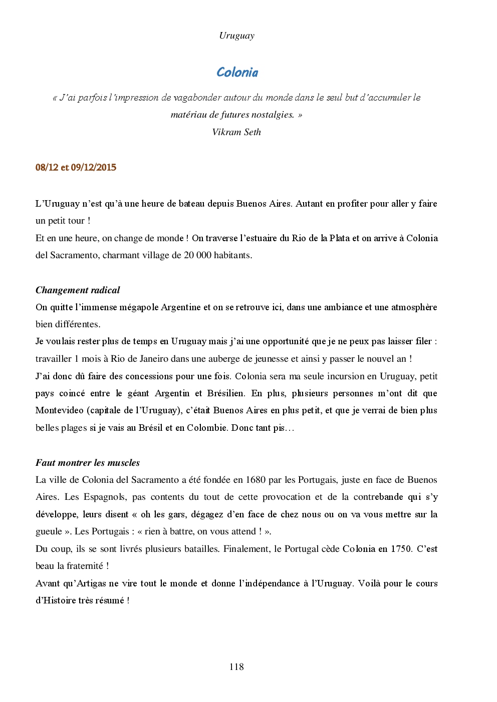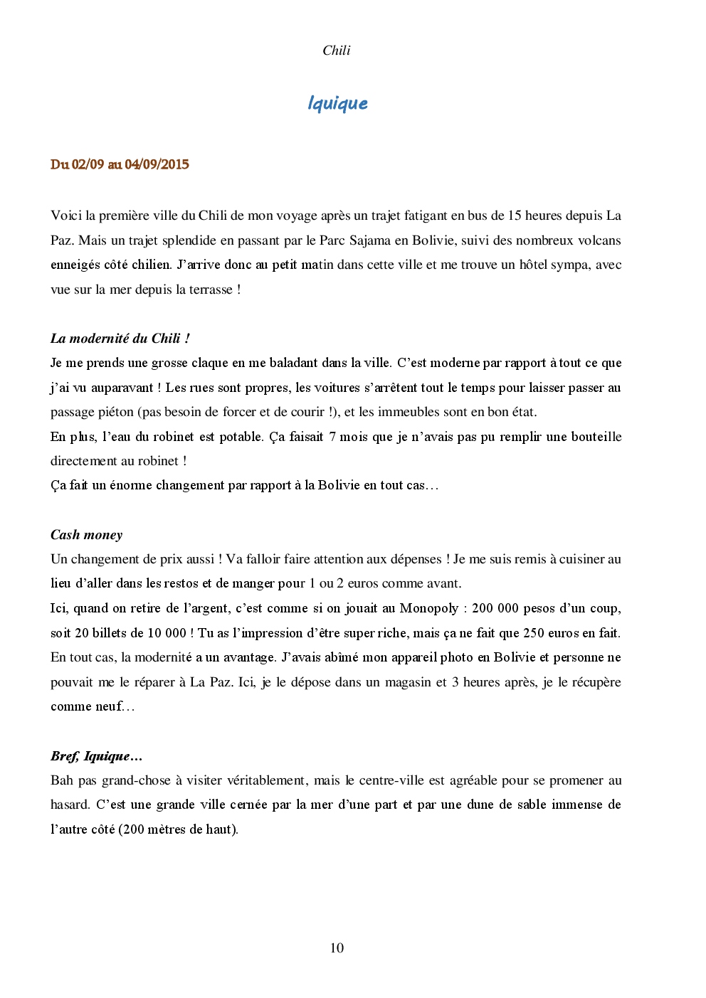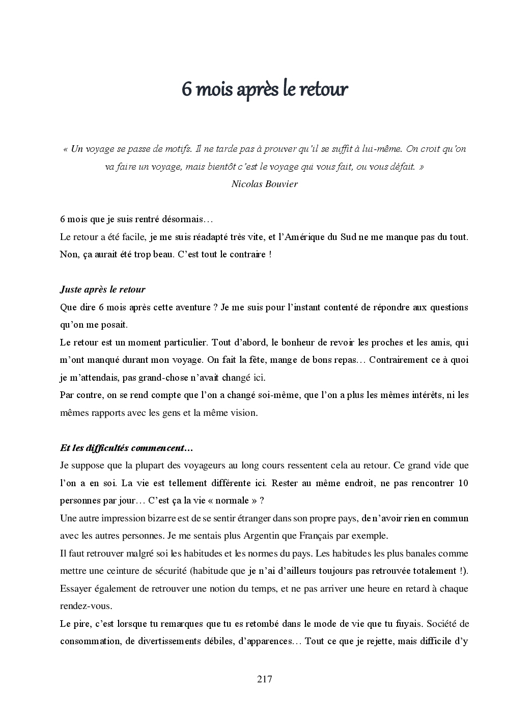 Dans ce livre se trouve la suite de mon voyage en Amérique du Sud : l'aventure continue ! Toujours entre mer et montagne, rencontre et partage, joie et galère... Le tout qui compose un souvenir inoubliable !