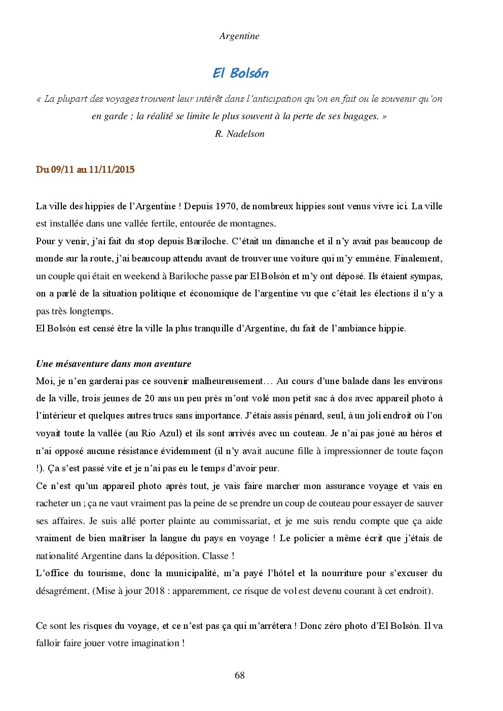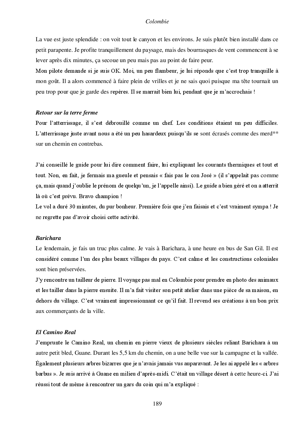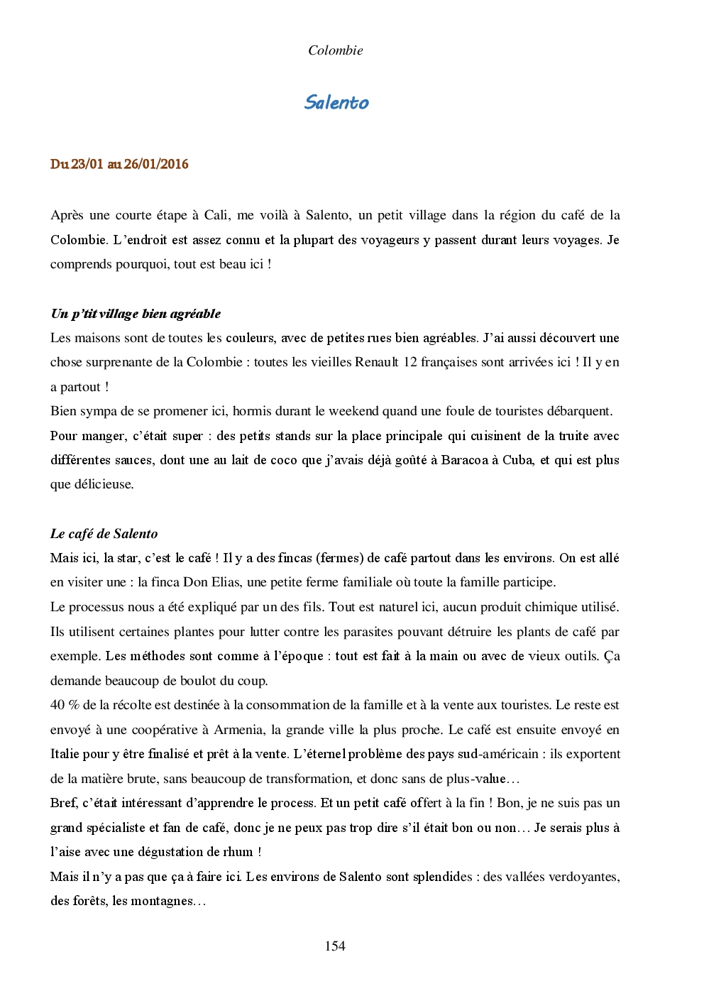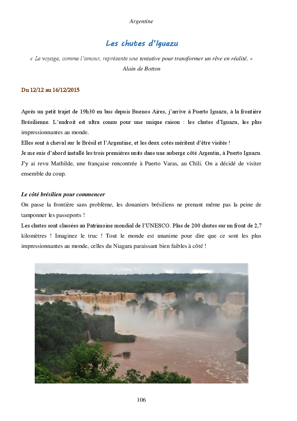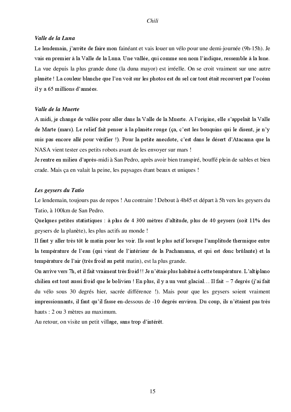 Dans ce livre se trouve la suite de mon voyage en Amérique du Sud : l'aventure continue ! Toujours entre mer et montagne, rencontre et partage, joie et galère... Le tout qui compose un souvenir inoubliable !