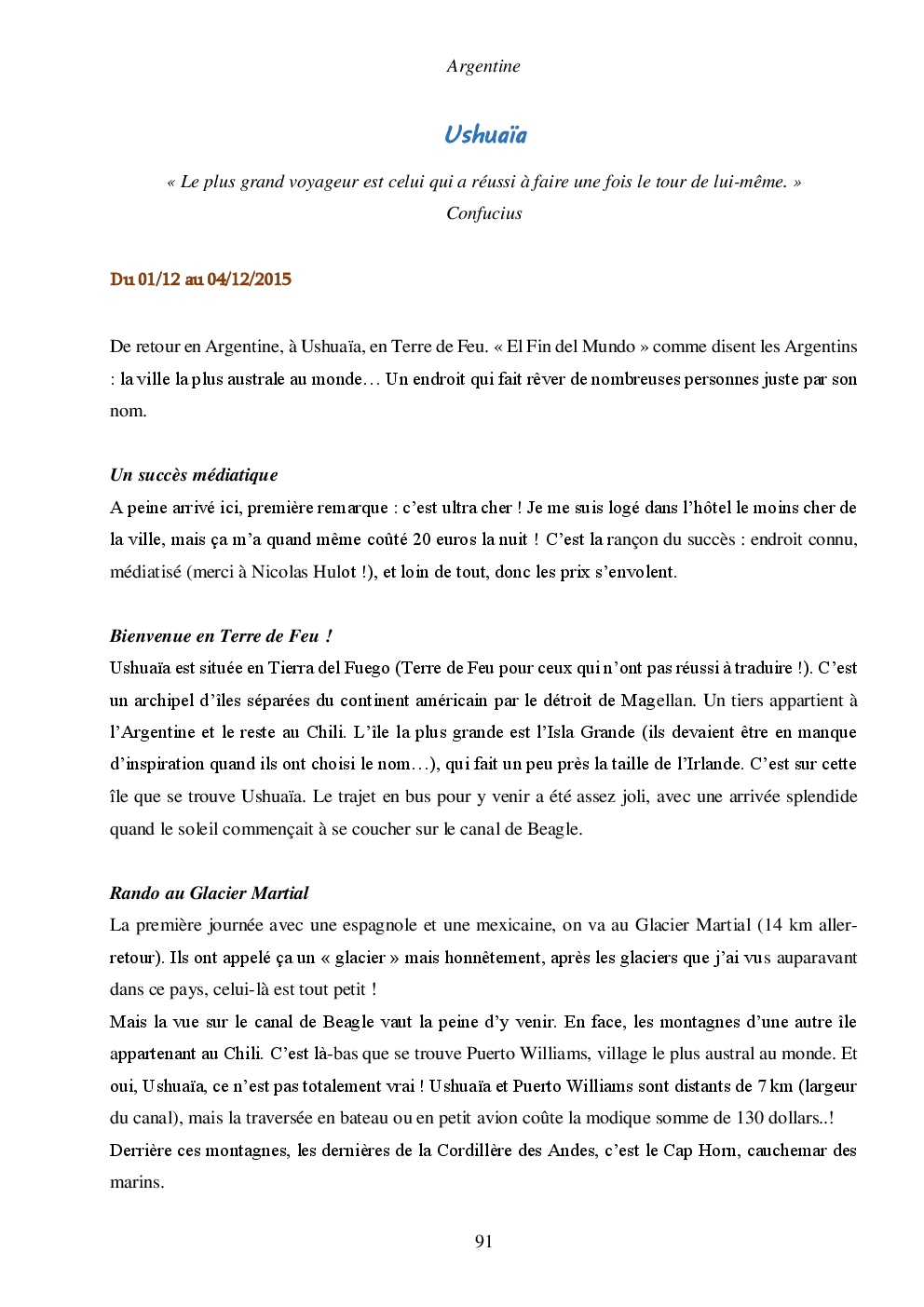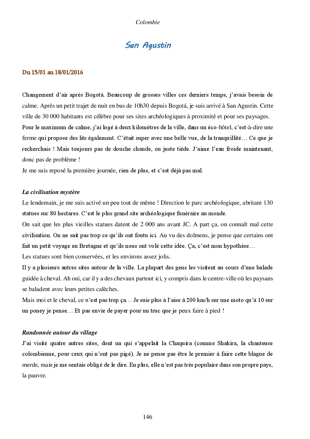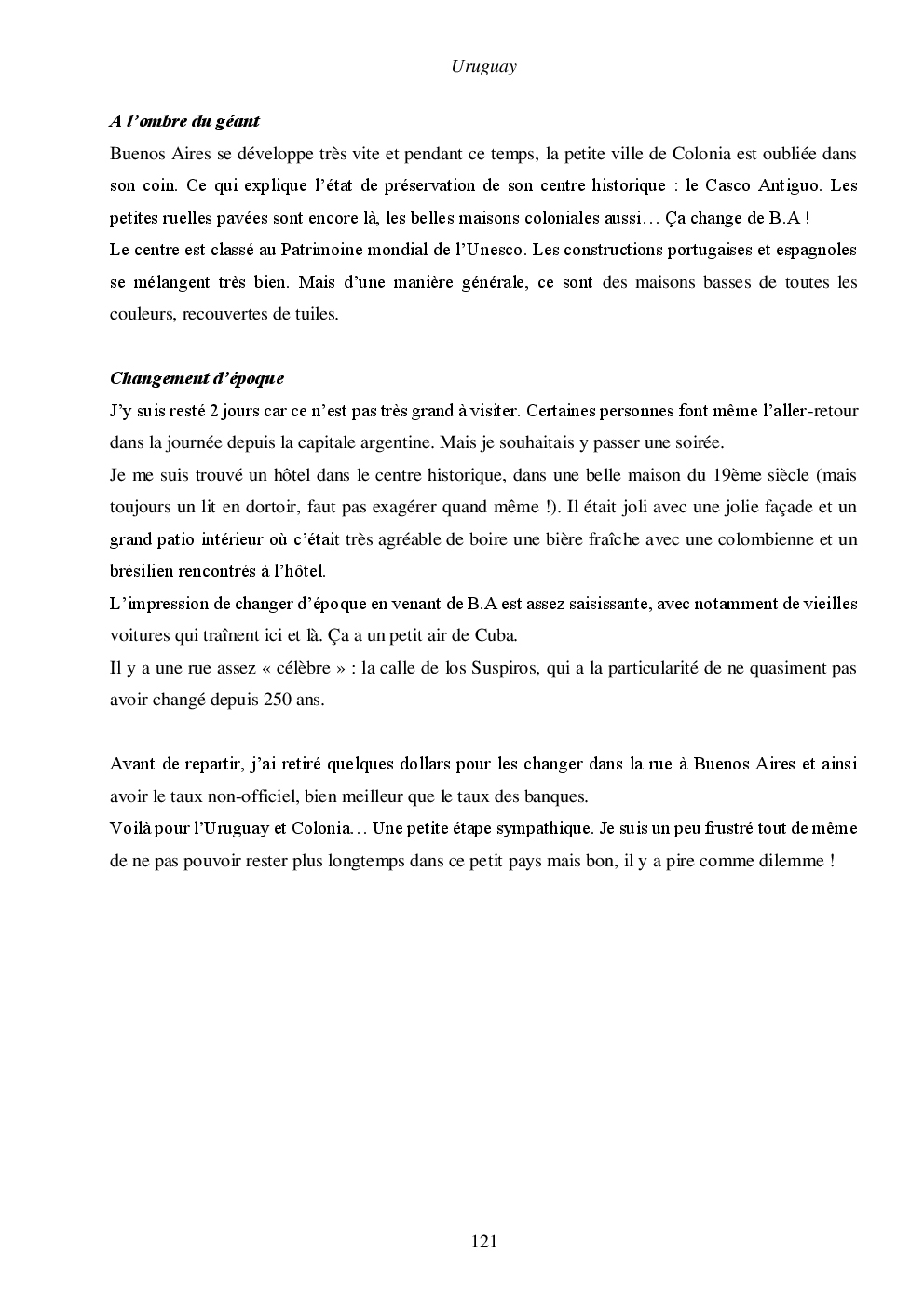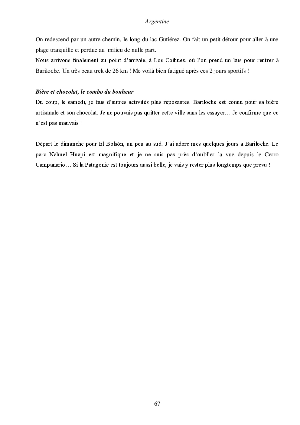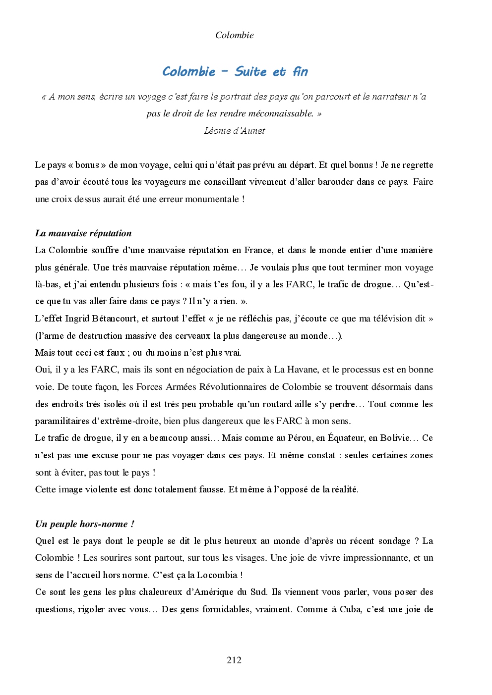Dans ce livre se trouve la suite de mon voyage en Amérique du Sud : l'aventure continue ! Toujours entre mer et montagne, rencontre et partage, joie et galère... Le tout qui compose un souvenir inoubliable !