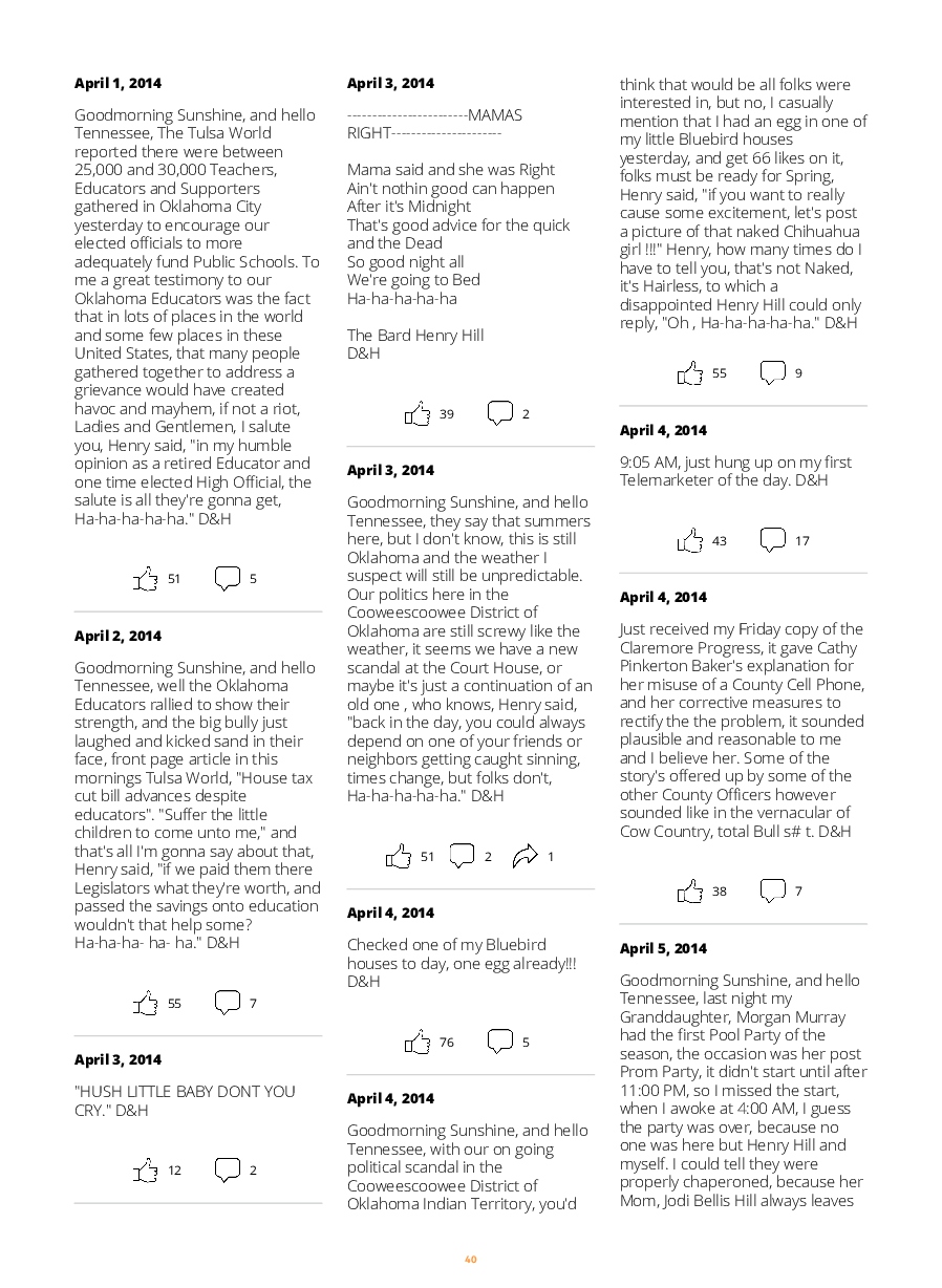 Don Hill made the blook of their their facebook account ! Support their creativity by buying their blook or create your own now on BlookUp!