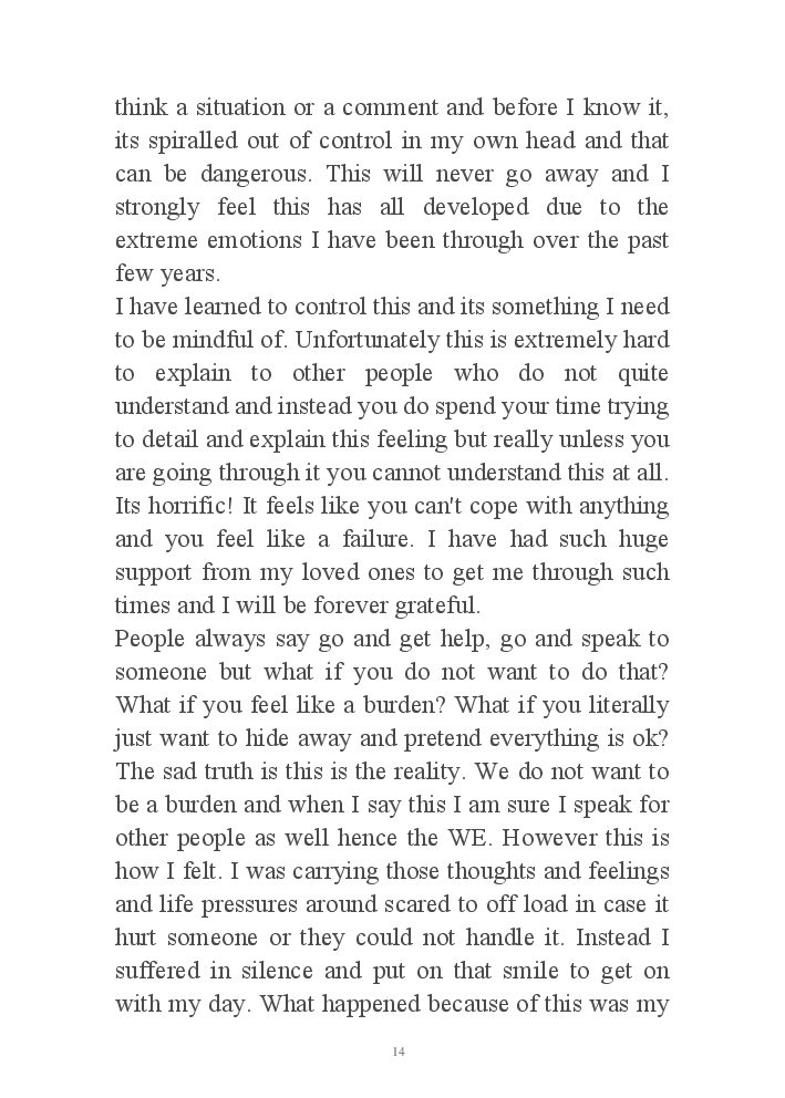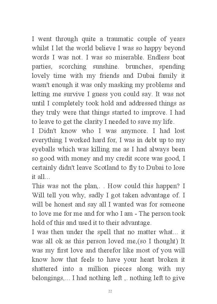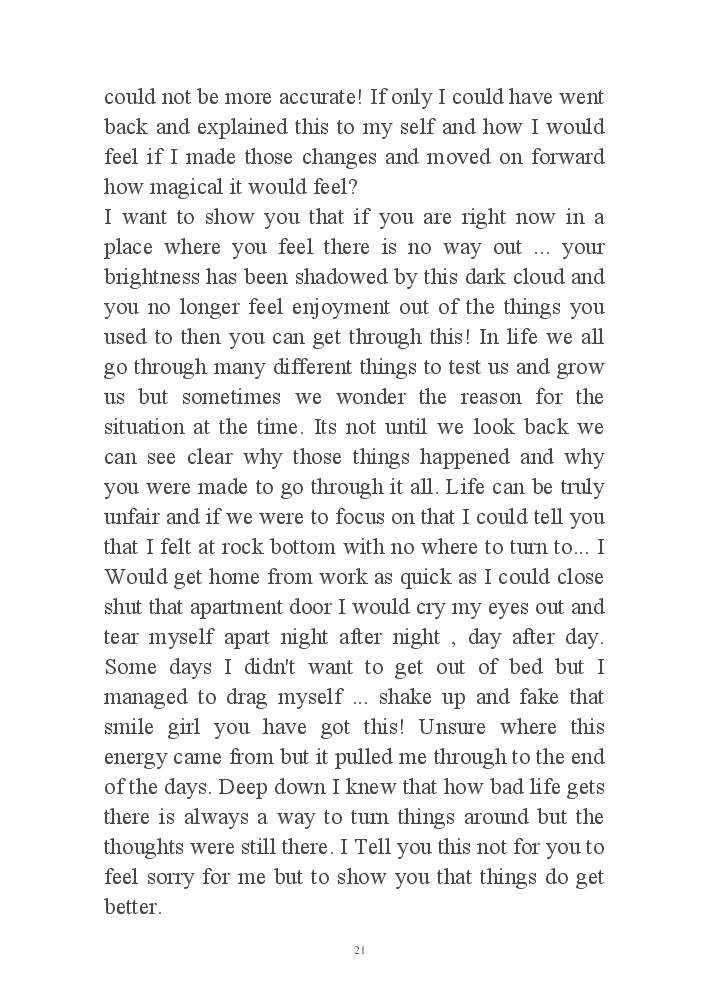 My journey through life from extreme low to high, my wish is to send the message to others that there is light at the end and if you are struggling or going through a tough time you can get through this. There is always a way.