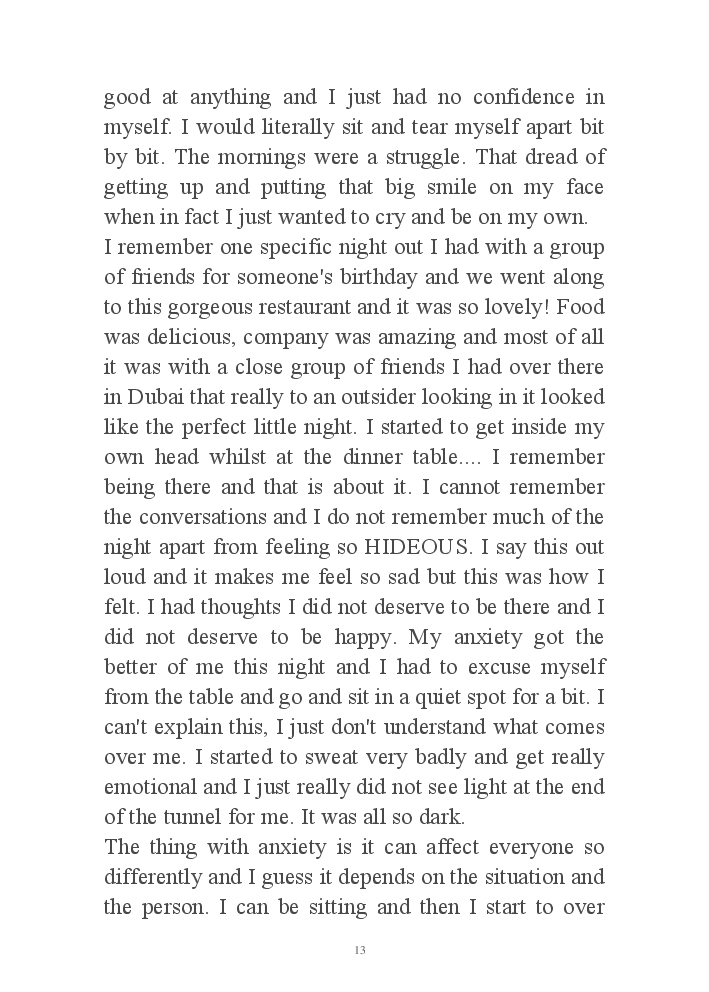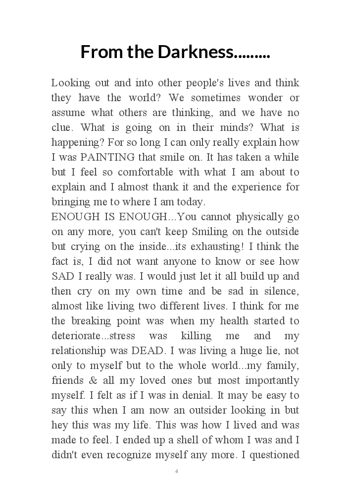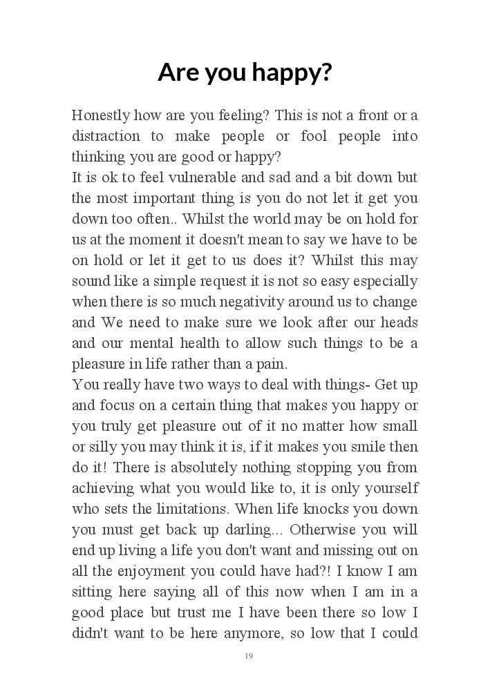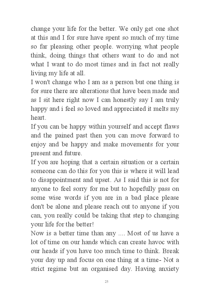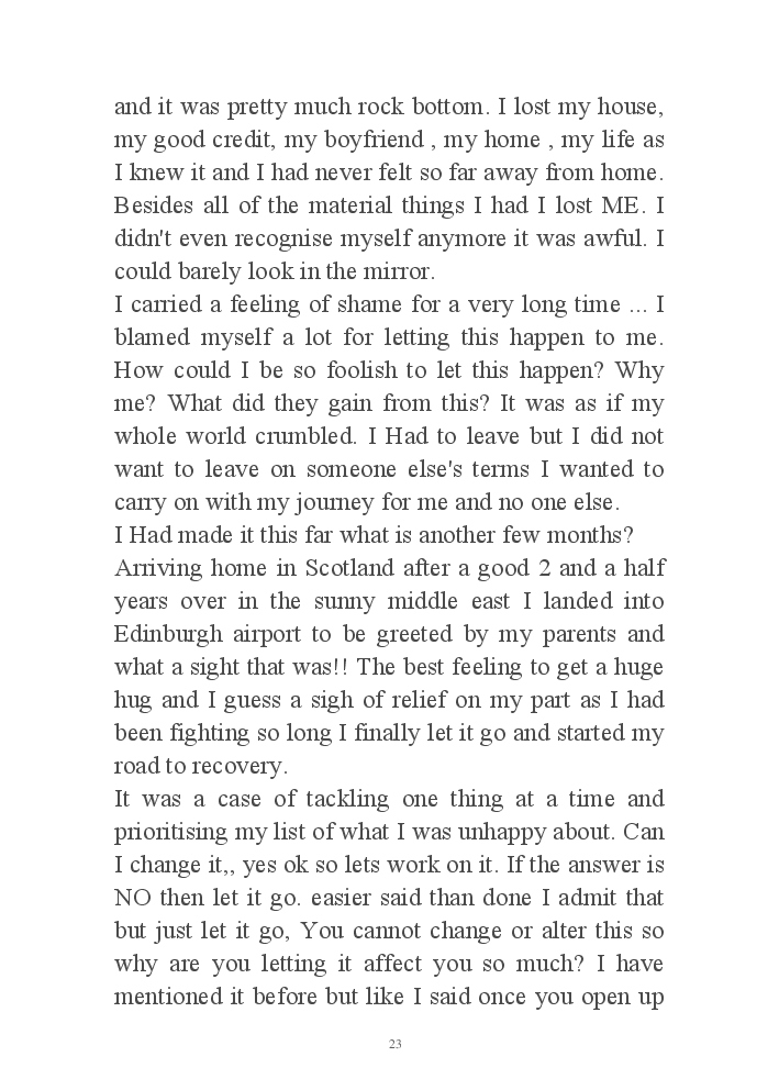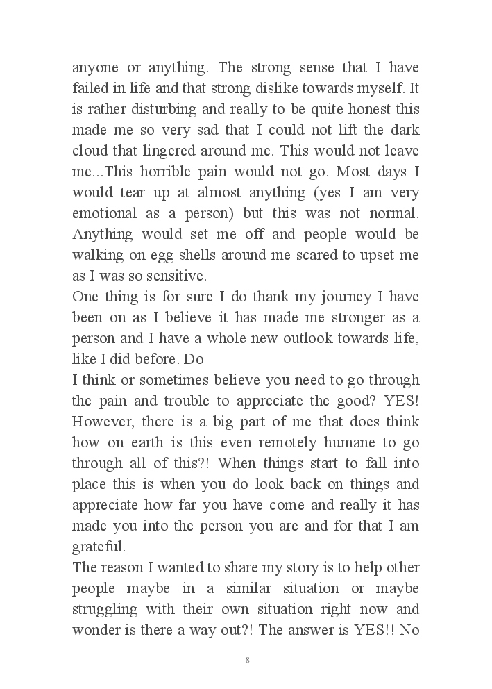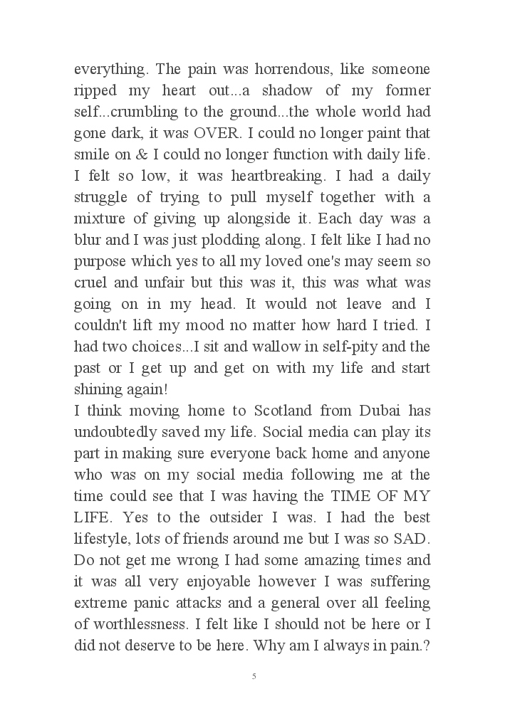 My journey through life from extreme low to high, my wish is to send the message to others that there is light at the end and if you are struggling or going through a tough time you can get through this. There is always a way.