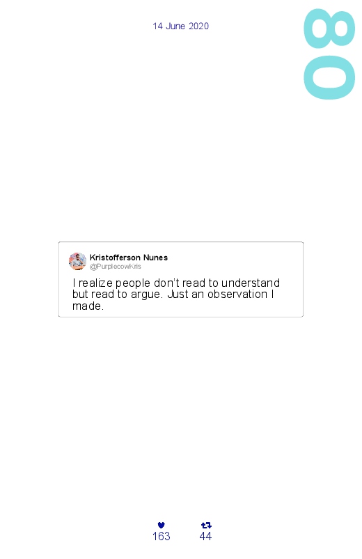 Kristofferson Nunes made the blook of their their Twitter account ! Support their creativity by buying their blook or create your own now on BlookUp!